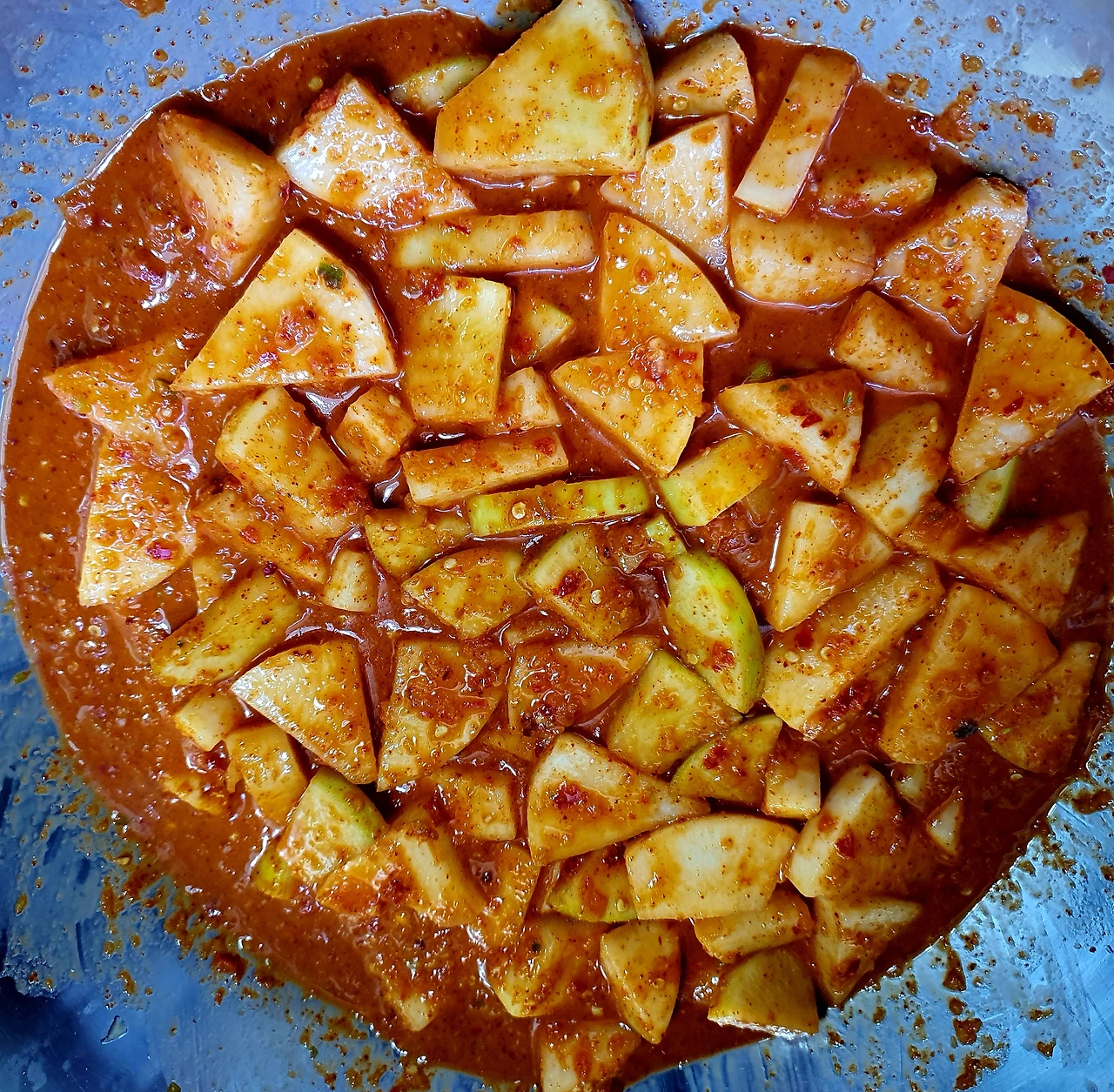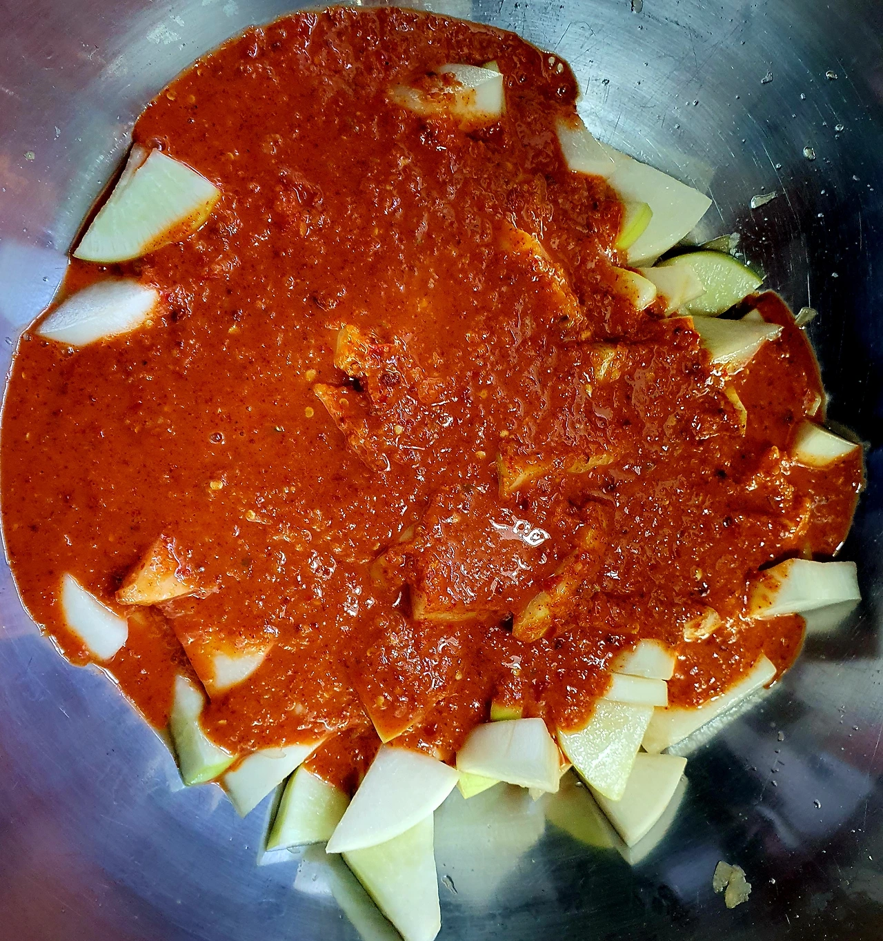 • 절인무와 양념을 골고루 잘 버무려준다.