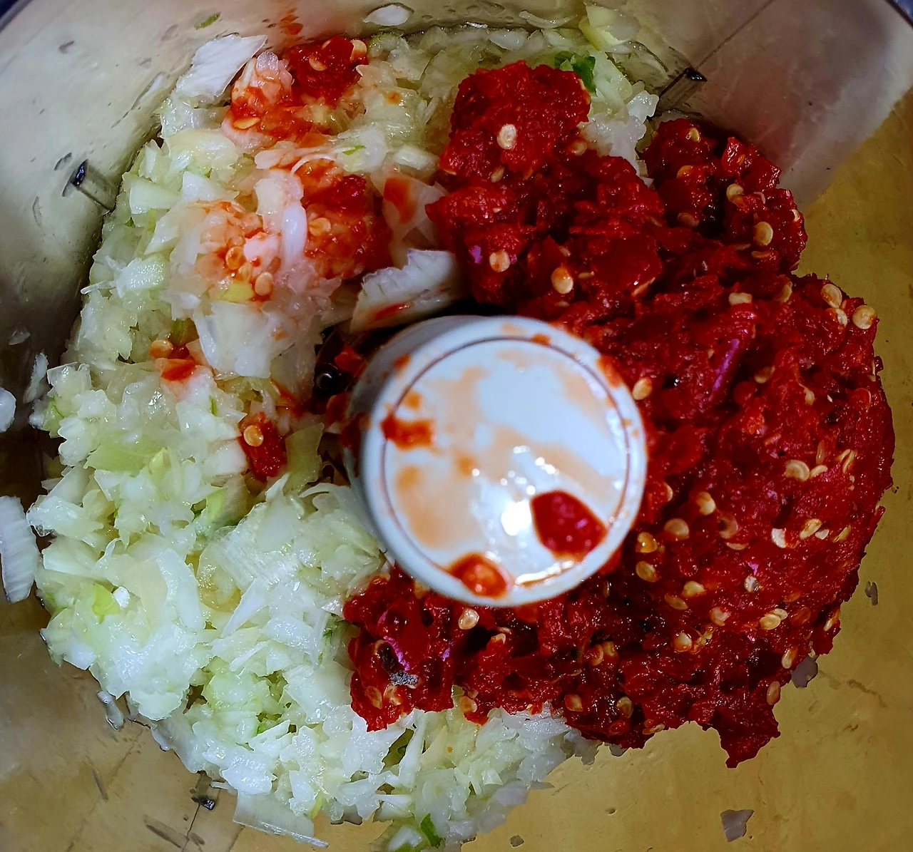 • 무를 절여 나온 물과 모든 양념재료를 커터기에 넣고 갈아 30분 이상 숙성시켜 준다.