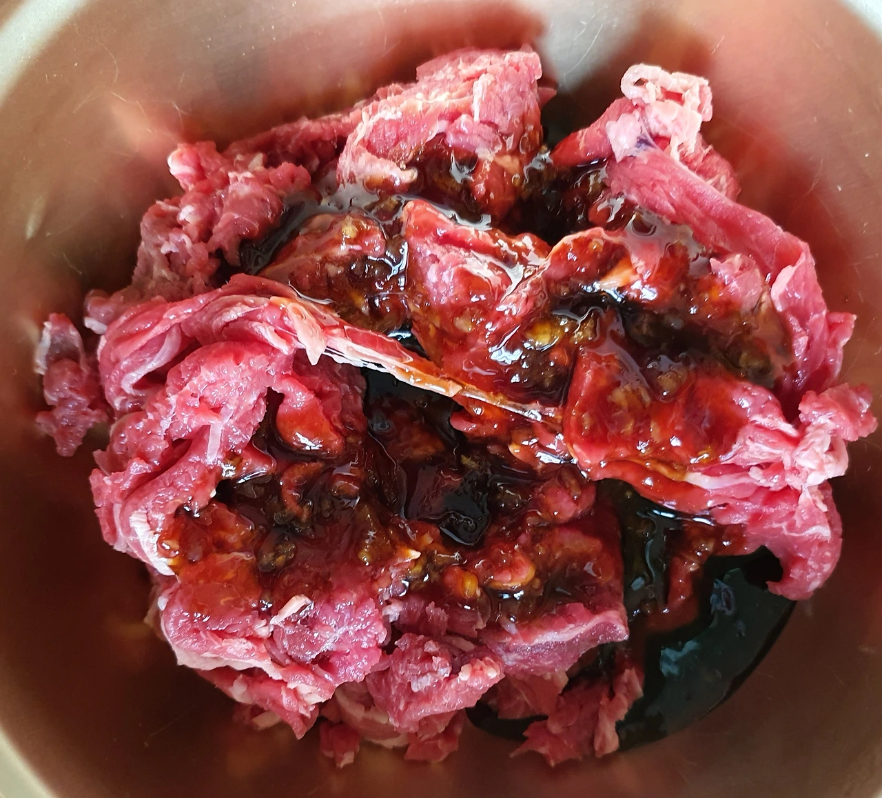 • 양념 만들기 : 간장, 맛술, 설탕, 굴소스, 다진 마늘, 참치액을 섞어 설탕이 녹을 때까지 섞은 뒤 고기와 버무려 20분 이상 재워준다.