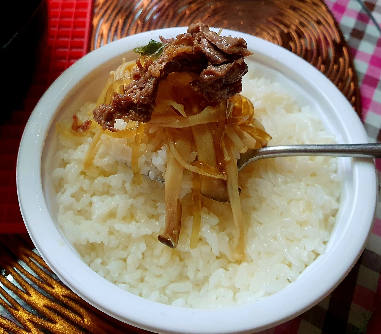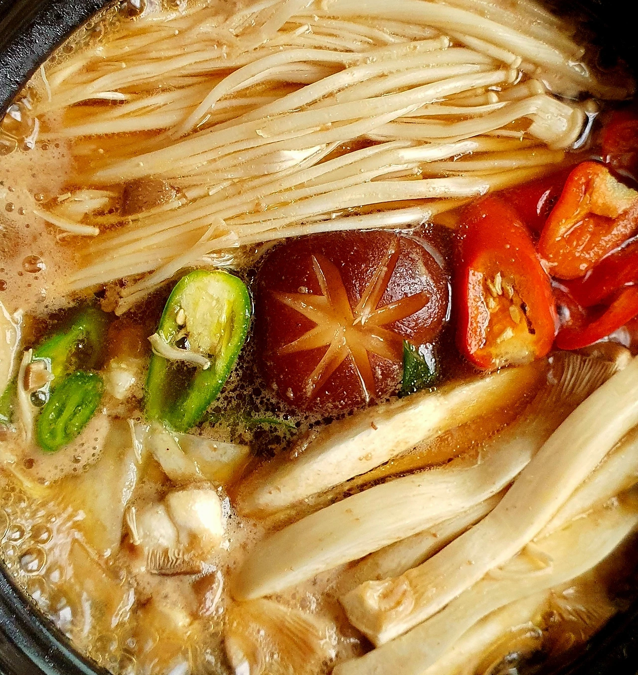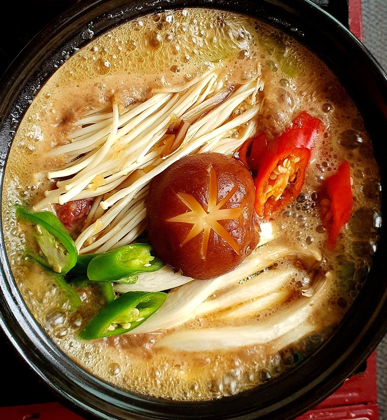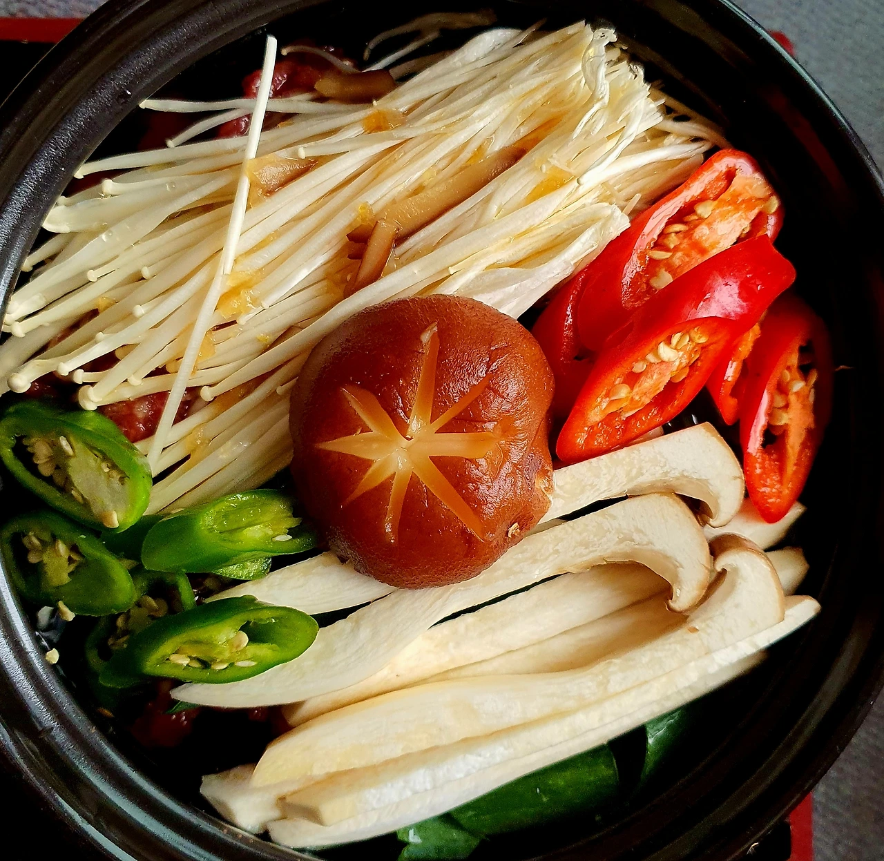 • 만들기 : 뚝배기에 양파를 넣고, 양배추. 당면. 소고기. 대파를 올리고 위에 팽이버섯과 새송이버섯. 청고추. 홍고추와 가운데 표고버섯을 올린 후에 다시마육수를 넣고 자작하게 끓인다.