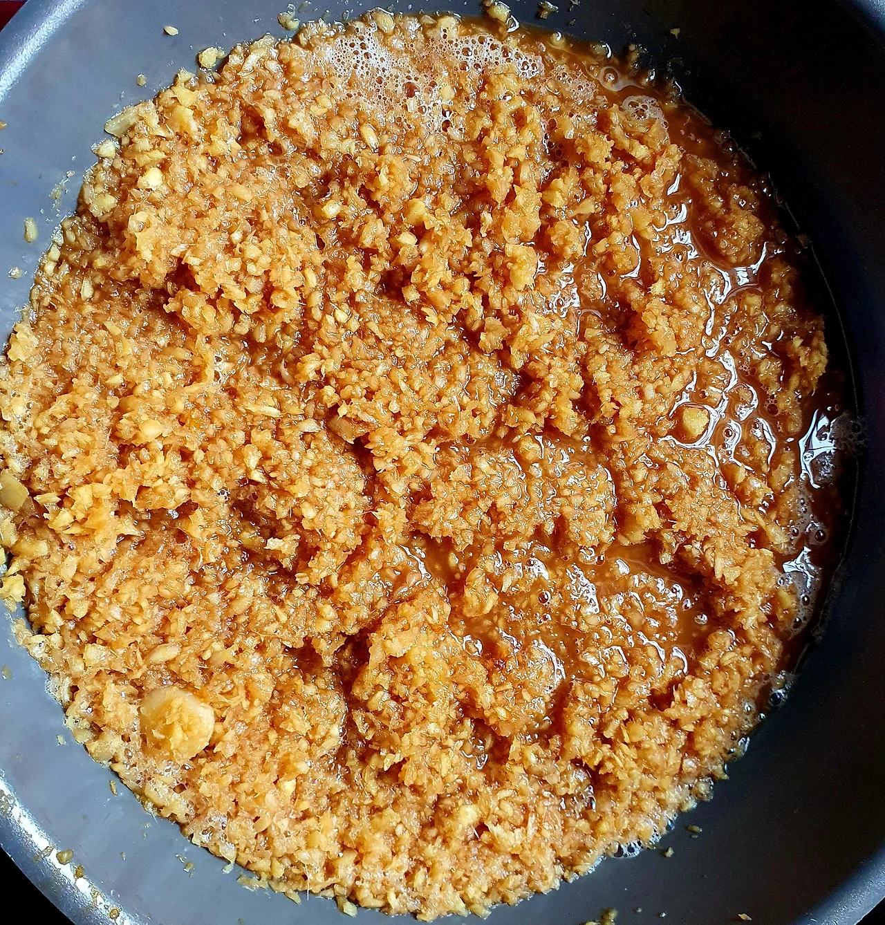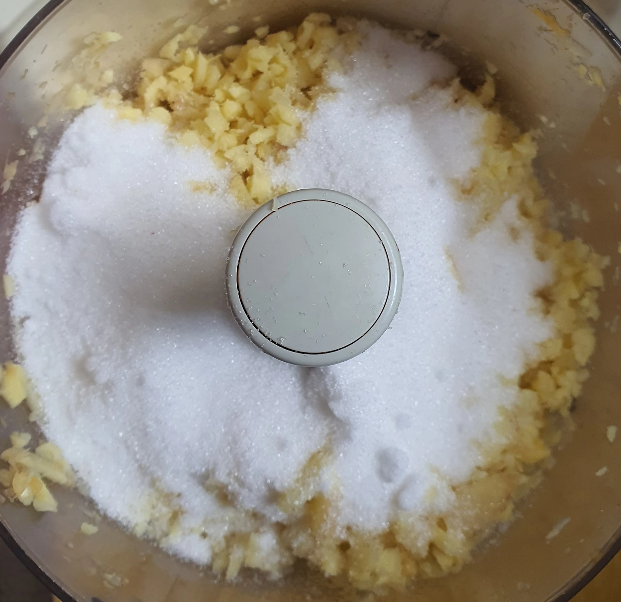 • 간 생강은 볼에 넣고 생강과 위 비율의 설탕과 꿀을 넣고 잘 섞어주며 설탕을 녹여준다.