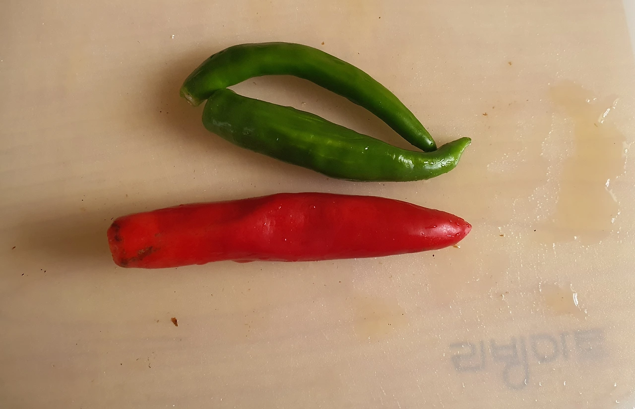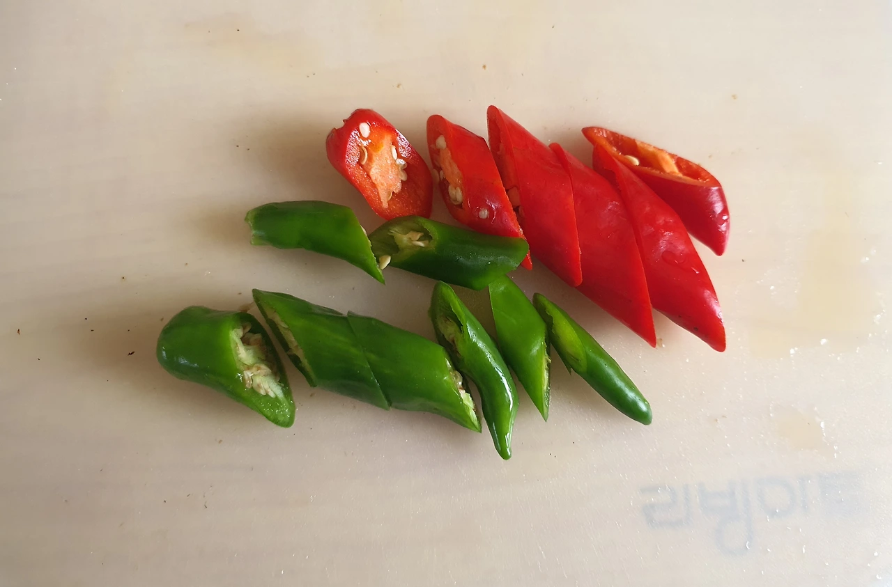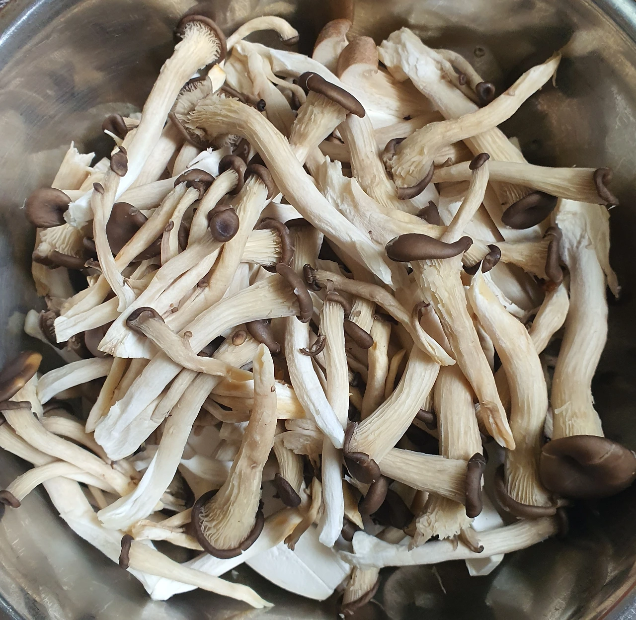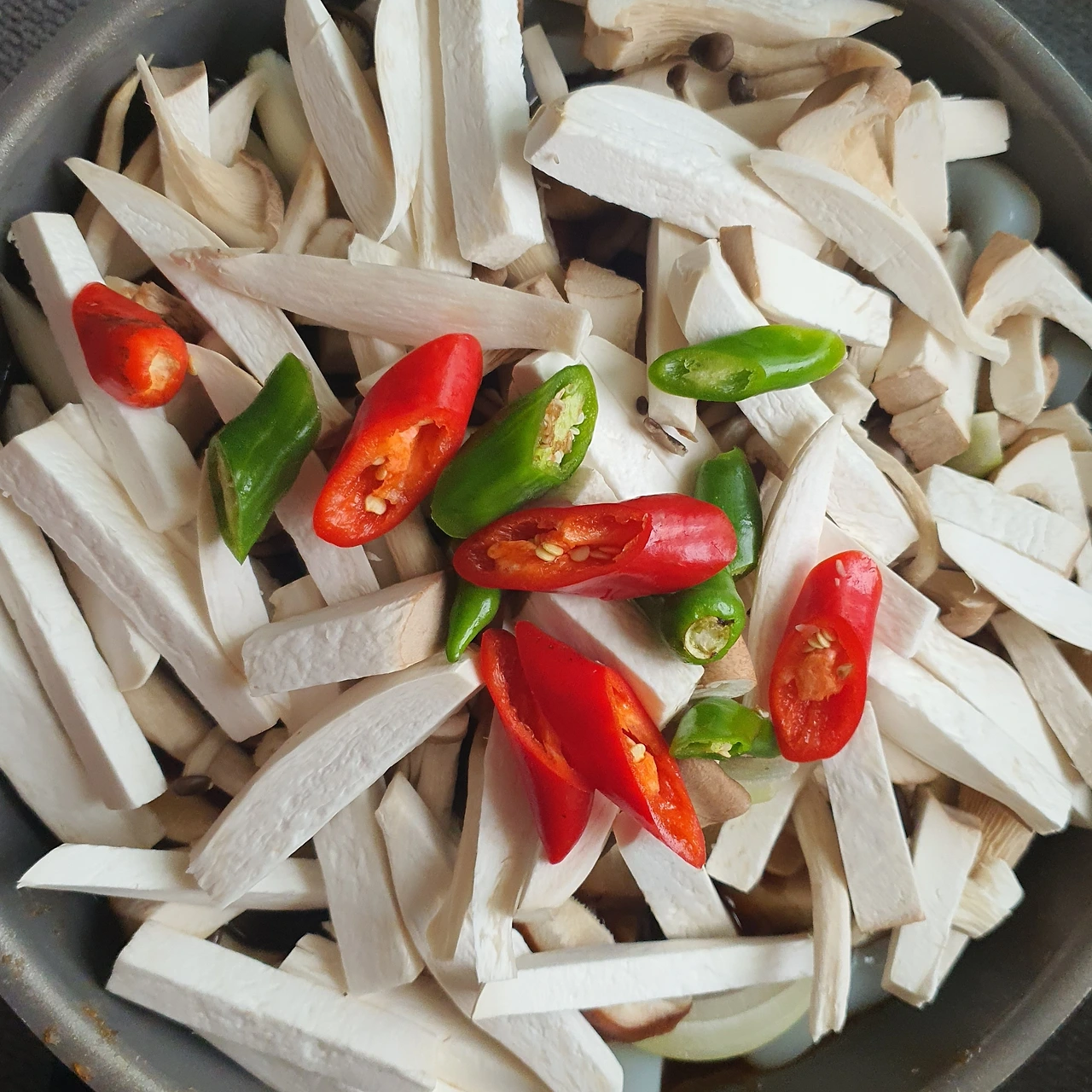 • 느타리버섯은 한 개씩 띠어 준비하고, 청양고추는 둠성둠성 썰어둔다. 육수 낼 때 넣었던 무말랭이도 조금.