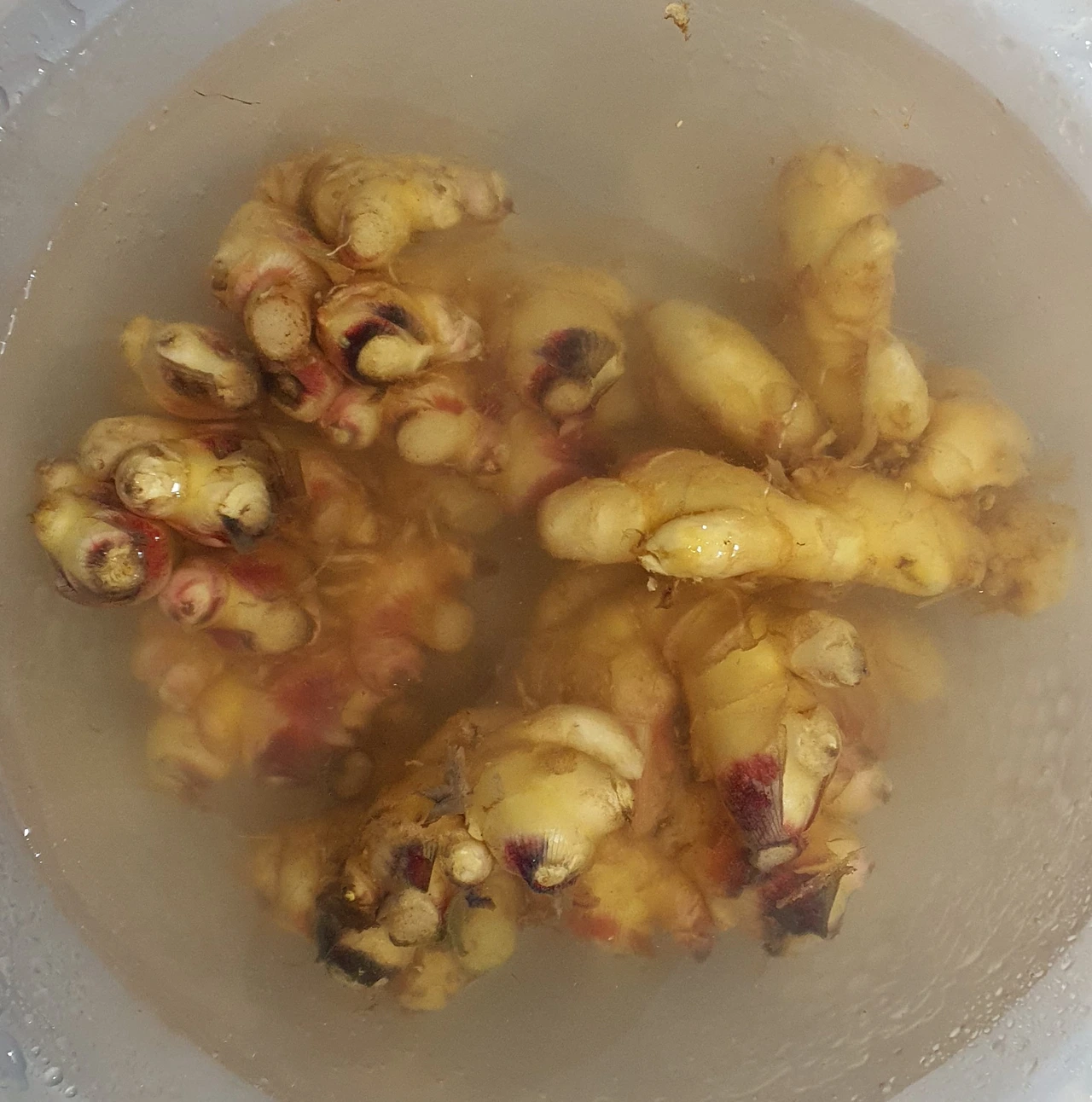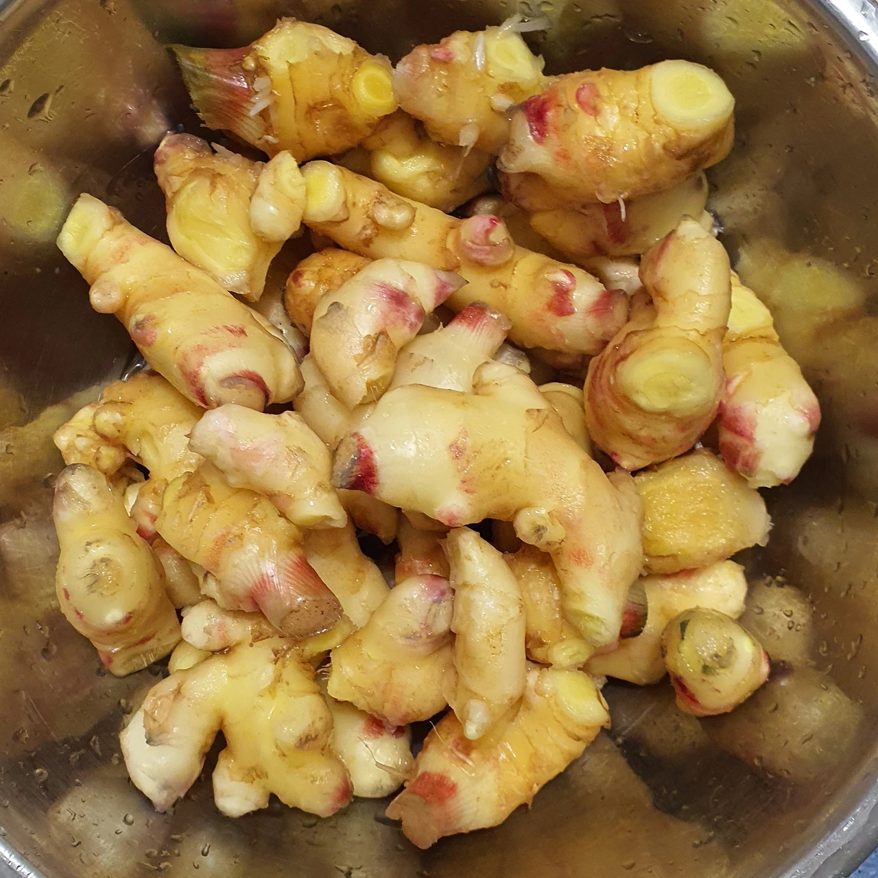 • 햇생강을 구입해서 물에 10분 정도 담가 두었다가 깨끗이 씻어 불순물을 제거해 준다.