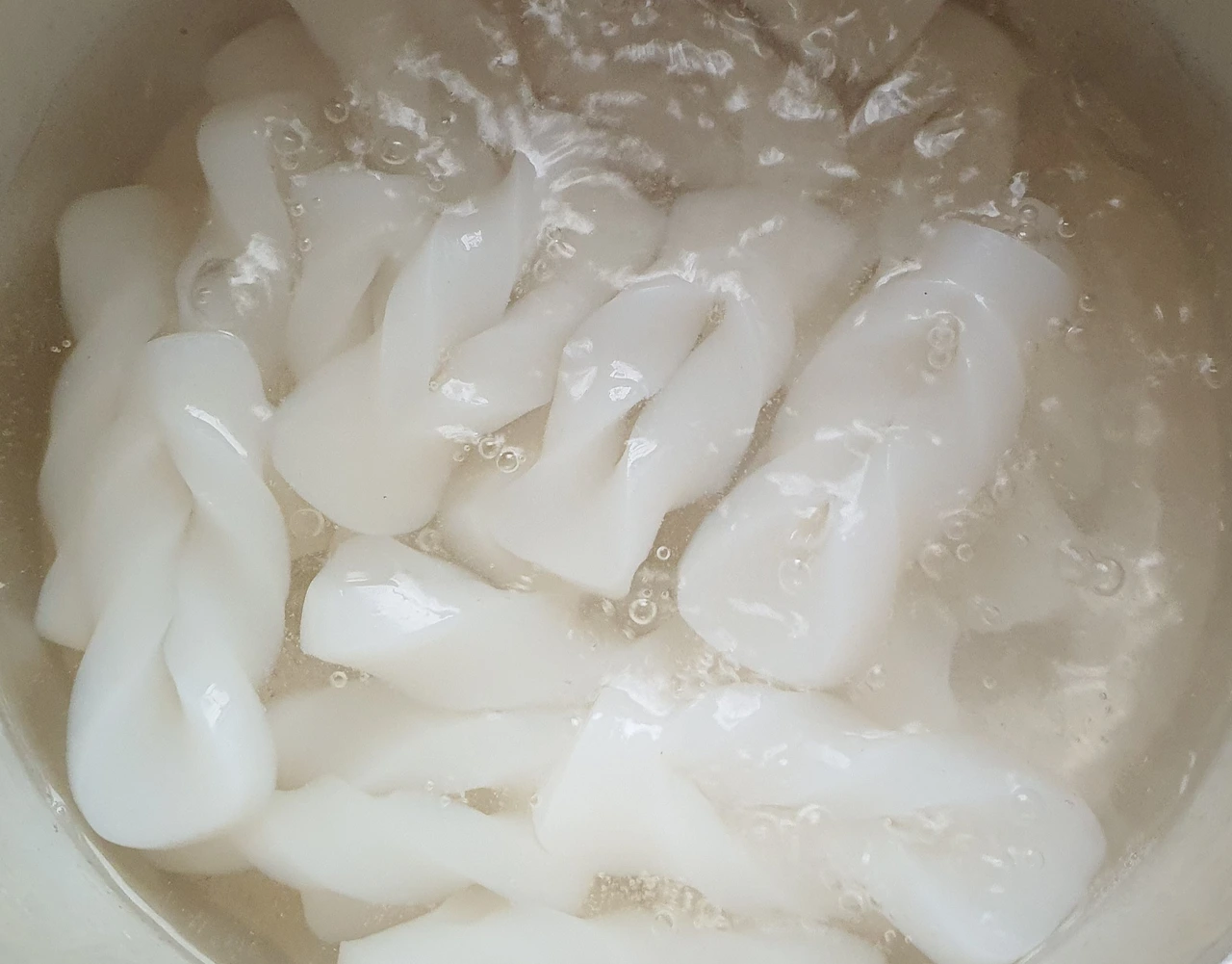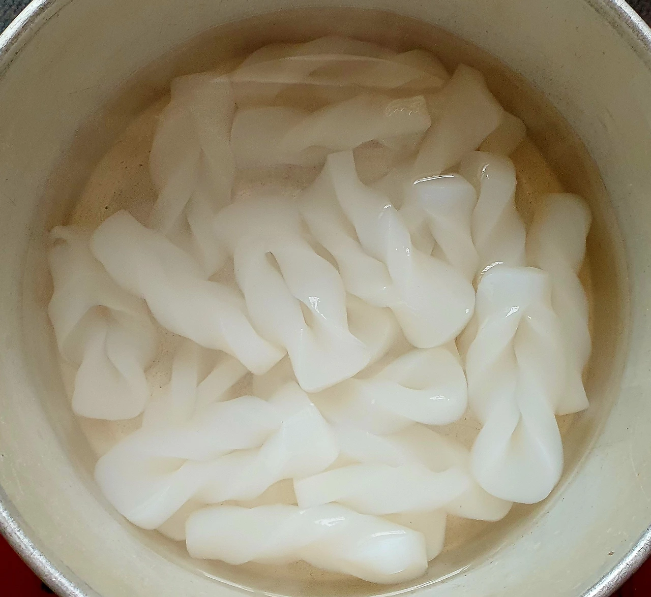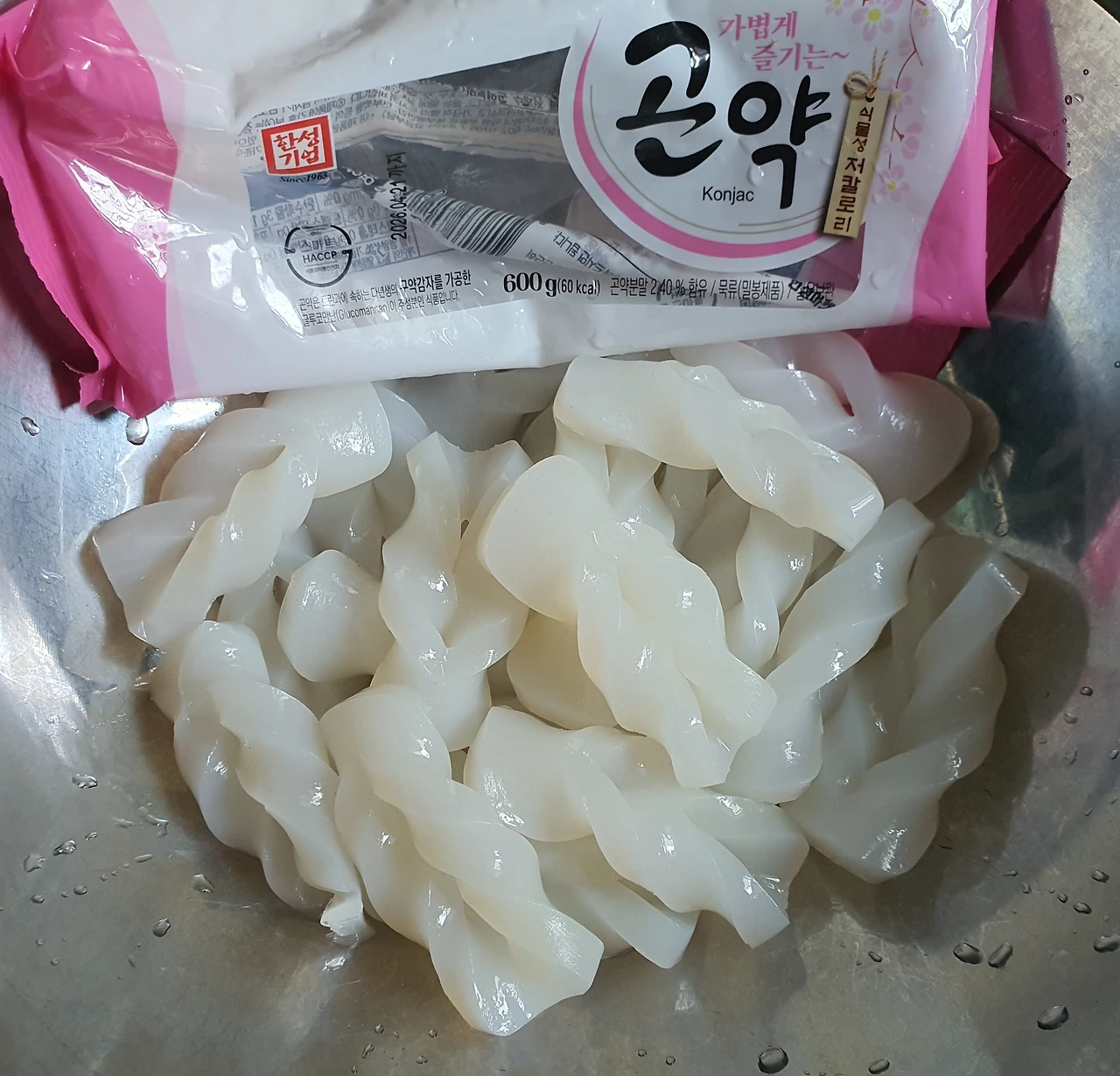 • 곤약은 물에 헹구고, 먹기 좋게 썰어 끓는 물에 소금과 식초를 조금 넣어 데쳐서 찬물에 씻어 특유의 냄새를 제거하고 먹기 좋은 크기로 썰어 준비한다.
