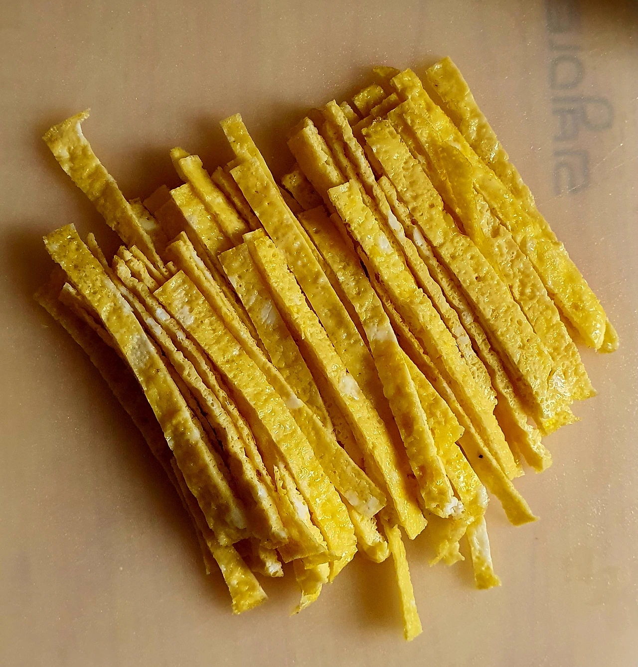 • 달걀은 잘 풀어 지단을 부쳐 식힌 후에 채를 썰어 준비한다.