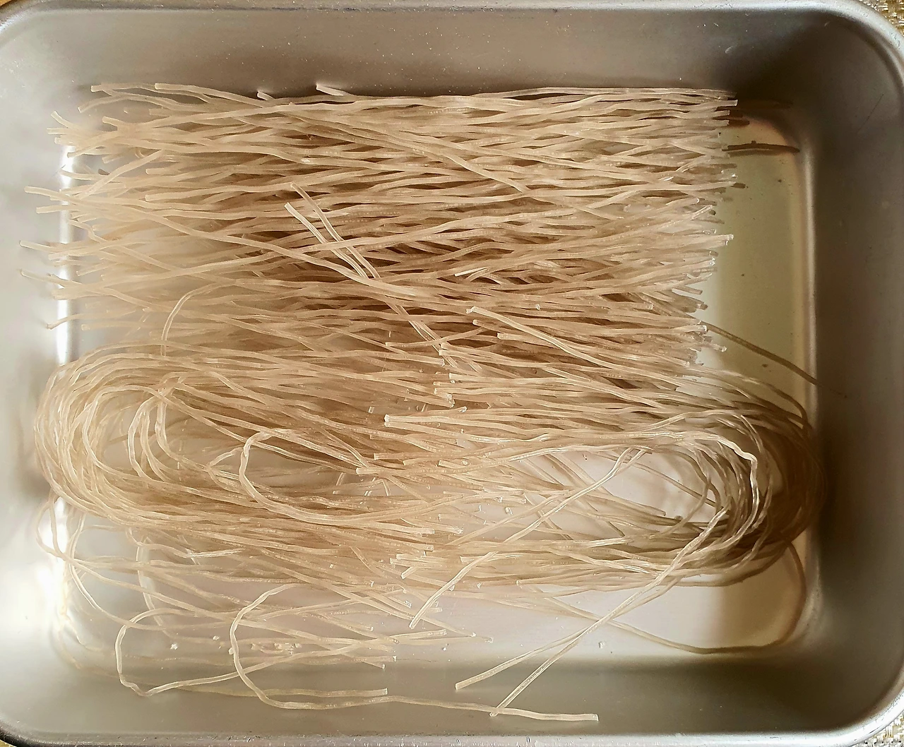 • 당면은 물에 충분히 불려두고, 부추도 씻어 먹기 좋은 크기로 썰어둔다.