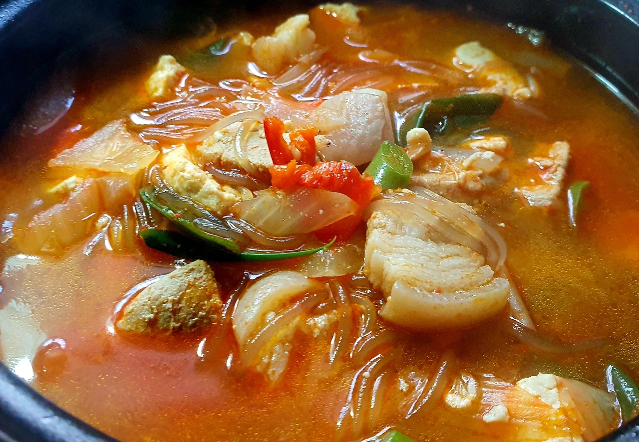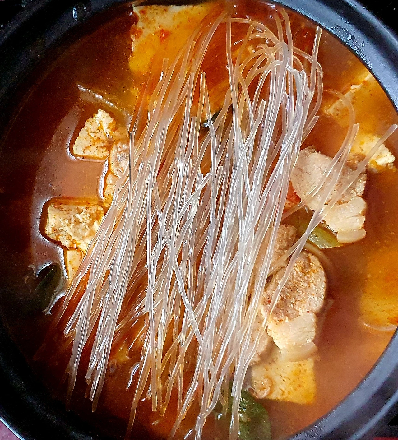 • 혼밥을 하시는 분은 뚝배기에 1인분을 담고 요리헌터는 당면을 좋아해서 당면을 불려 조금 넣고 바글바글 한번 끓여주면 끝.