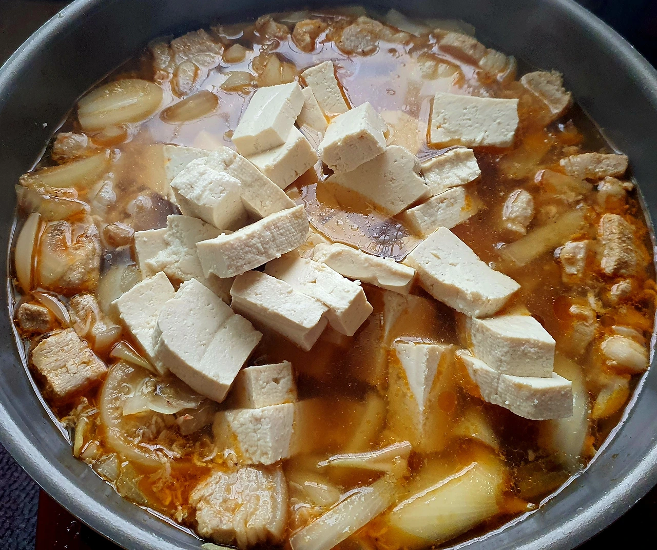 • 돼지고기와 두부는 쑴덩쑴덩 먹기 좋게 썰어 둔다.