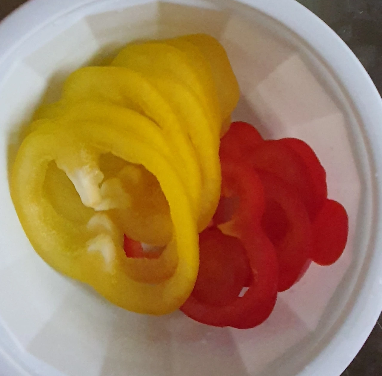 • 양배추는 먹기 좋게 썰어 물에 씻어 물기를 빼서 준비한다. 파프리카는 씨를 제거하고 원형으로 얇게 썰어 준비한다.