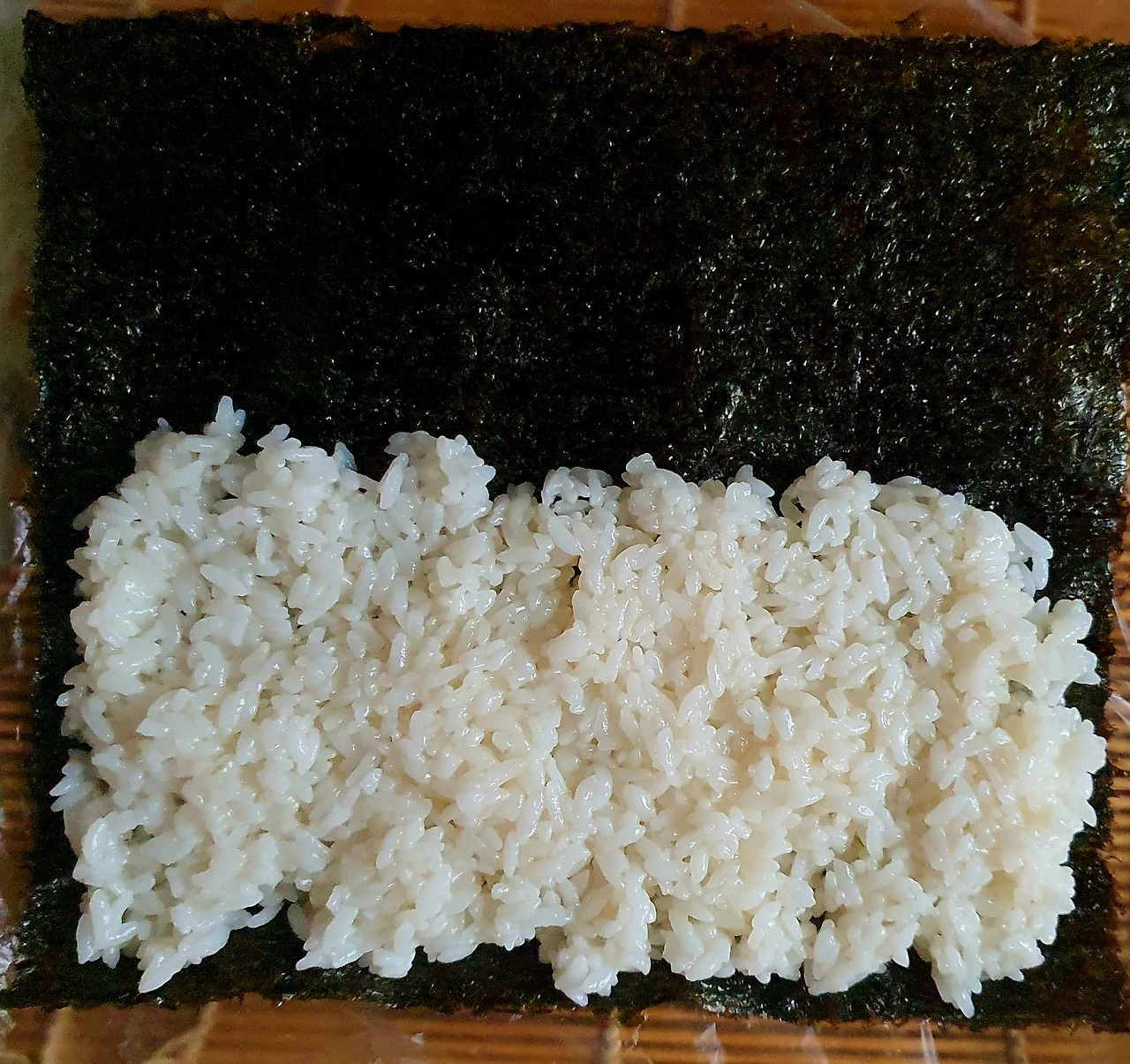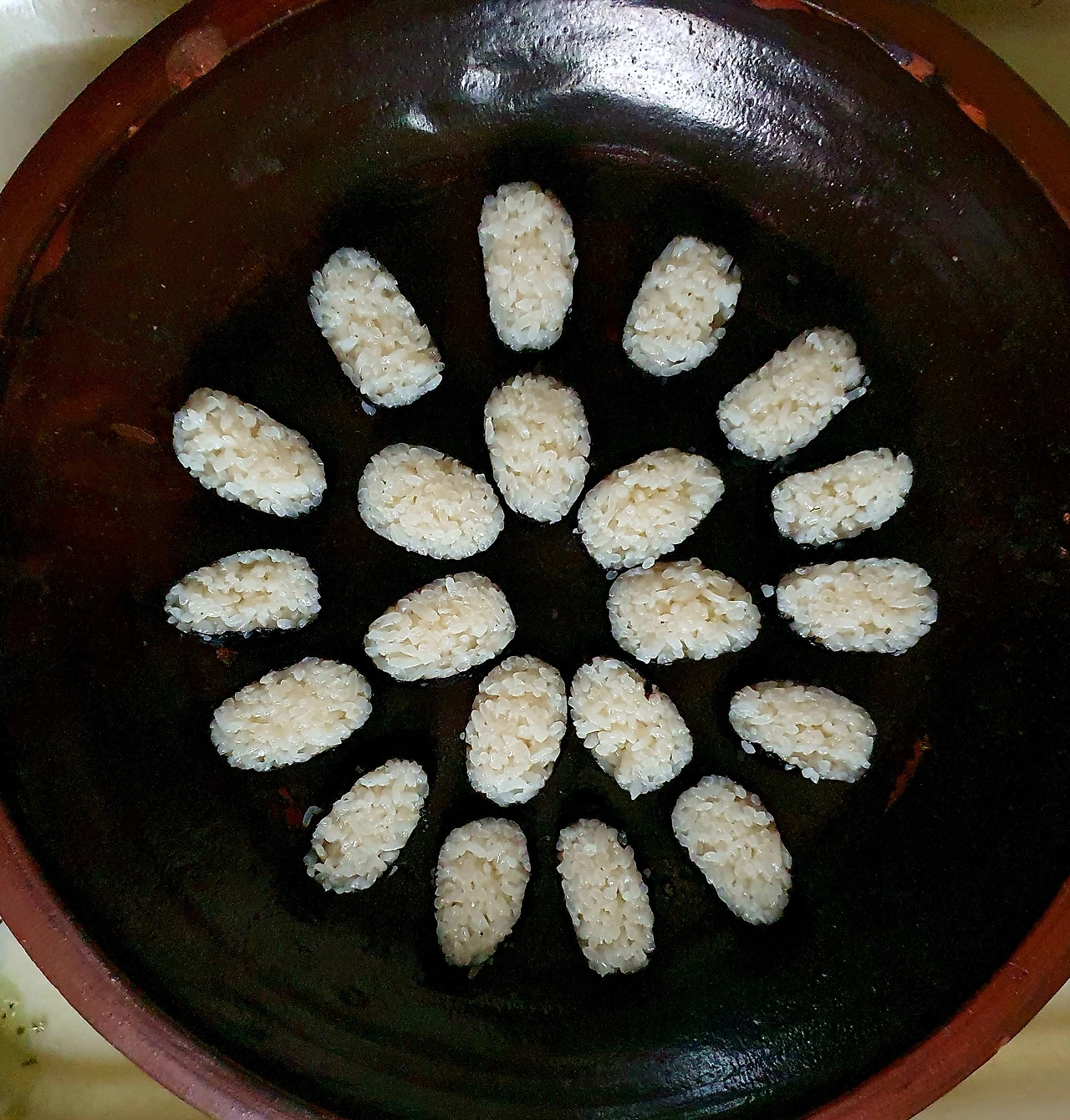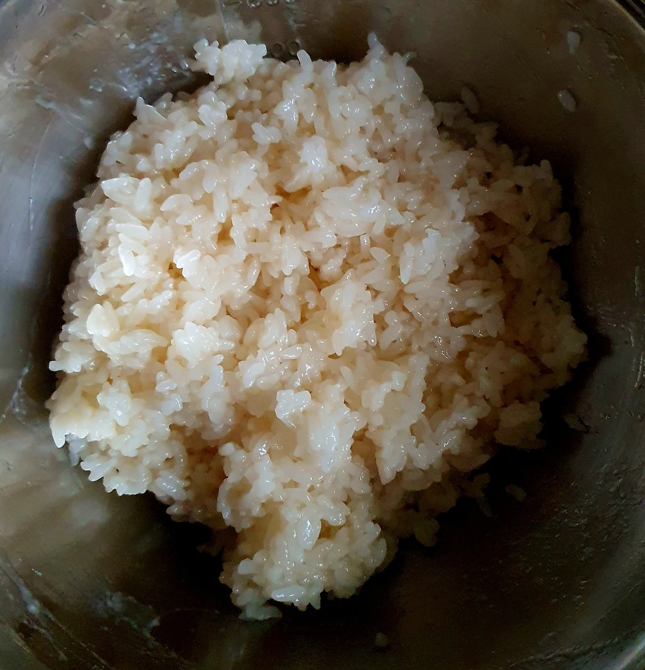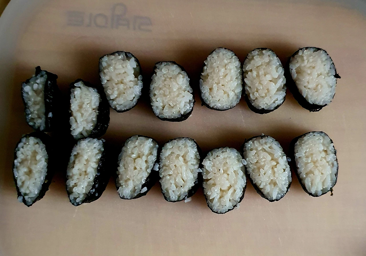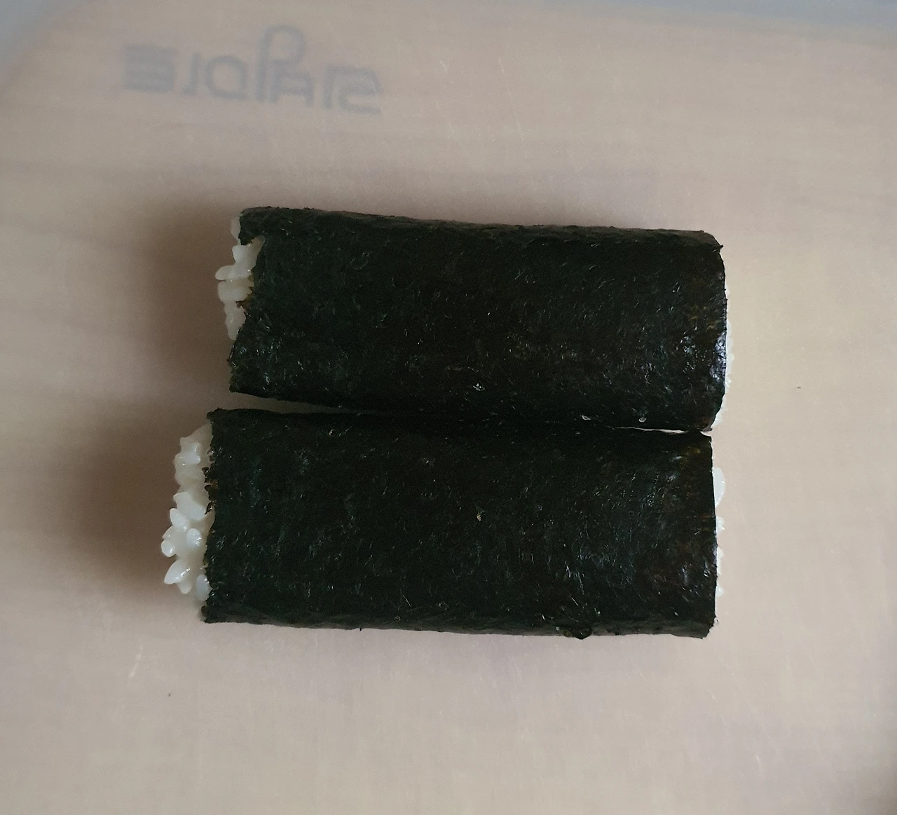 • 즉석밥은 랜즈에 돌려 식힌 후 단촛물에 비벼서 김밥을 말아먹기 좋은 크기로 썰어 준다.
