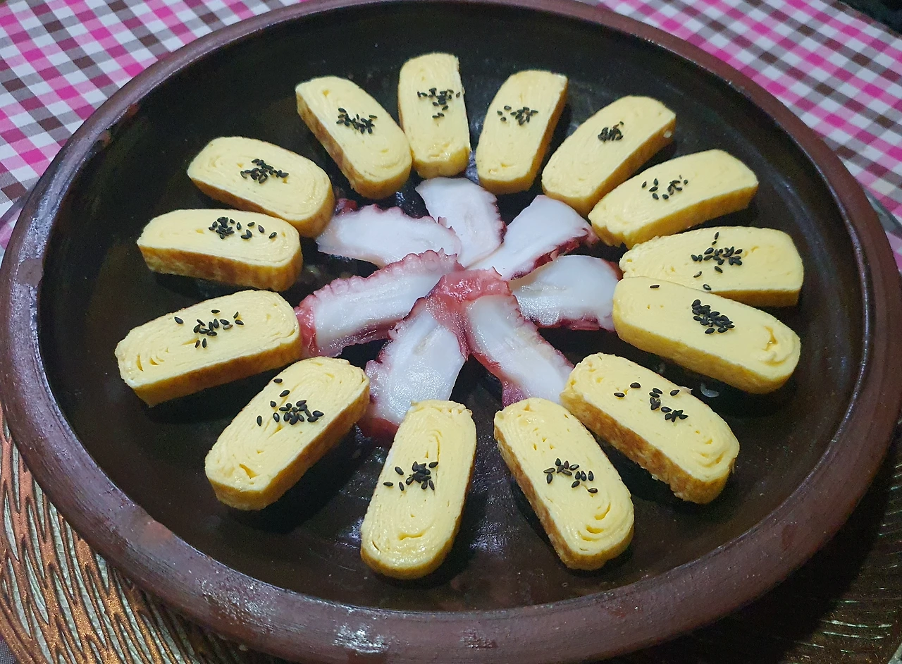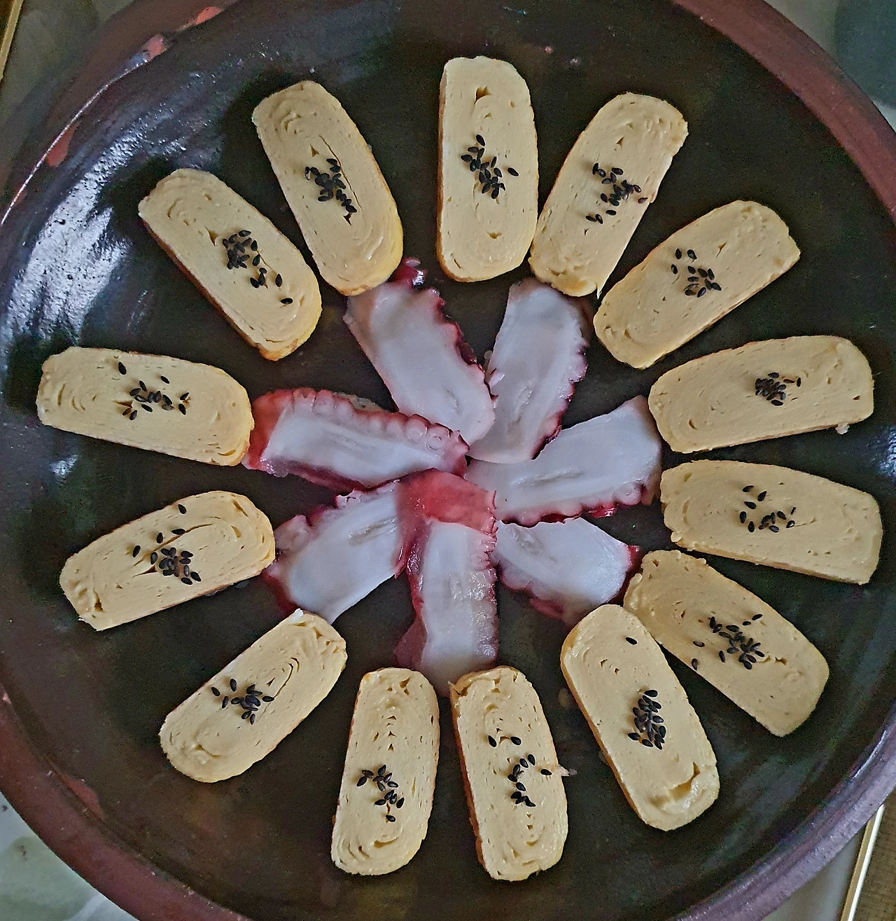 • 시판 문어숙회는 데코로 준비했어요. 계란말이만으론 부족할 것 같아 마트에서 장 보며 한팩을 구매.
