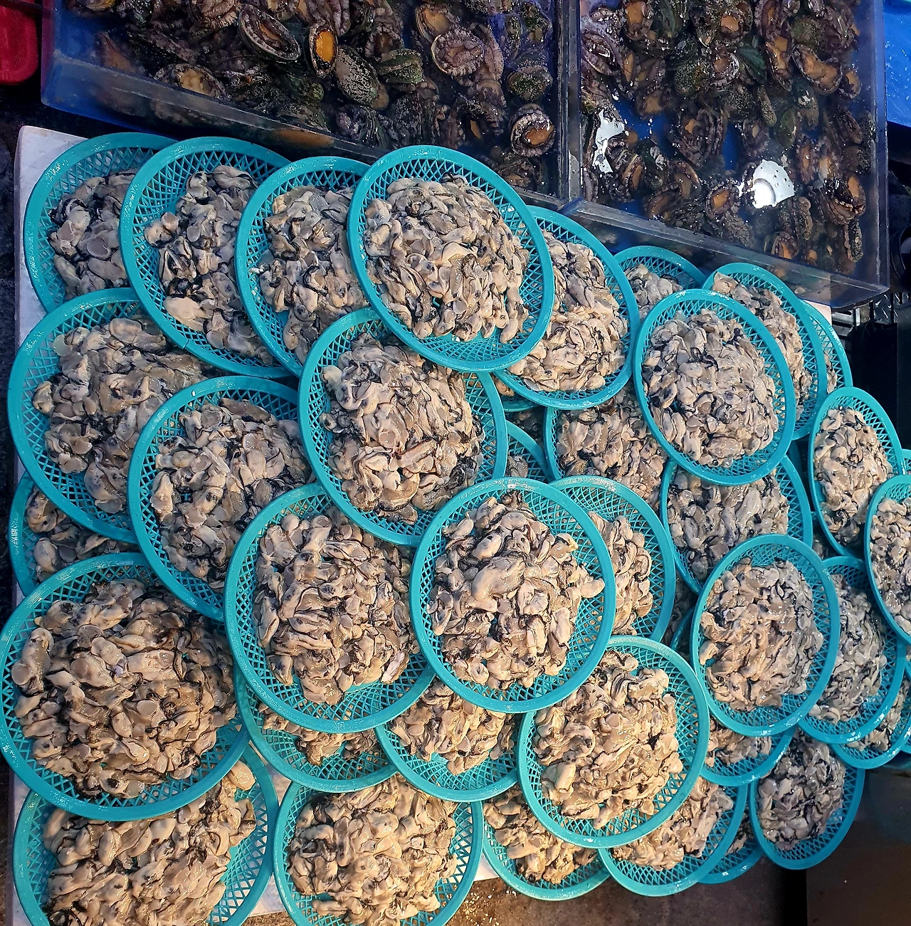 아들집에 가기 전 그곳 시장에서 신선한 굴을 사서