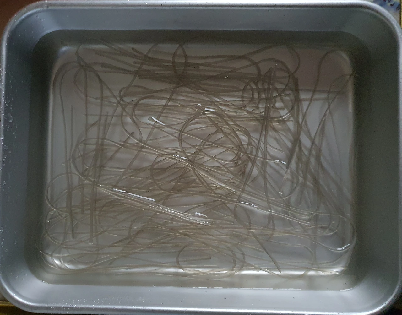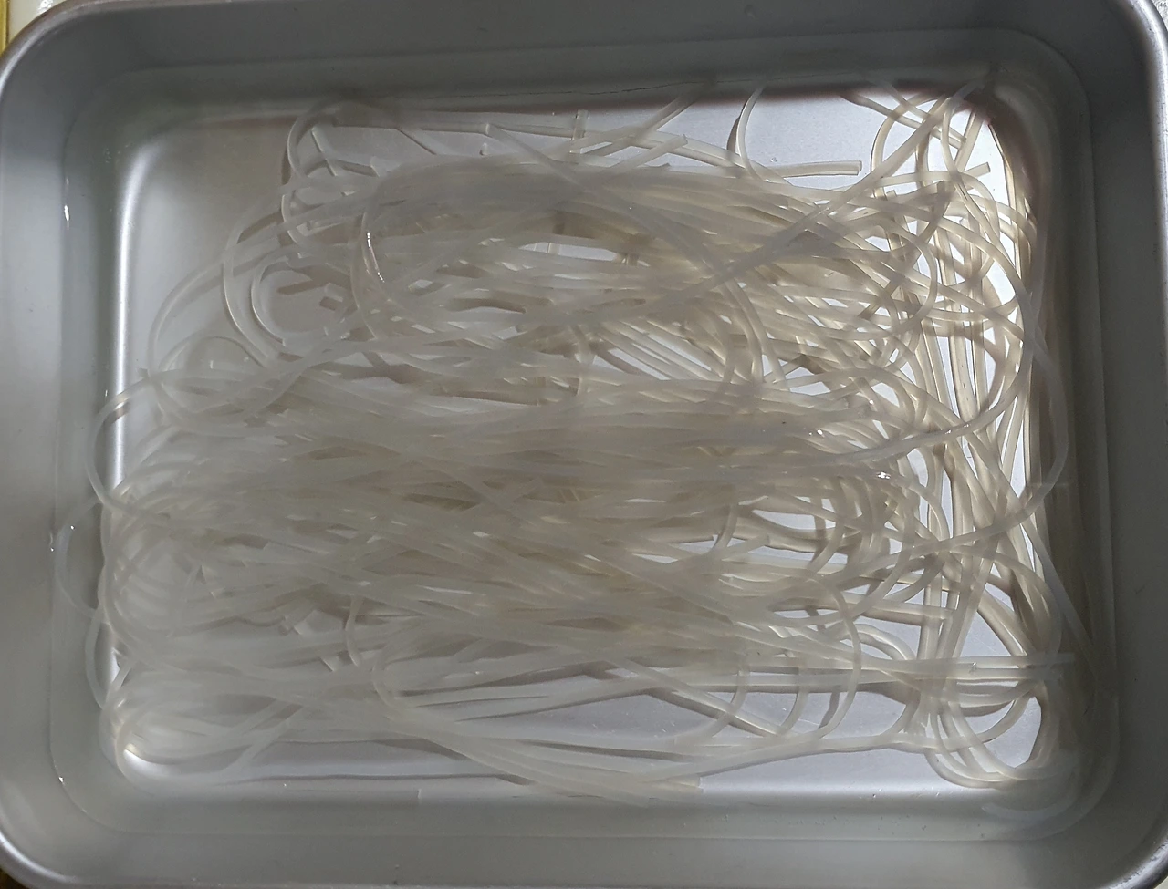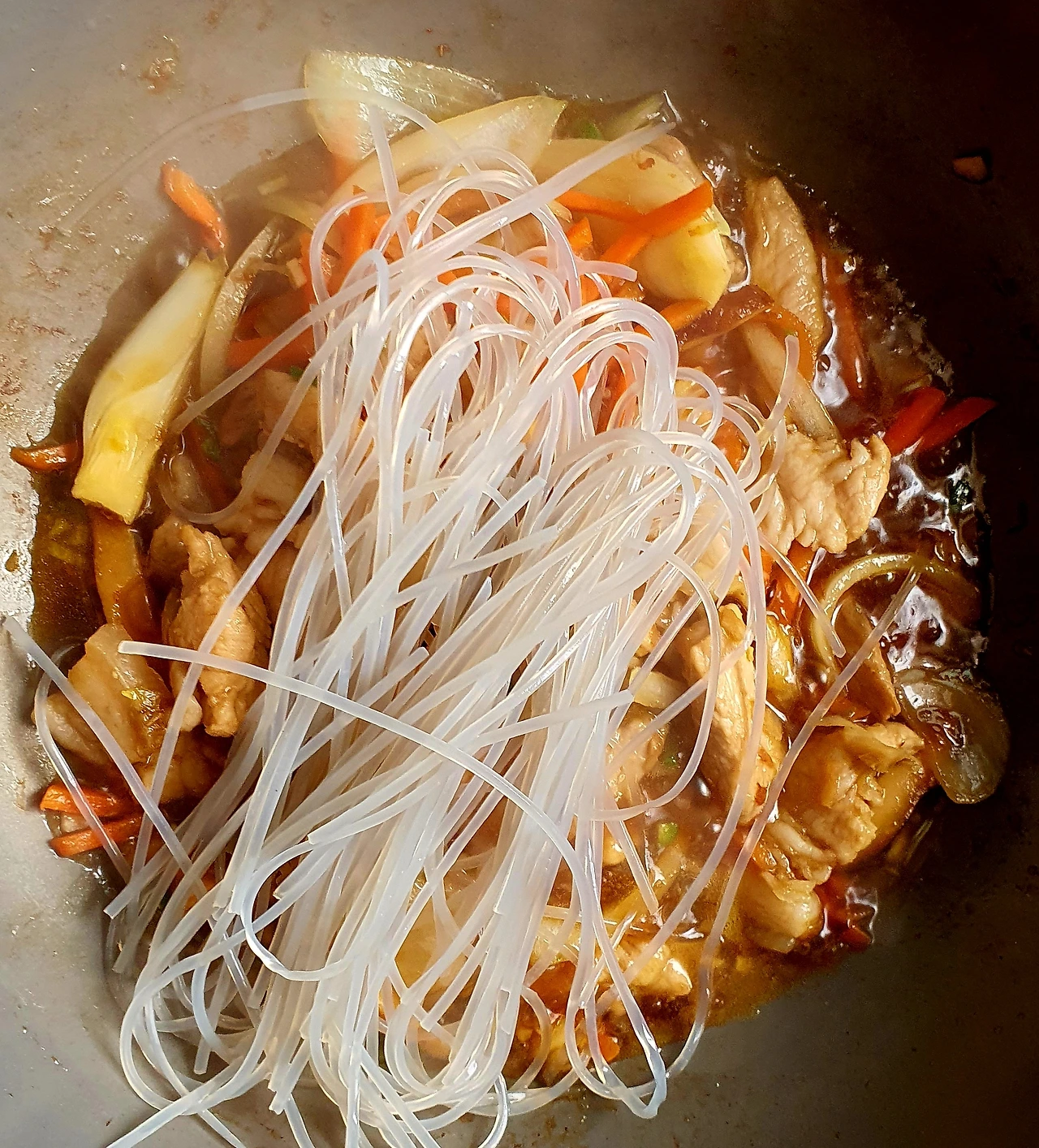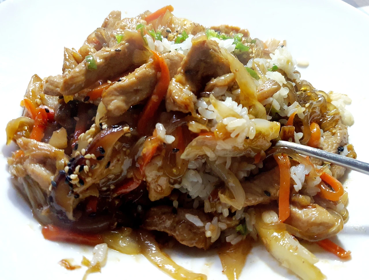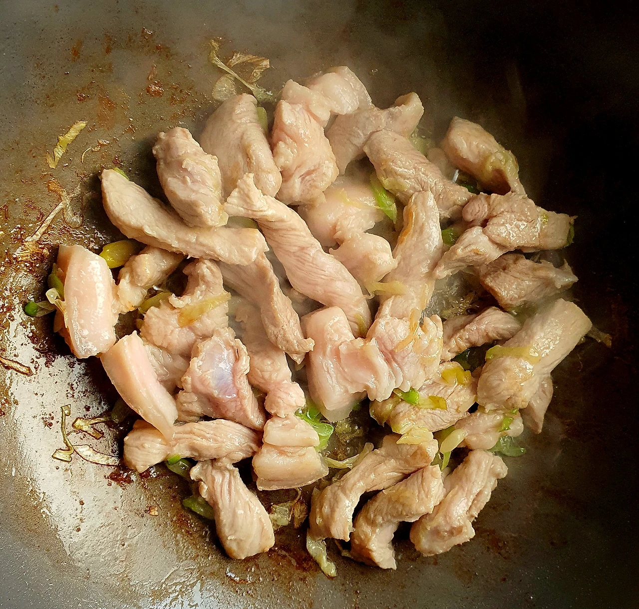 • 당면을 넣고 볶으면 고기와 채소. 양념물을 당면이 흡수하며 볶어진다.