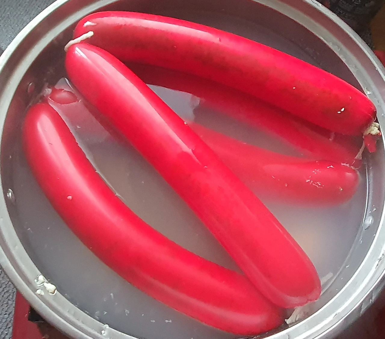 • 치자로 색을 낸 것과 비트로 색을 낸 것으로 구분해서 만들어 소시지를 만들었는데... 결과가 색변화가 없음...ㅠ