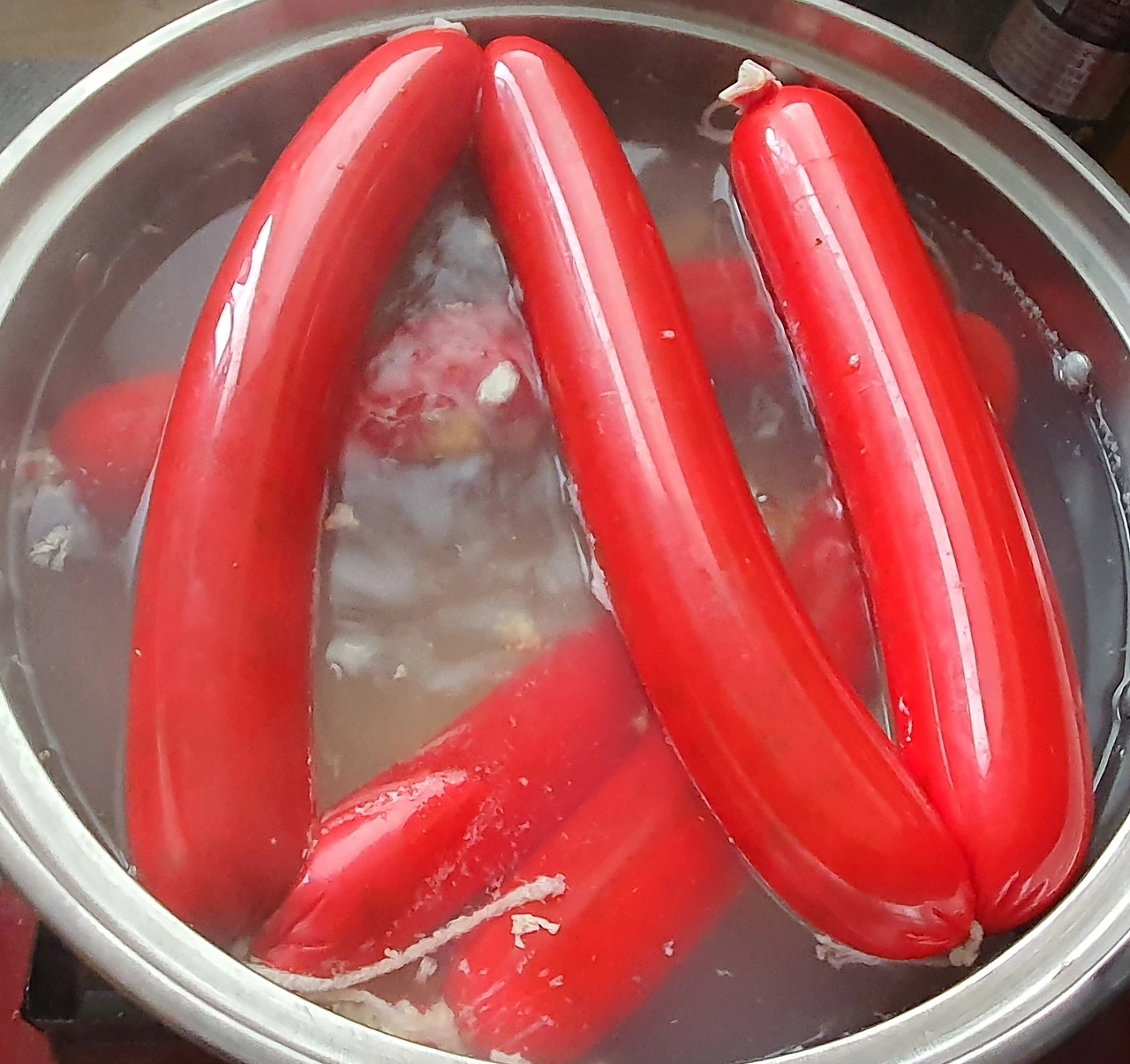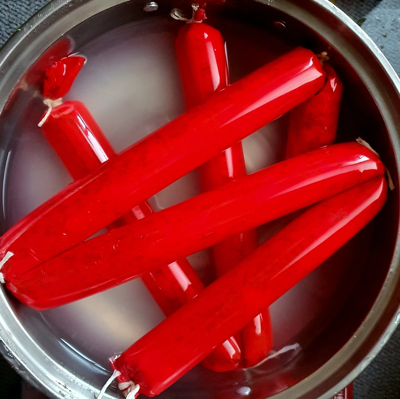 • 끓는 물에 만든 소시지를 넣고 앞뒤로 뒤집어가며 15~20분 정도 삶아 준다.