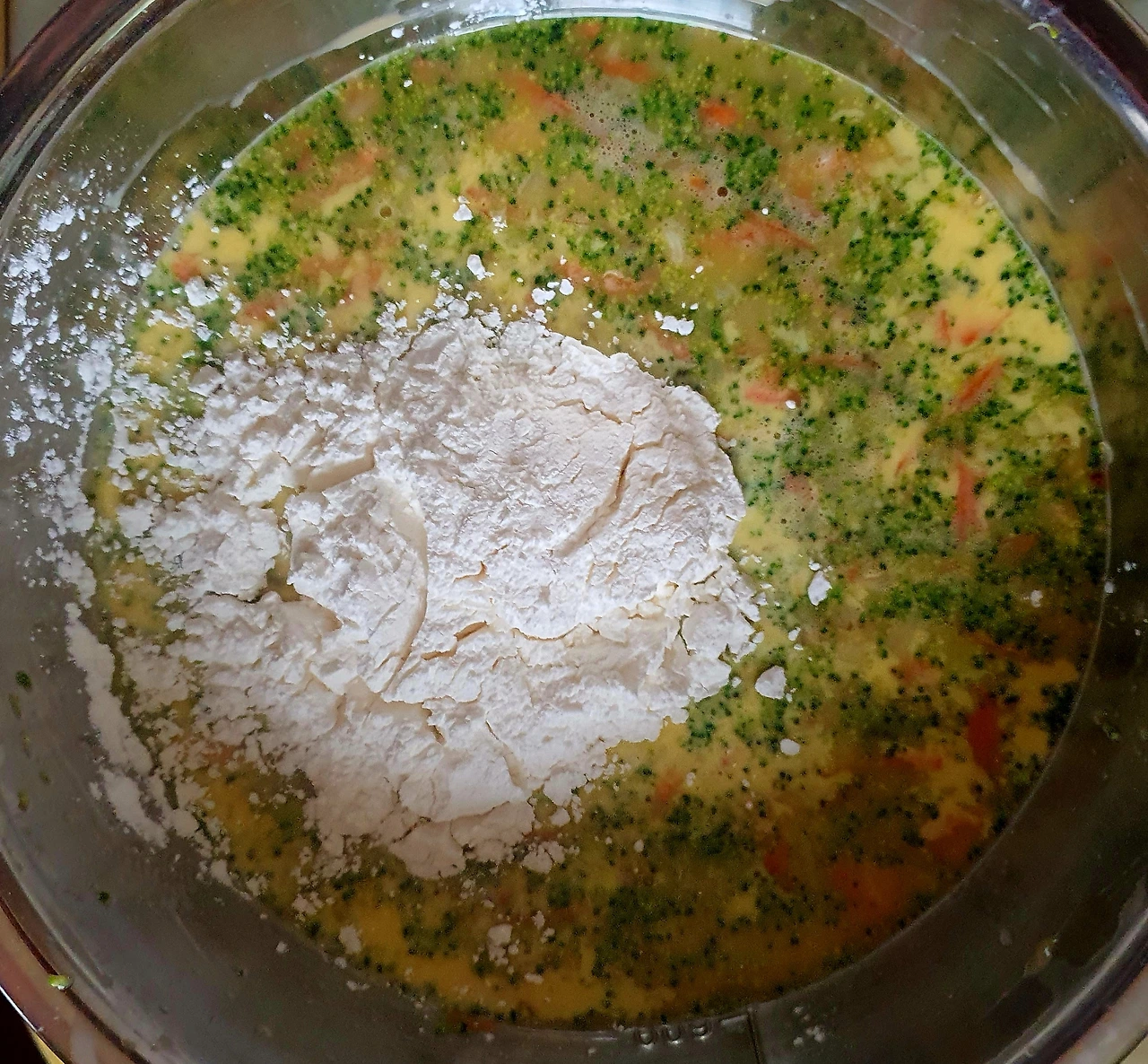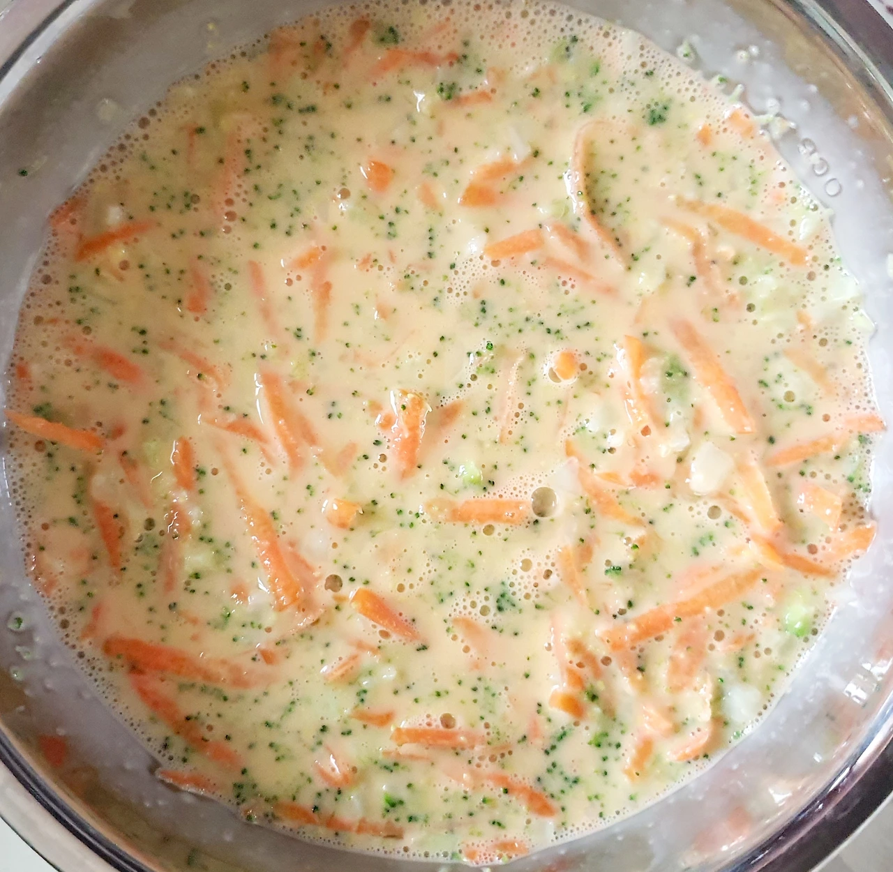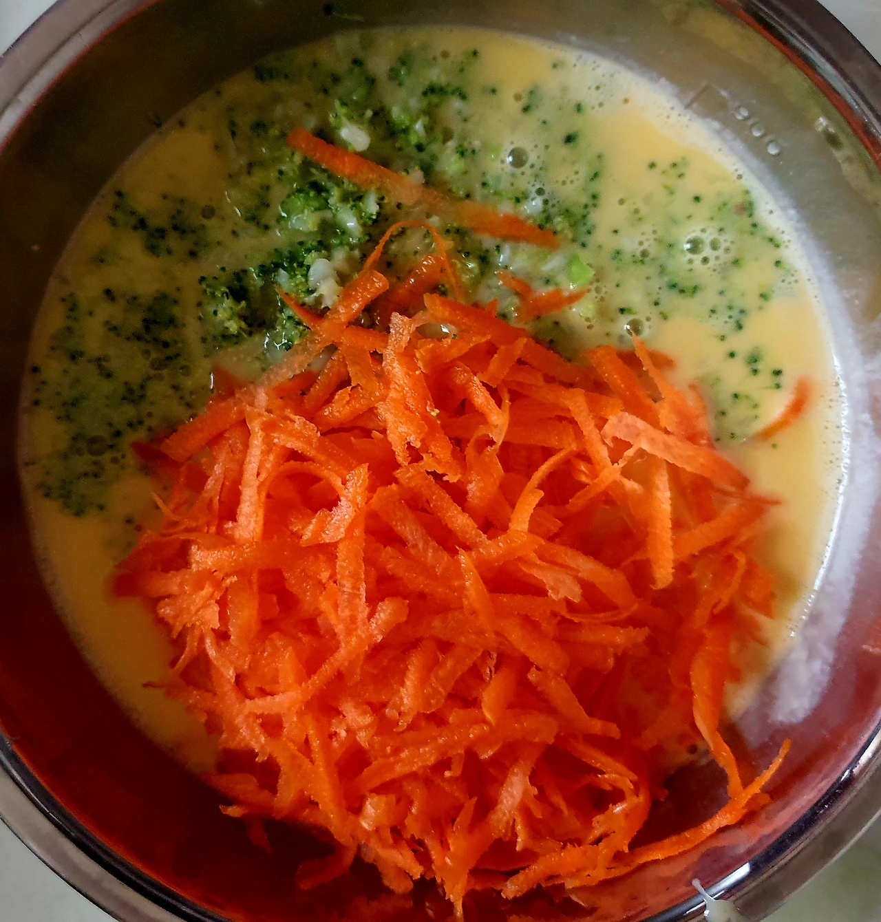 • 풀어놓은 달걀에 브로콜리. 당근. 소금. 설탕을 넣고 잘 섞어준다.