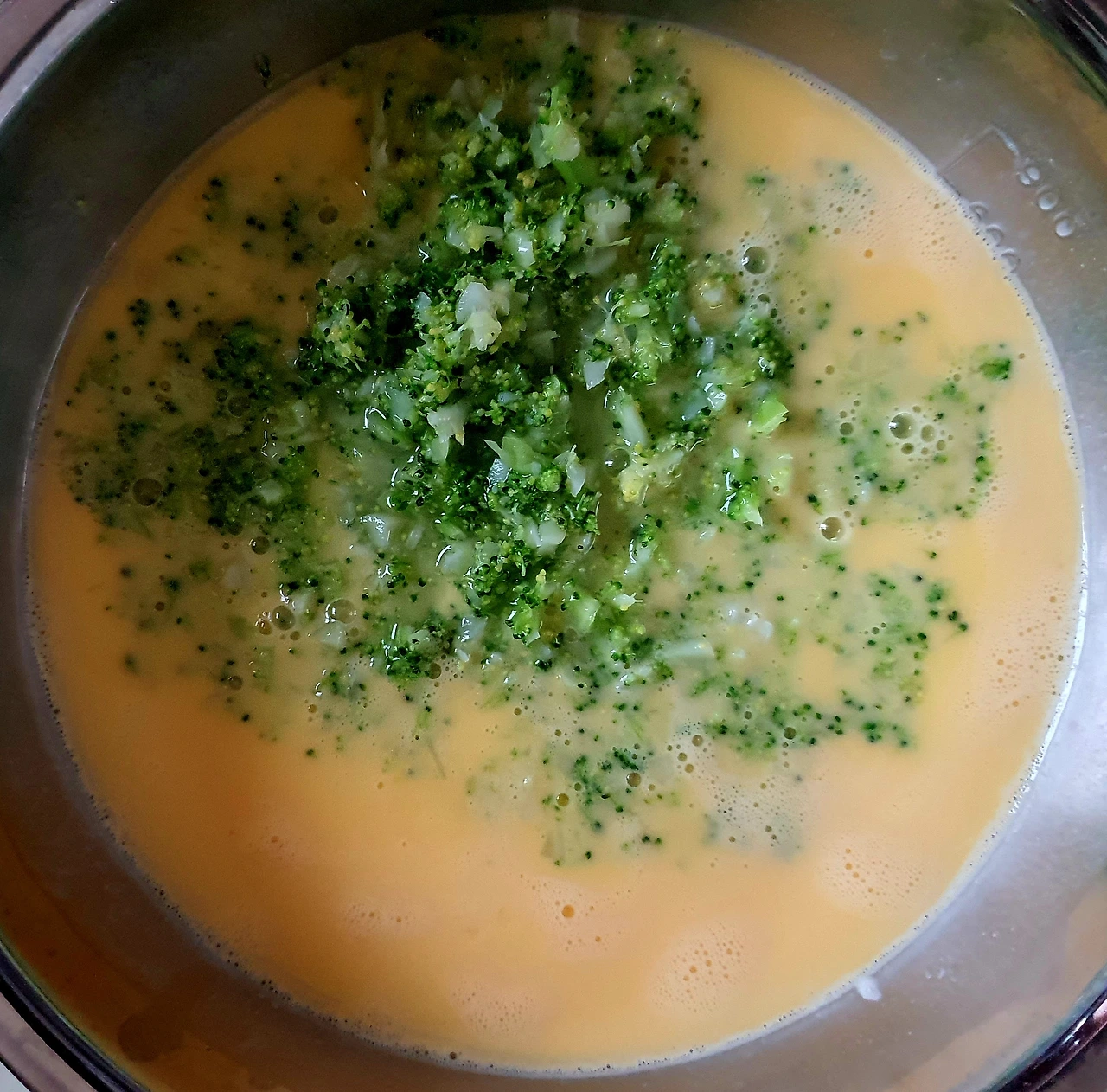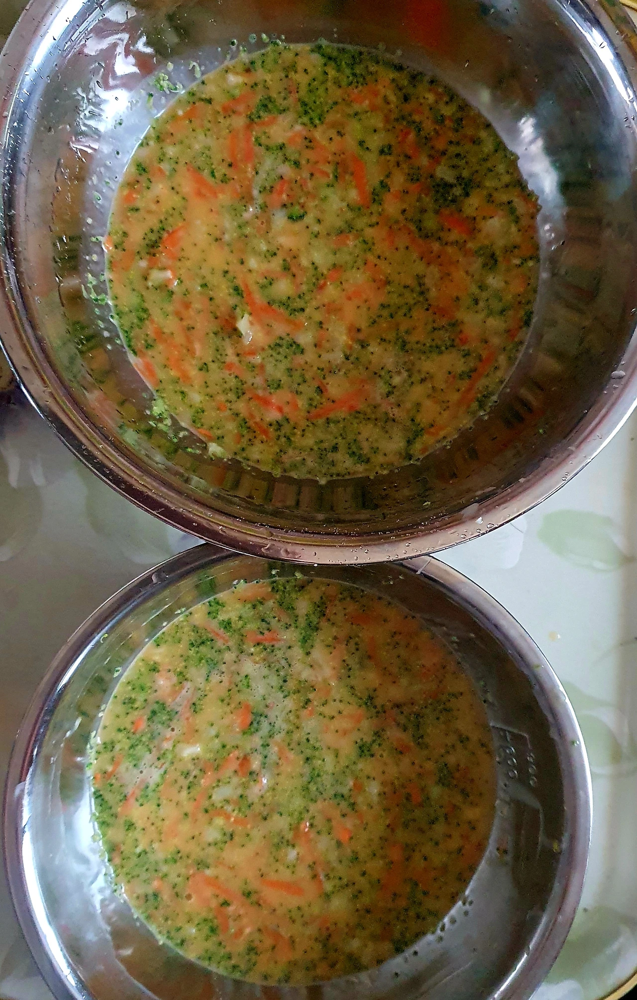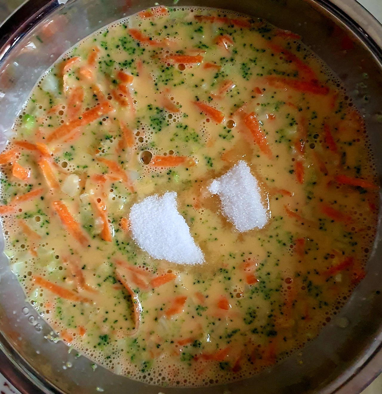 • 풀어놓은 달걀에 브로콜리. 당근. 소금. 설탕을 넣고 잘 섞어준다.