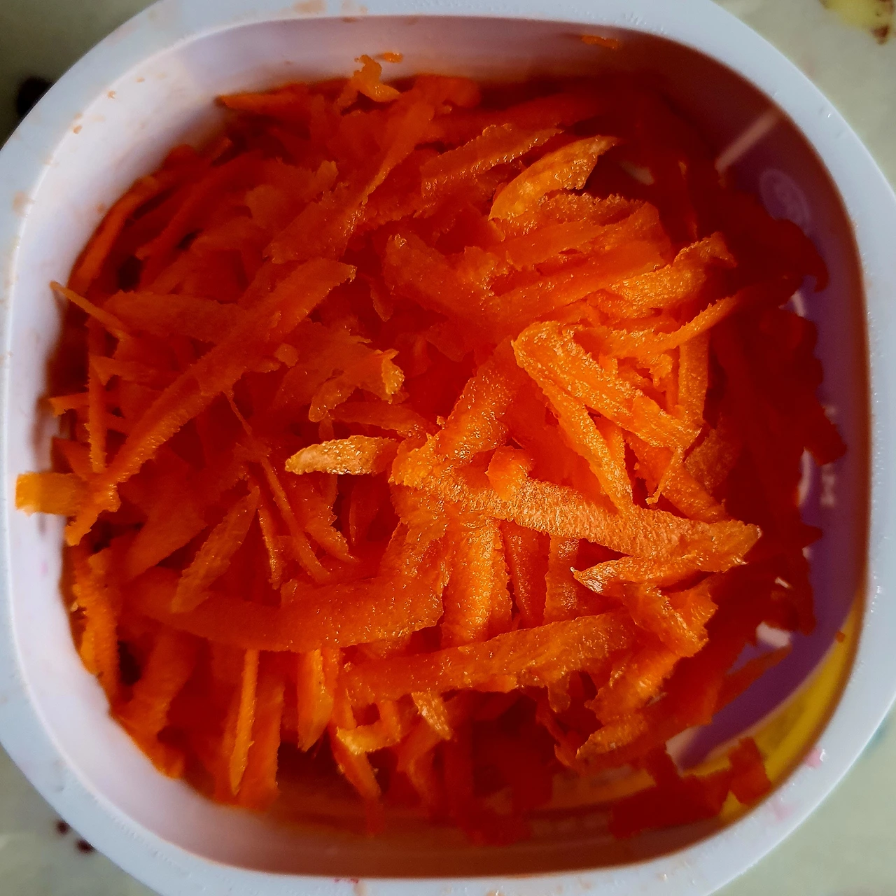 • 당근은 채칼로 곱게 채를 썰어준다. 브로콜리도 잘게 띄어서 세척을 해서 준비한다.