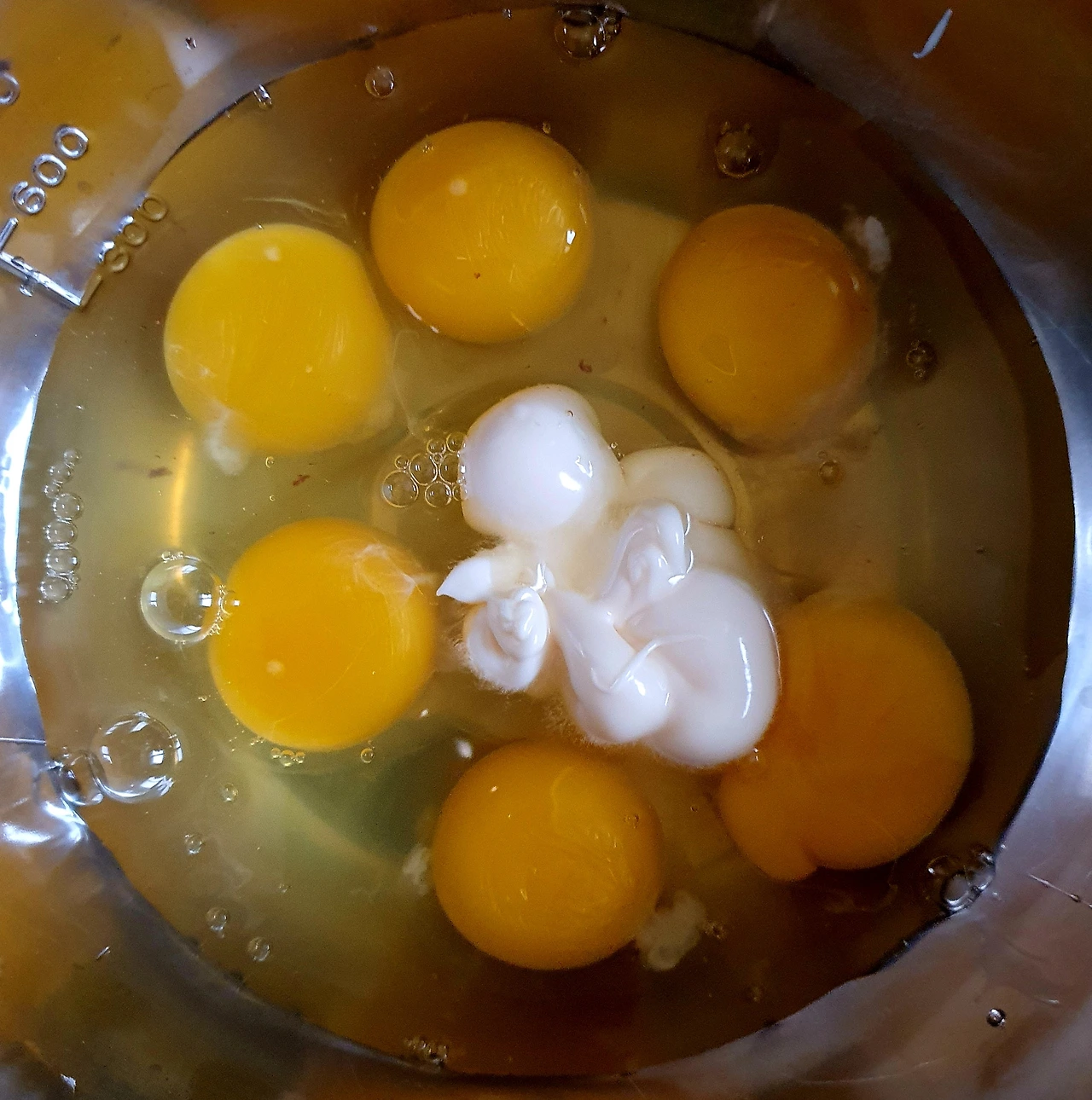 • 달걀 6개를 마요네즈와 함께 풀어 준다.