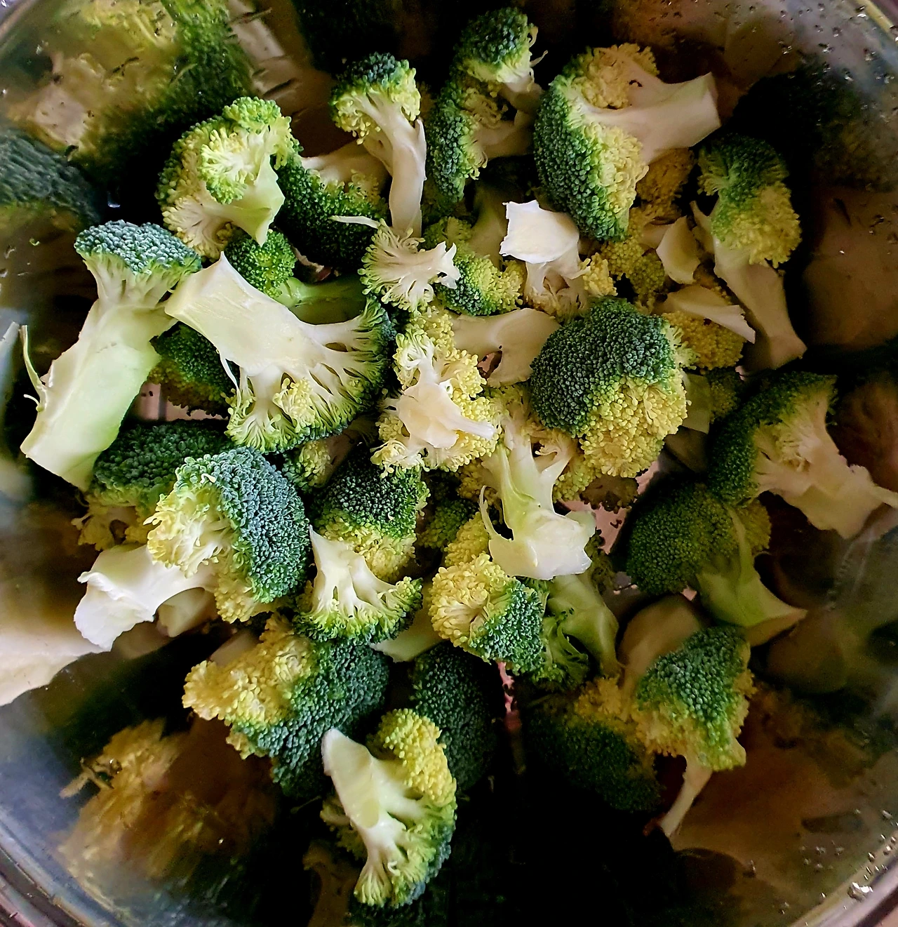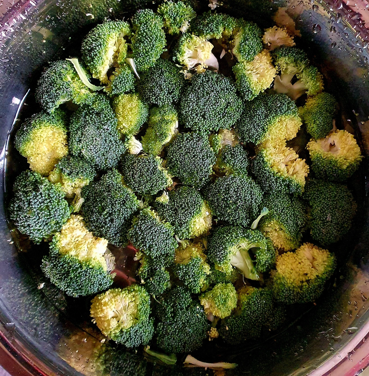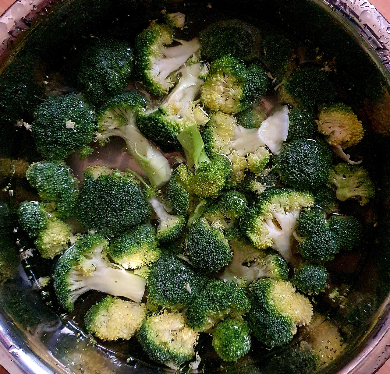 • 넓은 그릇에 물을 가득 담은 뒤 꽃 부분이 물에 잠기게 뒤집어서 담가 주고, 이대로 약 10분 정도 그대로 두면 되는데, 브로콜리 꽃봉오리가 열리면서 안에 있던 이물질이 떨어져 나오게 하는 원리이다.
