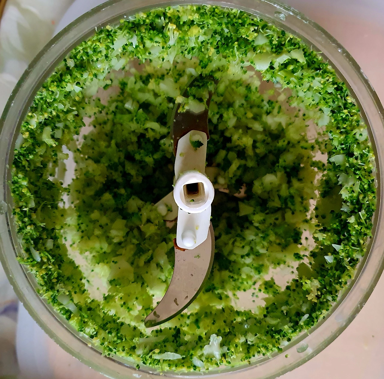 • 끓는 소금물에 브로콜리를 넣고 데쳐서 찬물에 헹궈 커터기로 대충 갈아 준비한다.