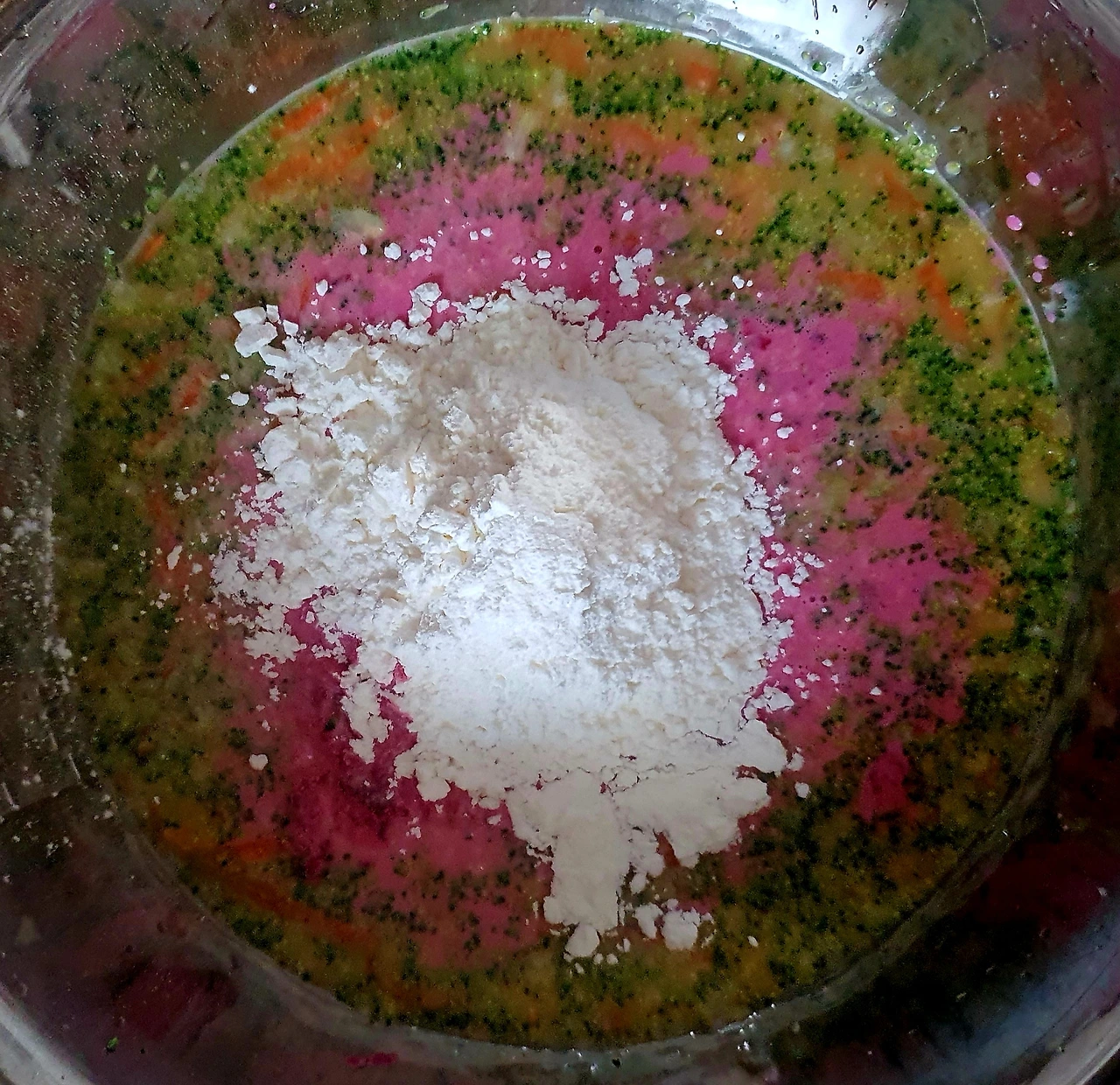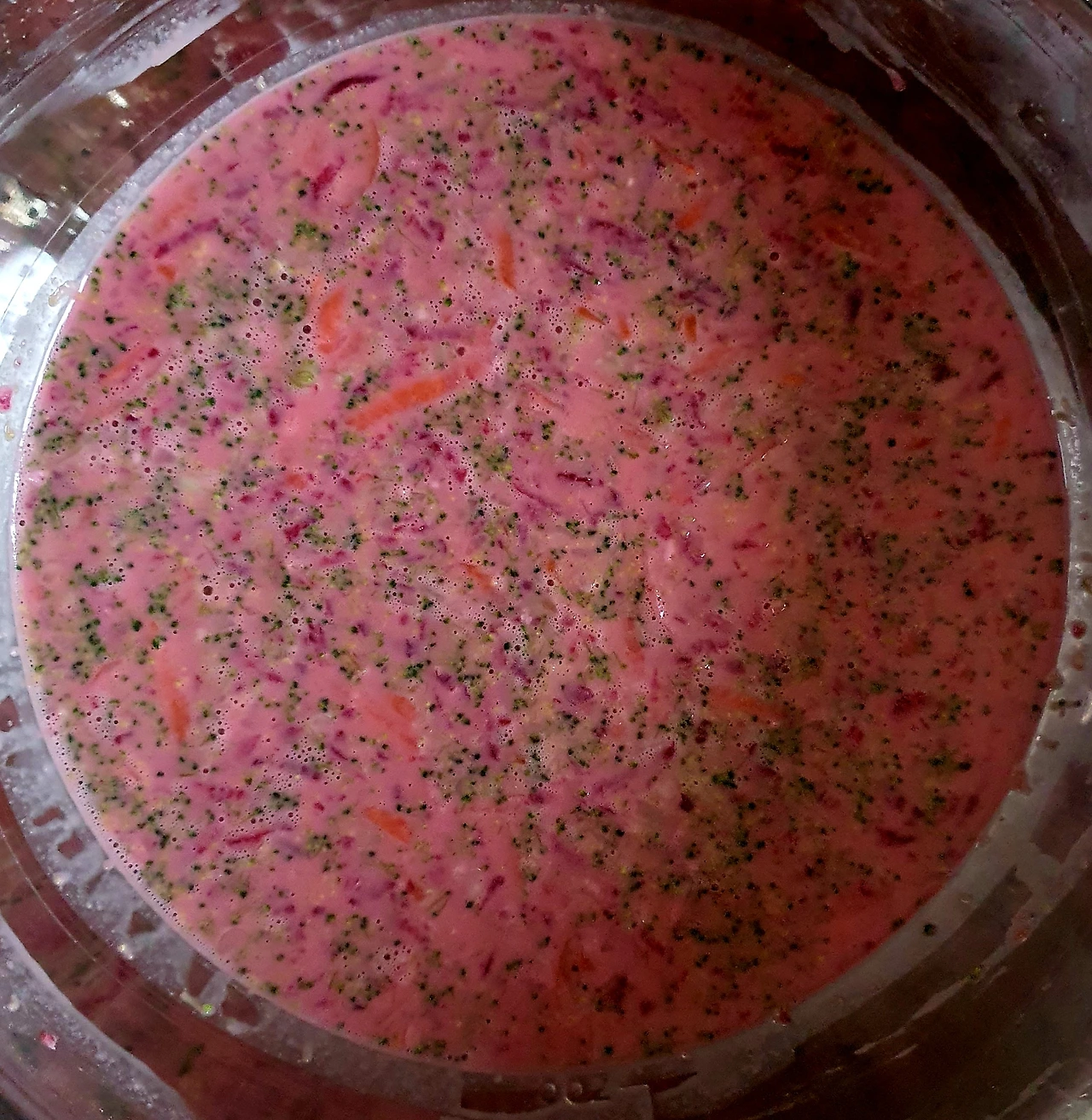 • 우유 ½컵은 비트를 조금 갈아서 색을 내준다. 비트는 열을 가하면 그예쁜색이 사라져요... 하지 마세요..ㅠ