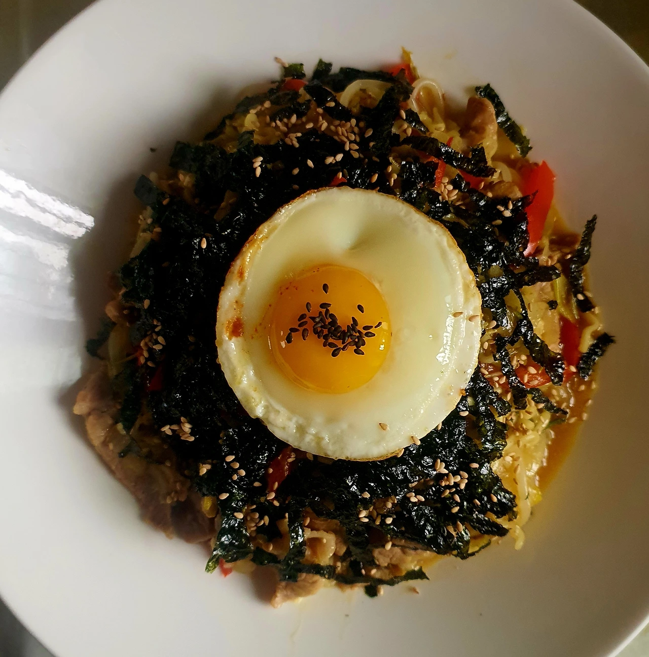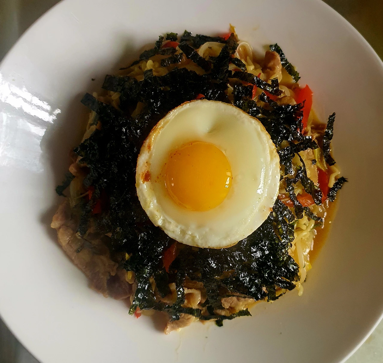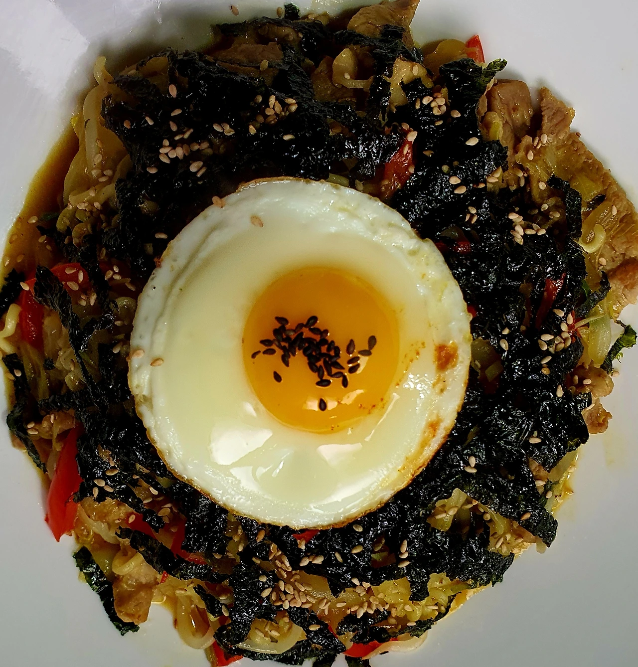 • 완성접시에 볶음면을 담고 위에 달걀과 김가루. 통깨를 올려주면 완성