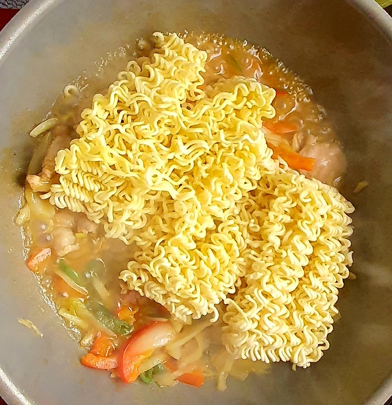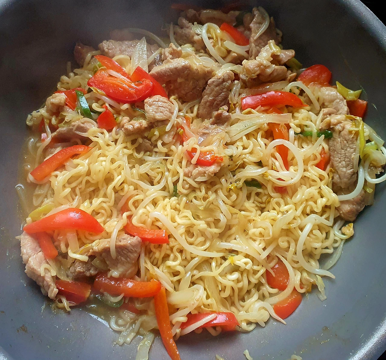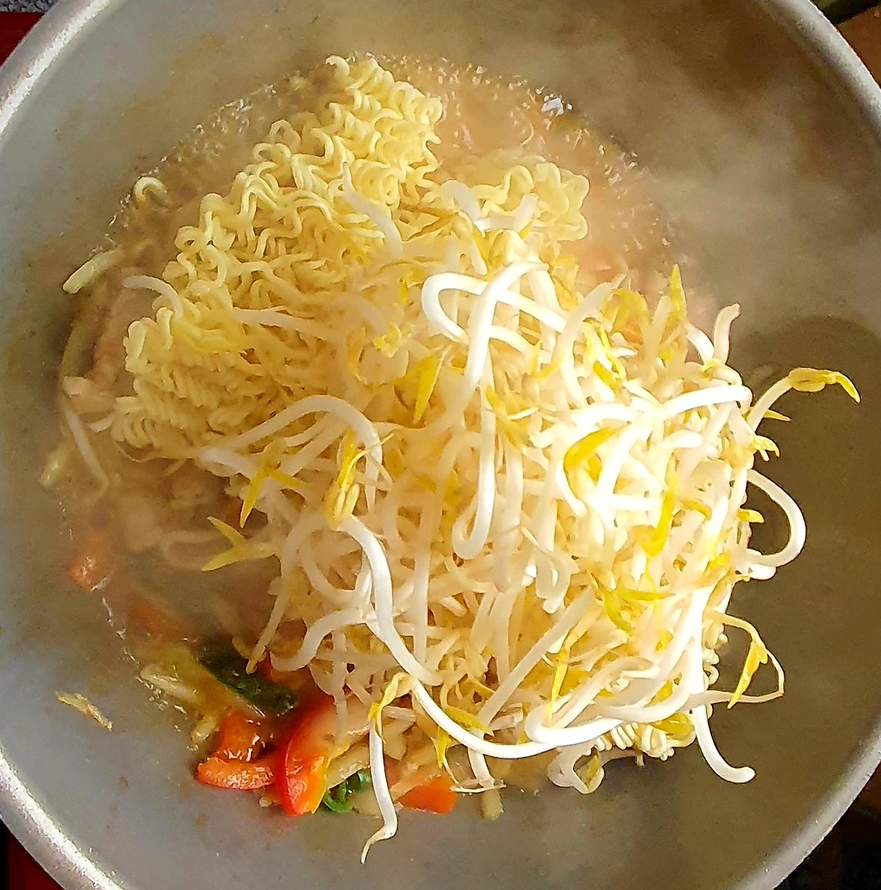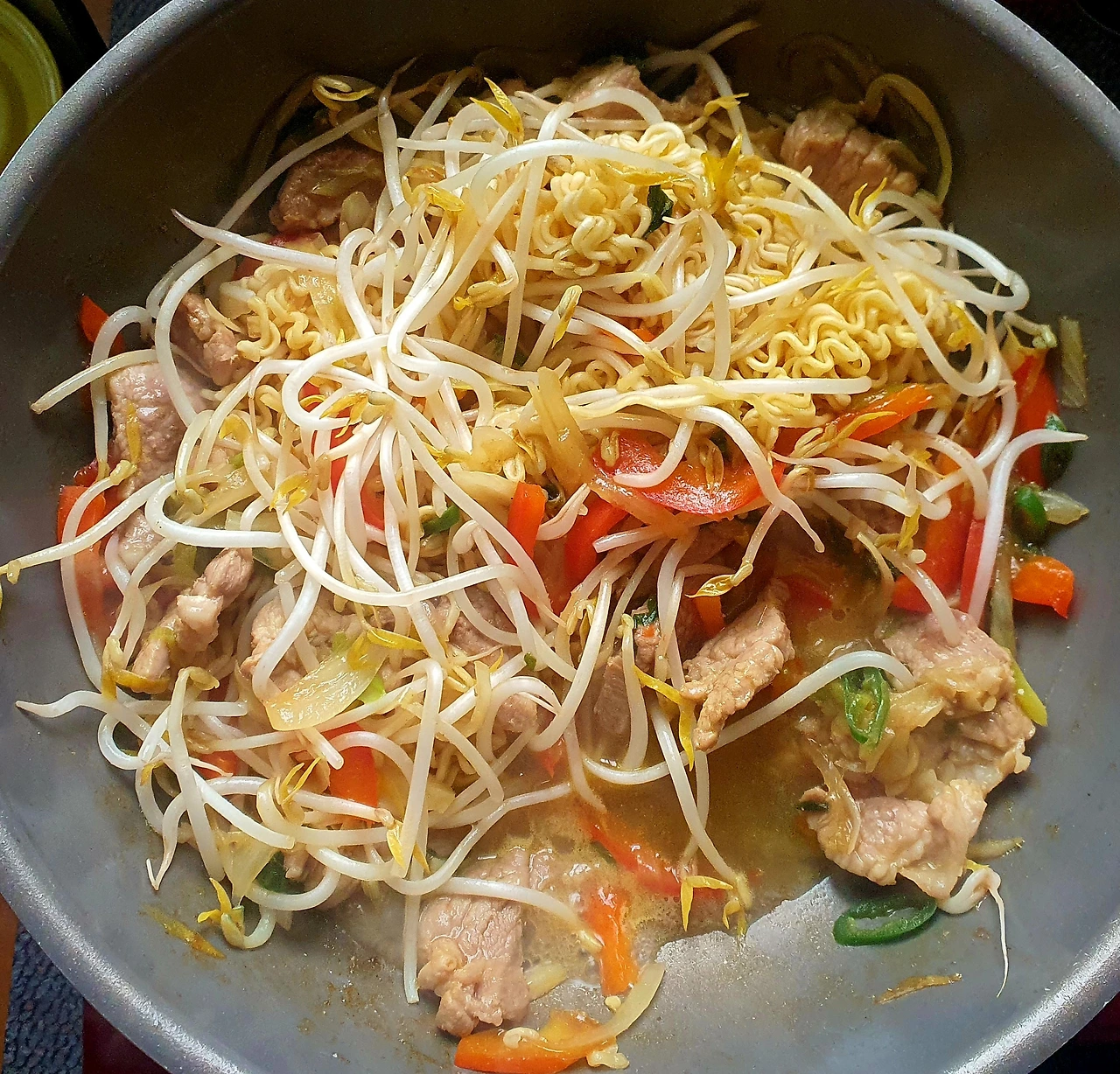 • 야채가 볶아지면 랜즈에 돌린 라면과 숙주를 넣고 휘리릭 마무리로 볶아 준다.