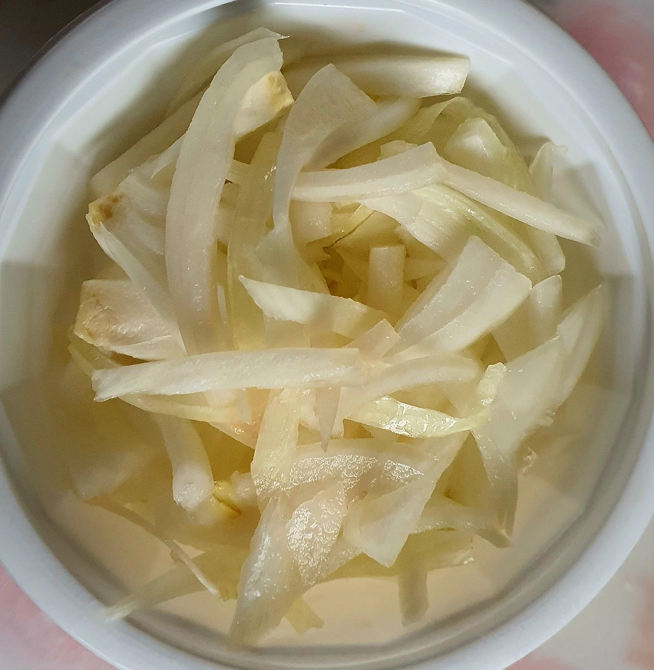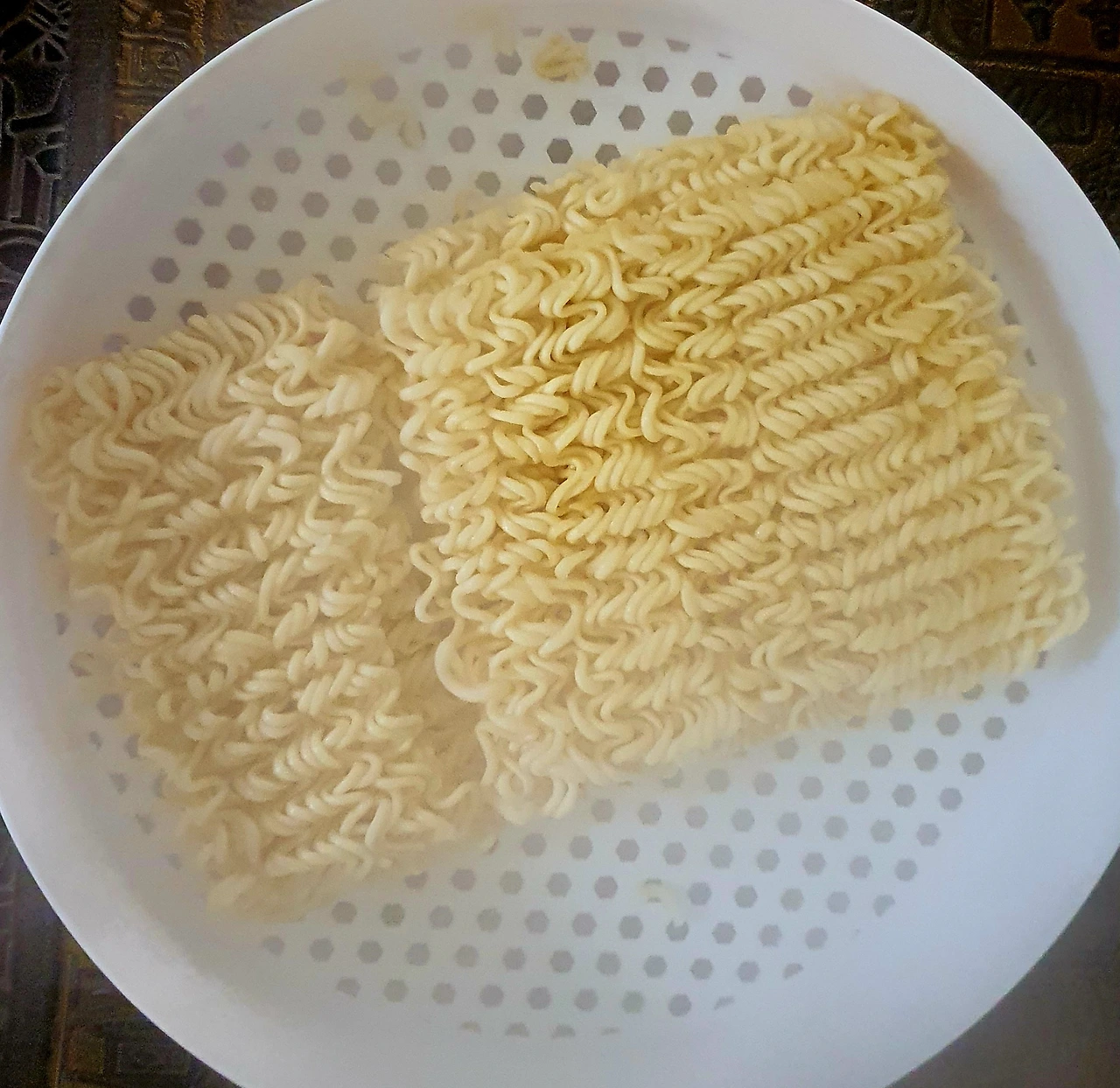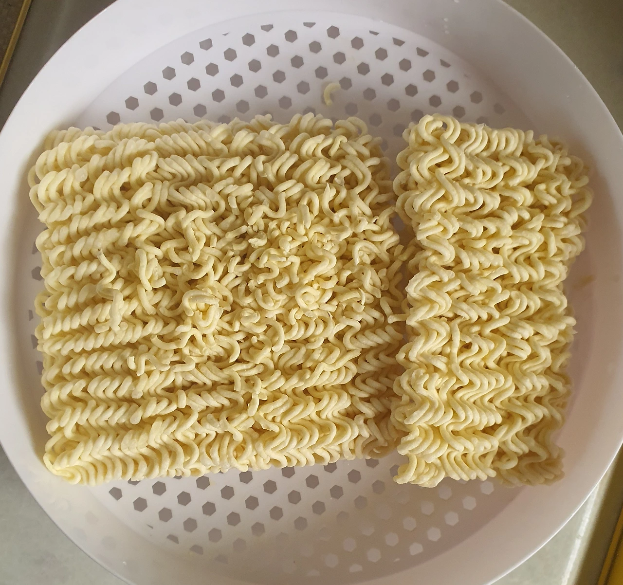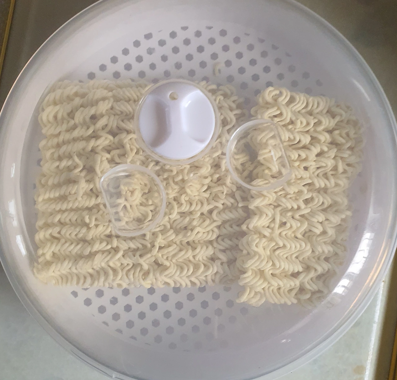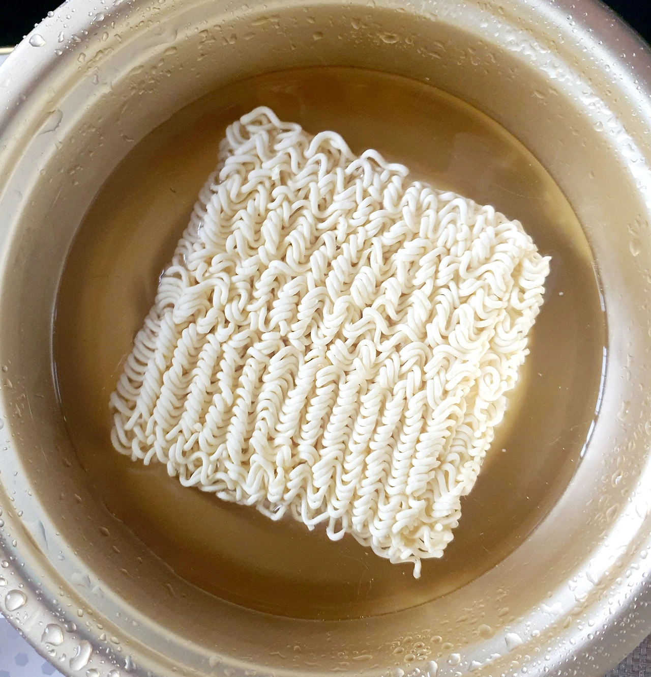 • 볼에 물을 담고 찬물에 라면을 1분 정도 담갔다가 빼서 전자랜즈용 찜기에 물 조금 넣고 라면을 올려 2분간 돌리고 다시 뒤집어서 2분을 쪄 준다.