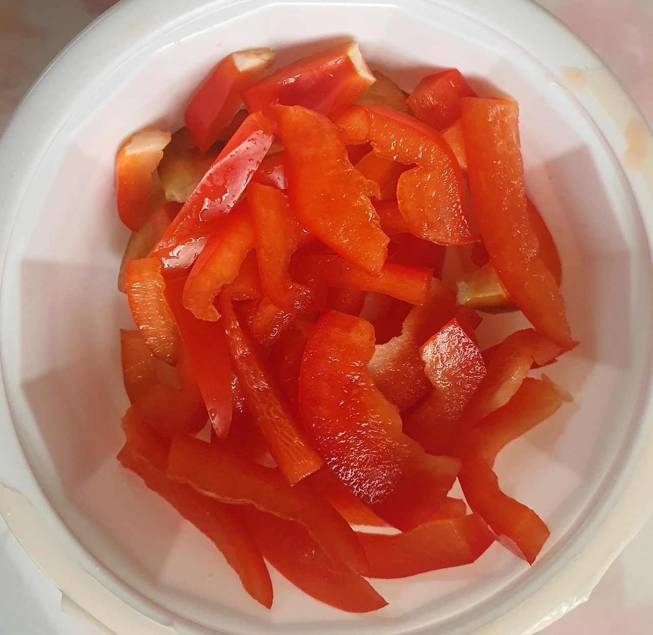• 돼지고기는 잘게 썰어 주고, 양파. 파프리카는 반으로 잘라 채를 썰어 준다.