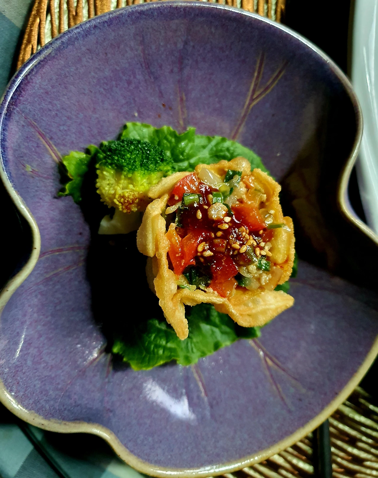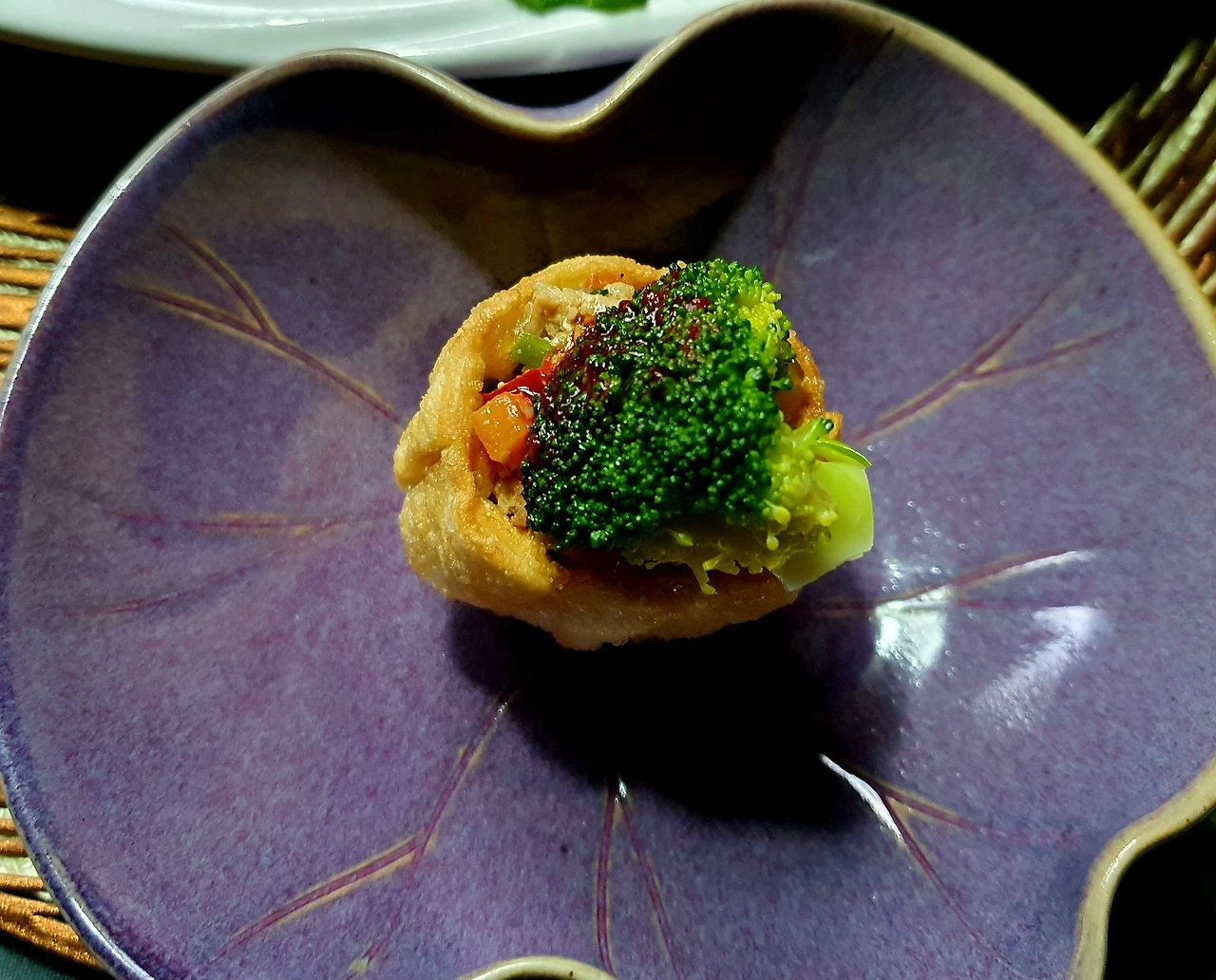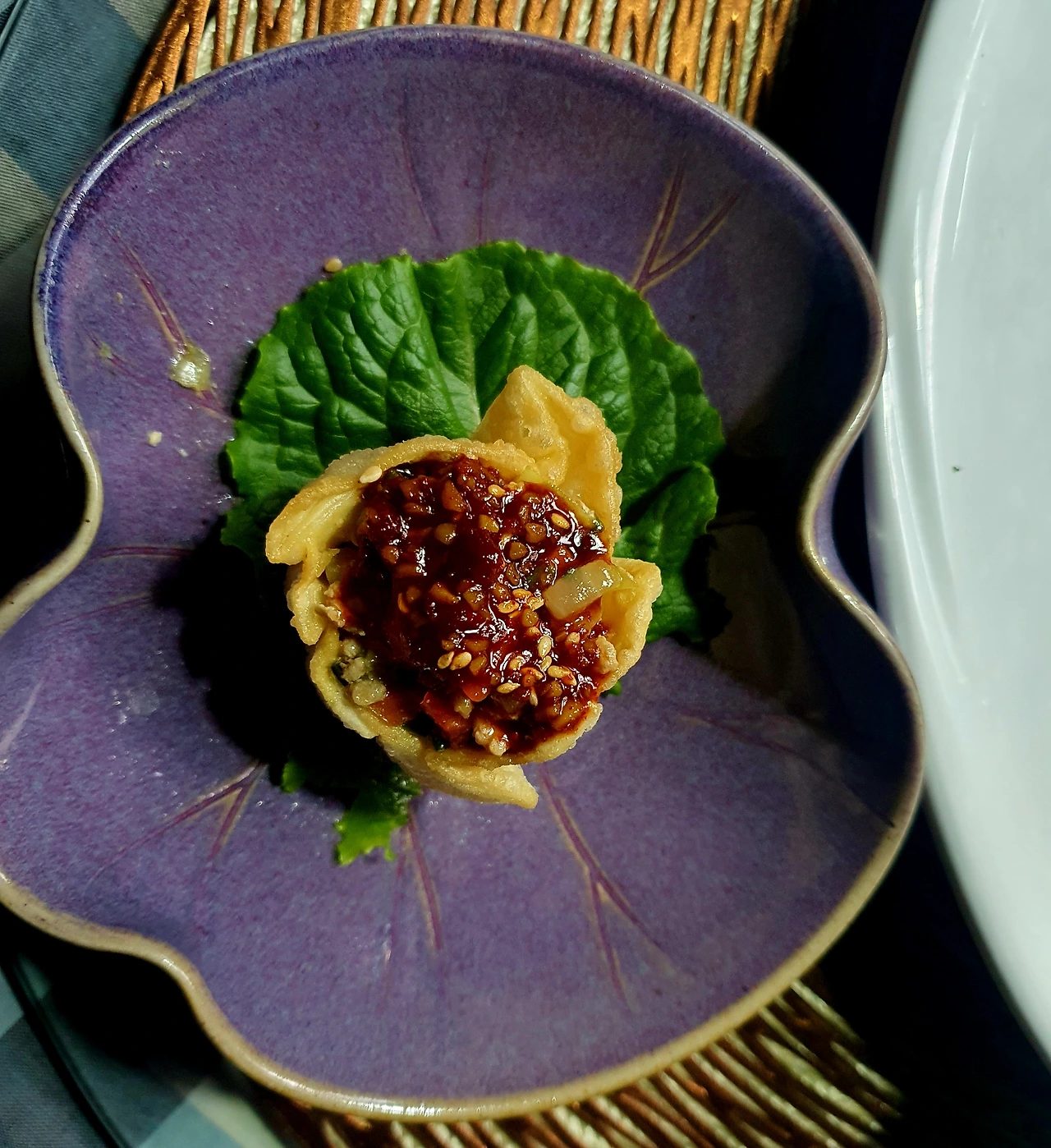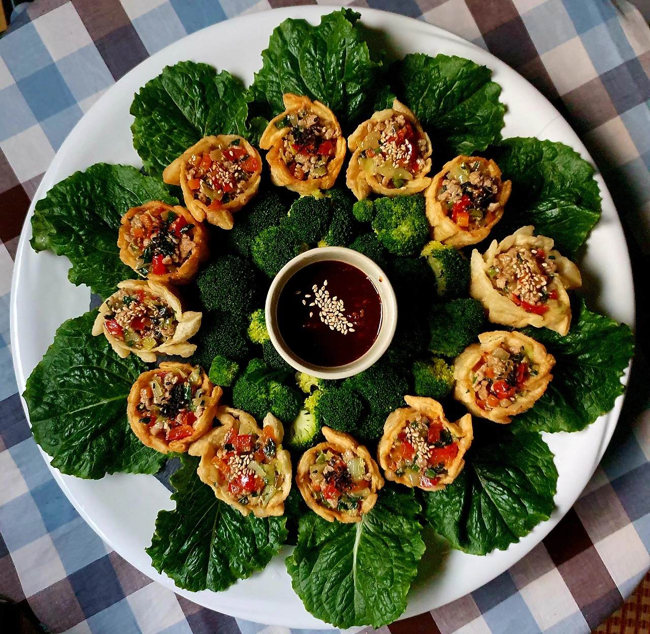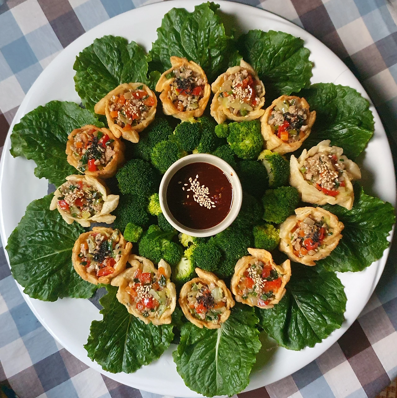 • 튀겨진 딤섬피에 미리 볶아두었던 소를 가득 담아서 완성 접시에 담아주면 요리헌터식 딤섬 완성.