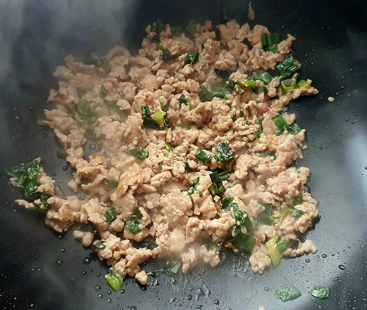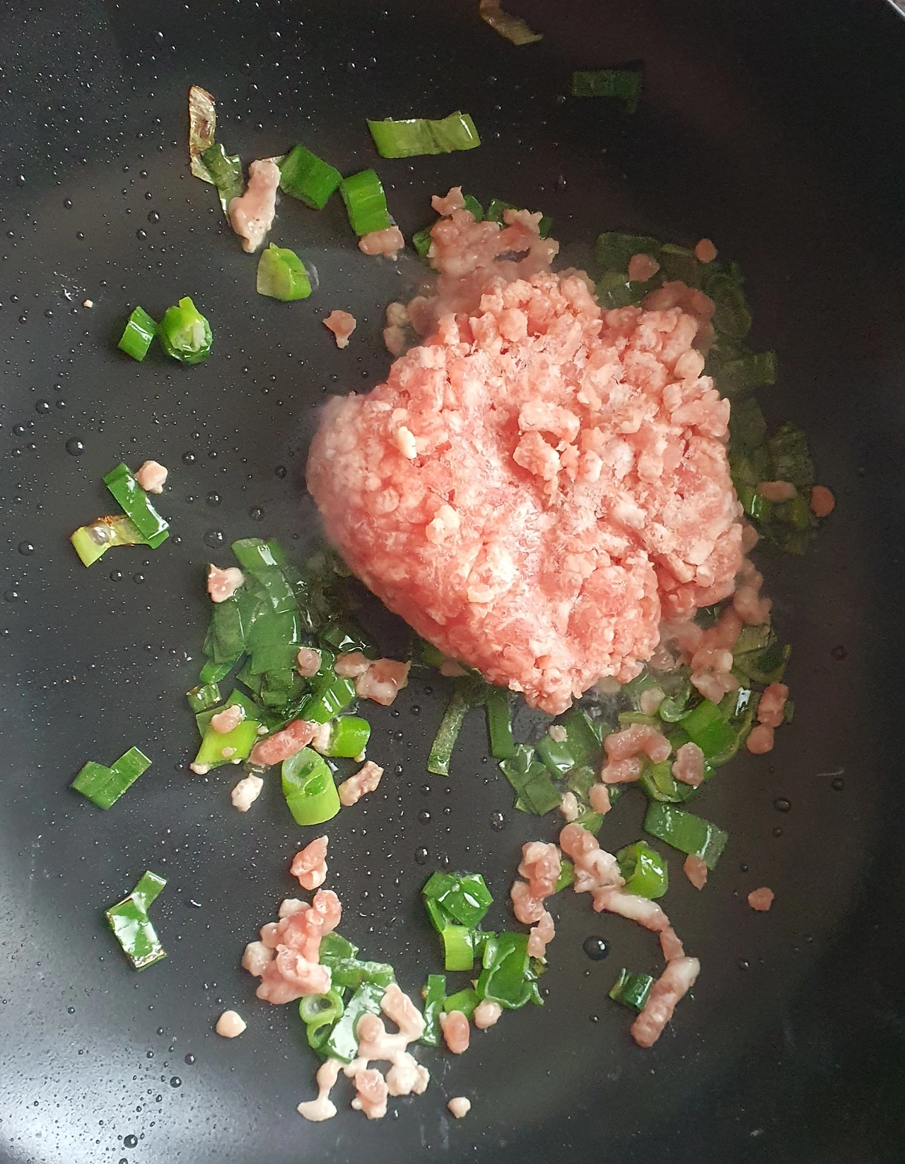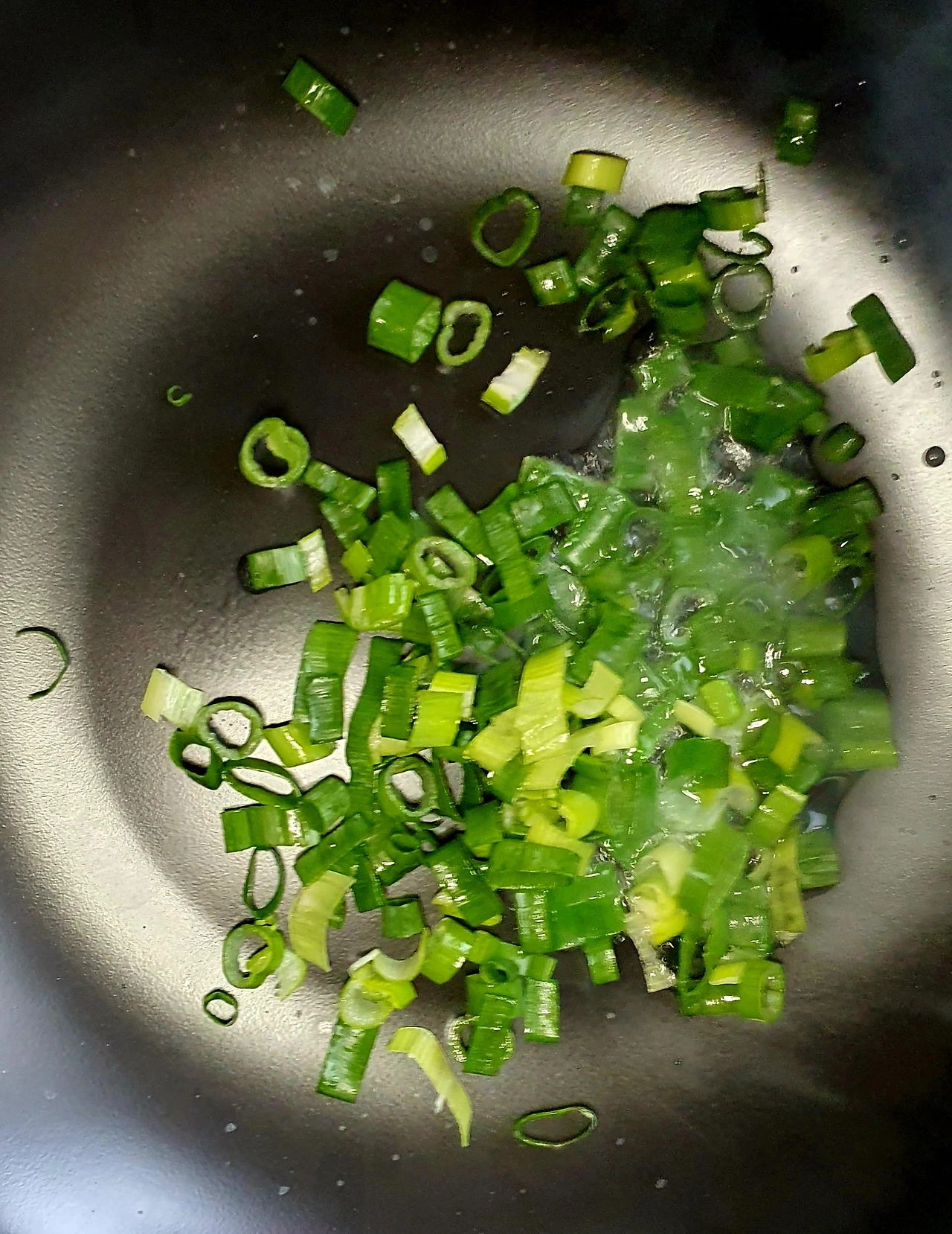• 웍에 기름을 두르고 대파를 넣고 파기름을 낸다.