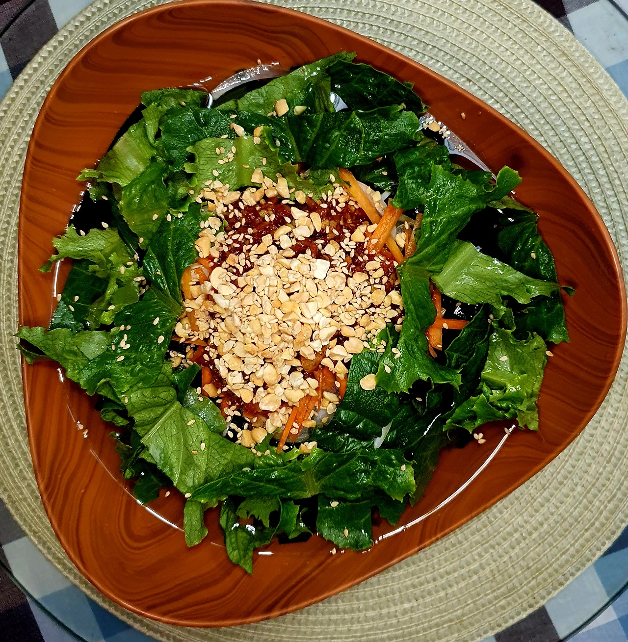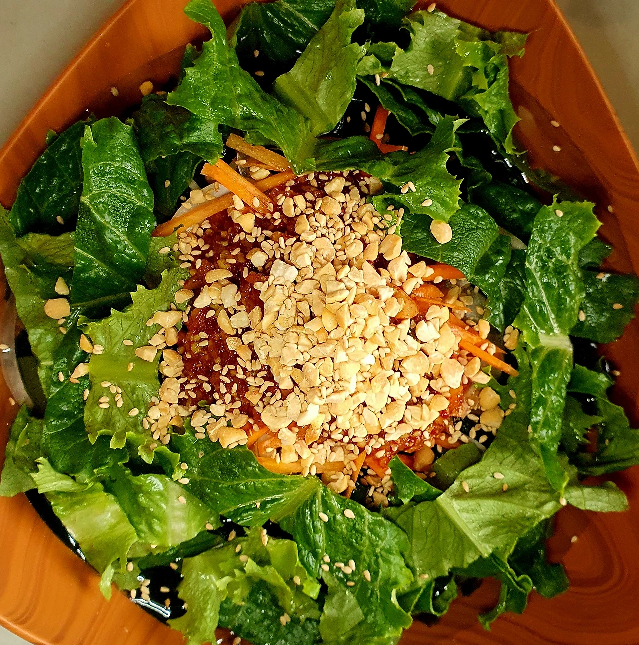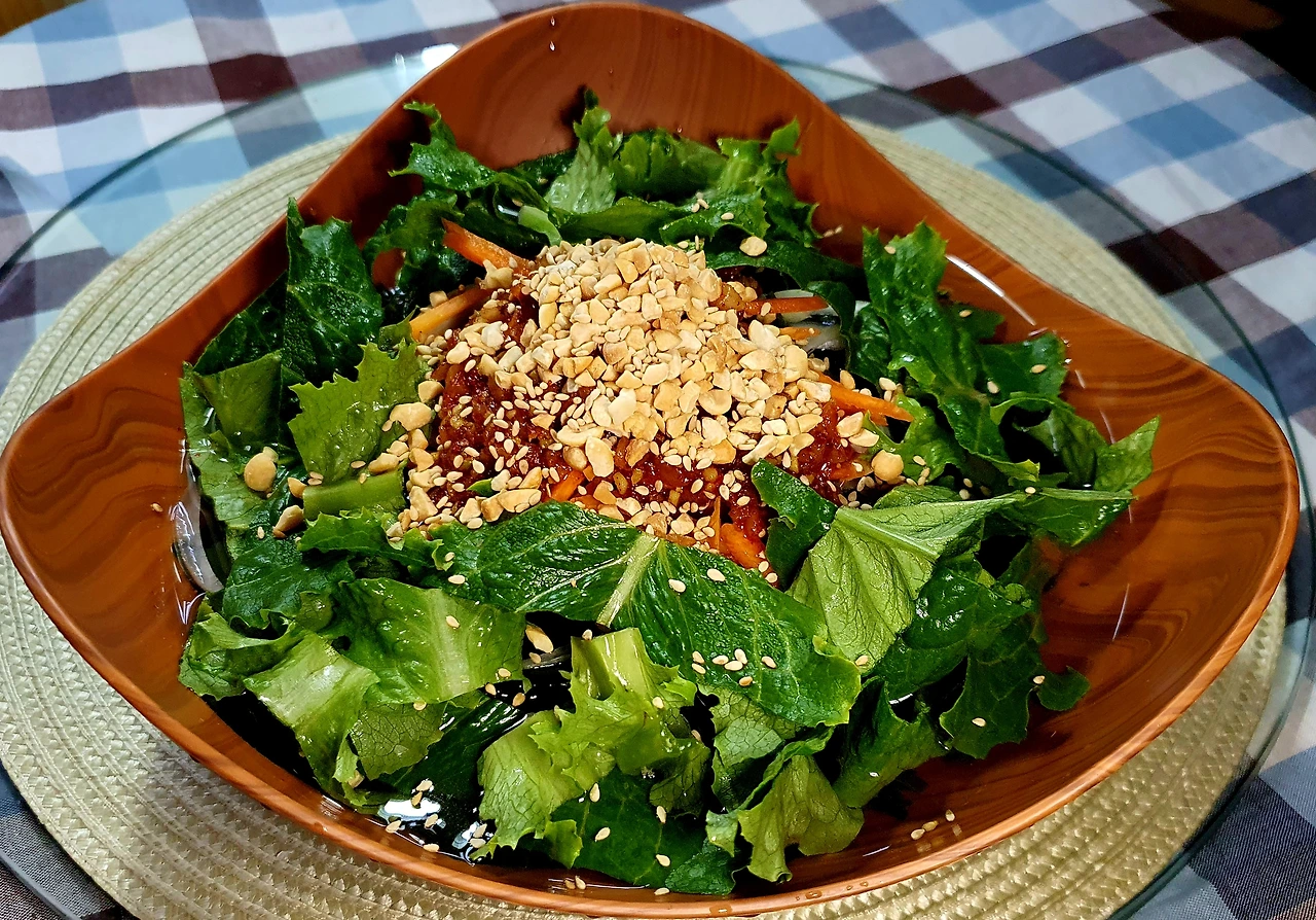 • 마지막으로 상추와 땅콩가루. 통깨를 뿌려주고, 참기름까지 올리면 완성.