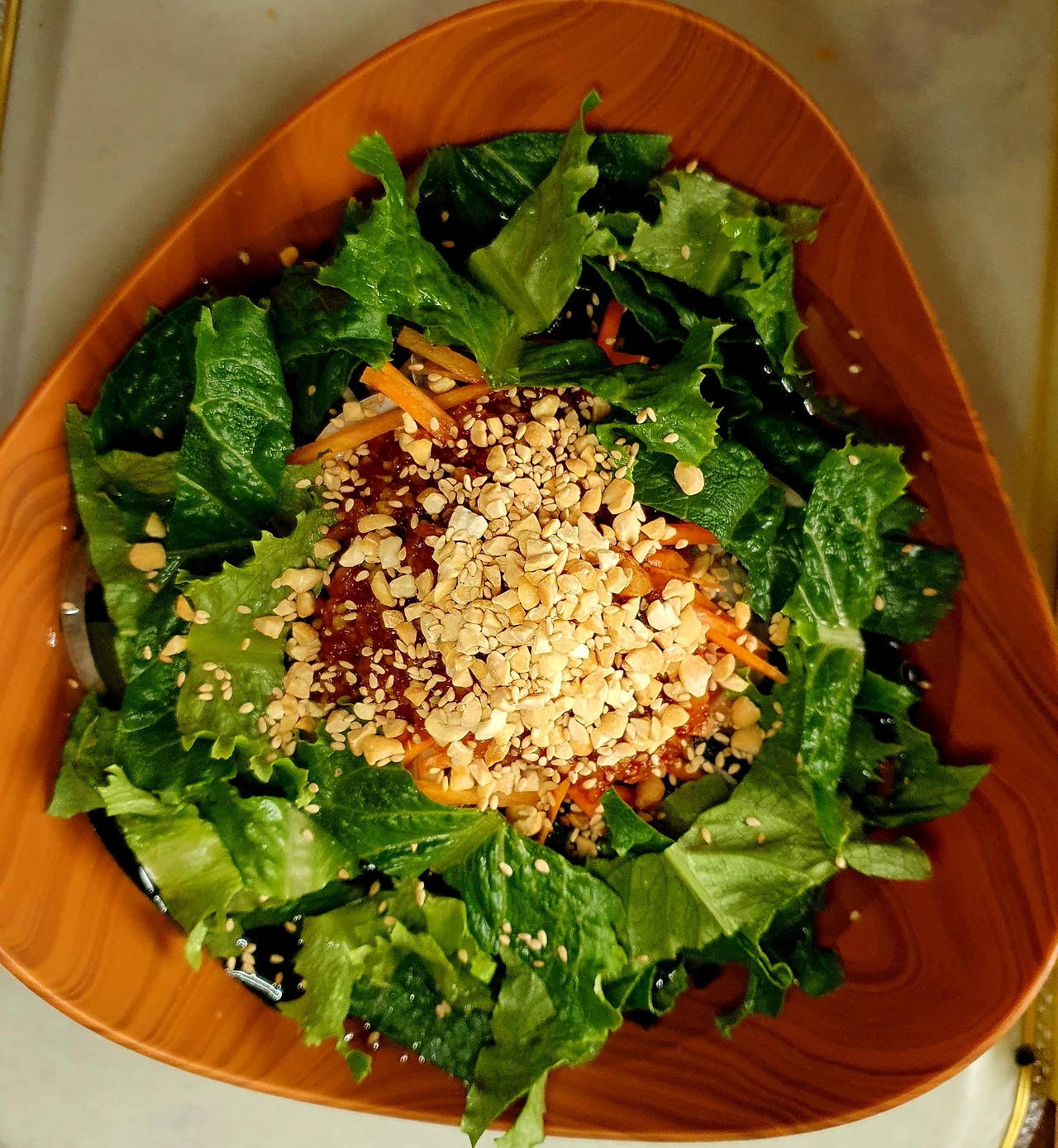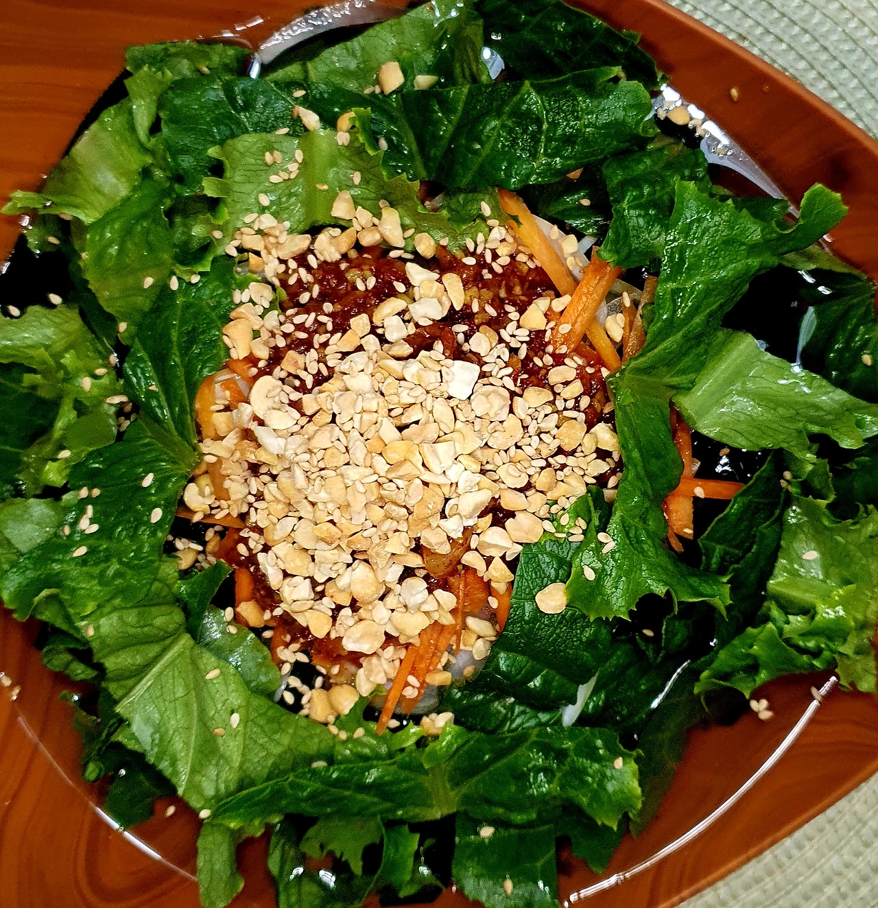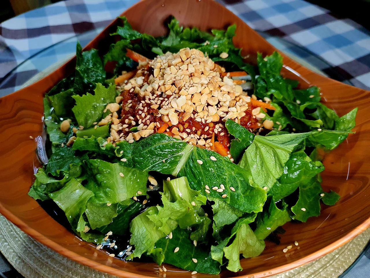 • 마지막으로 상추와 땅콩가루. 통깨를 뿌려주고, 참기름까지 올리면 완성.
