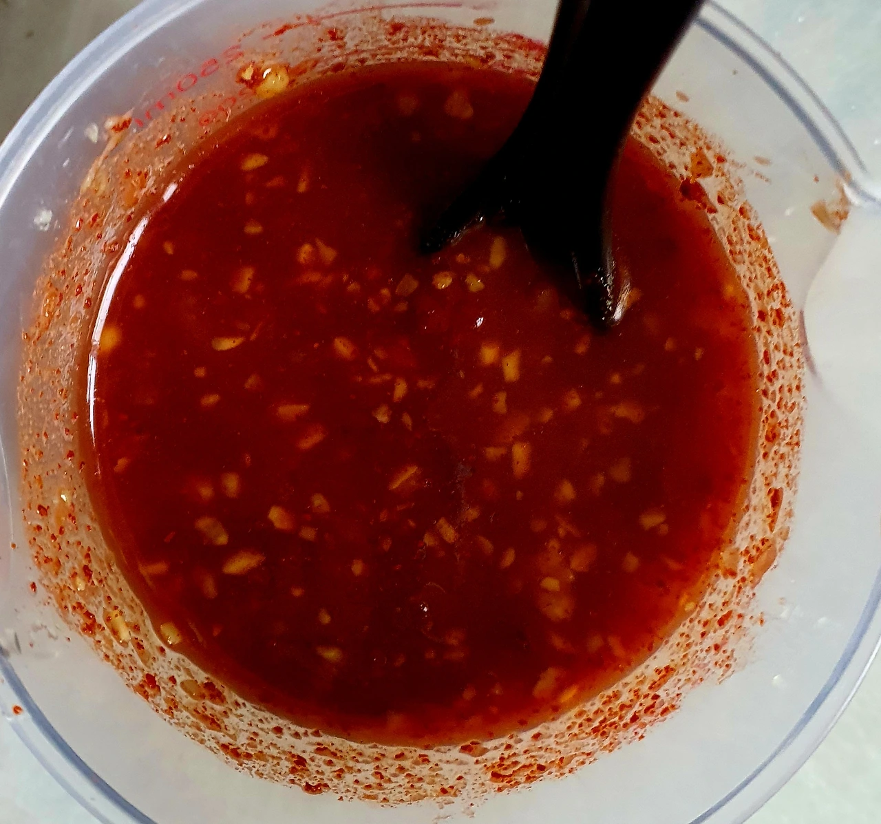 ■ 양념 : 참치액 1큰술. 진다시 2큰술. 간 마늘 1큰술. 고춧가루 1½큰술. 고추냉이 1큰술. 감식초 3큰술. 원당 1큰술. 매실청 2큰술. 생강청 1큰술. (간이 부족하면 시판 초고추장을 넣으면 2% 부족한 맛을 내줌)