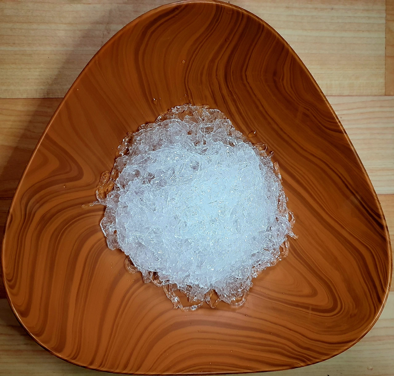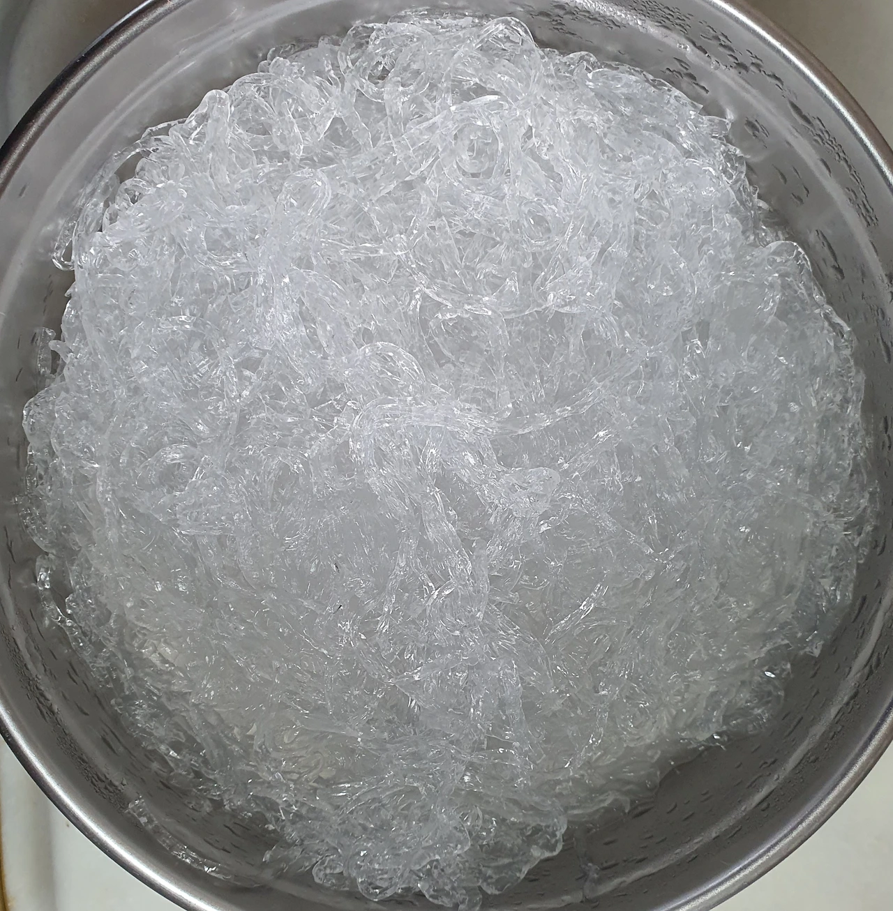 • 천사채는 베이킹소다로 당면화해서 물에 충분히 헹궈 두었던 것을 사용한다.