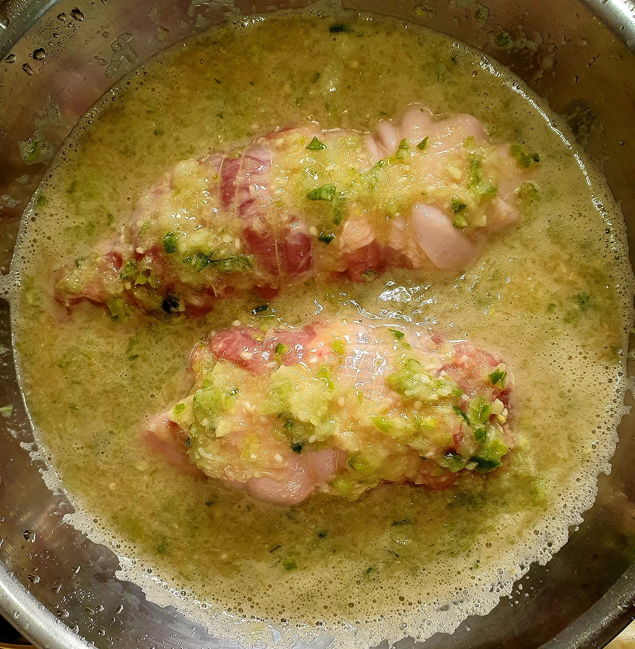 • 준비한 양념국물이 있는 양푼에 고기를 넣고 1시간 이상 숙성을 시킨다.