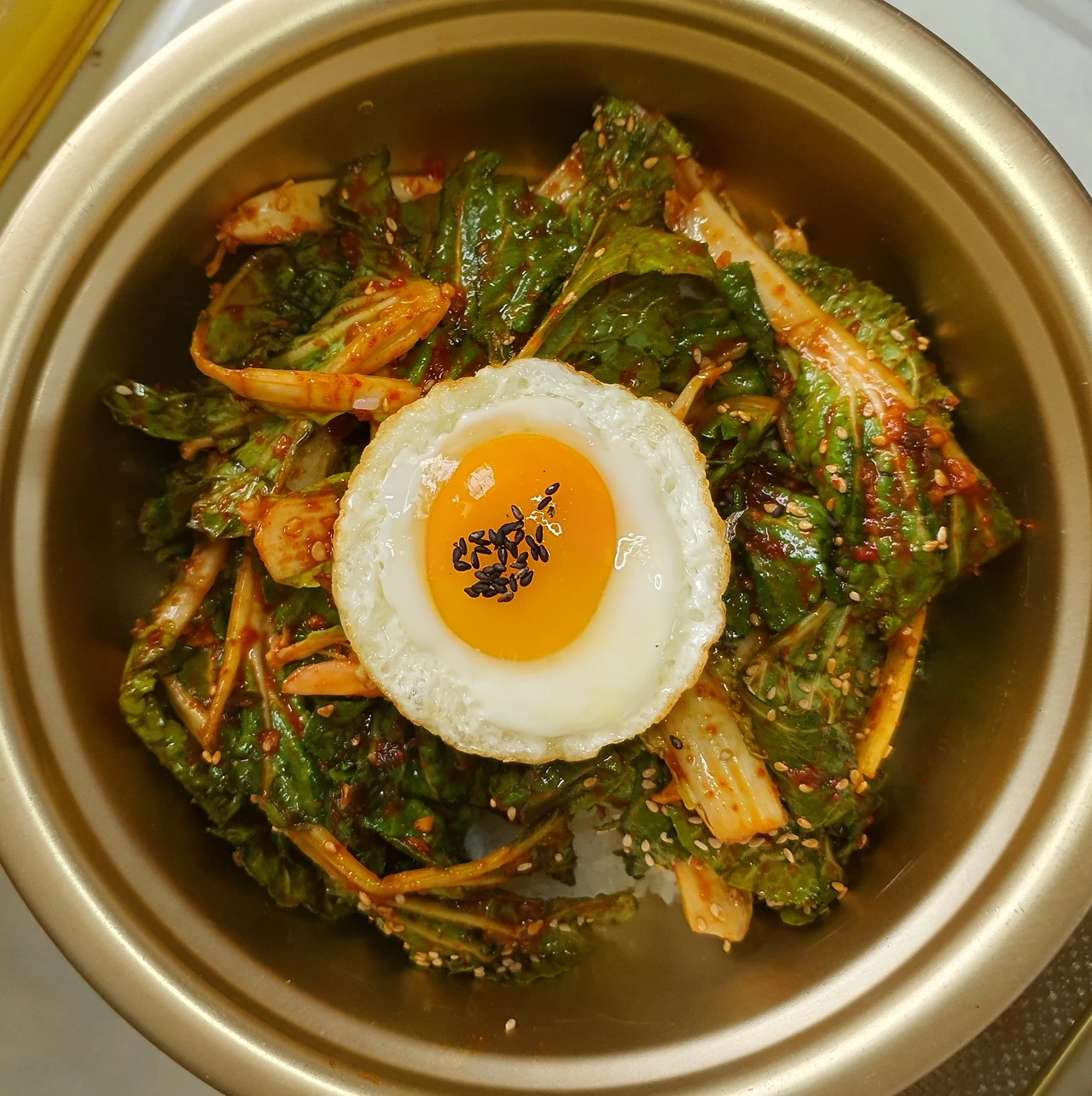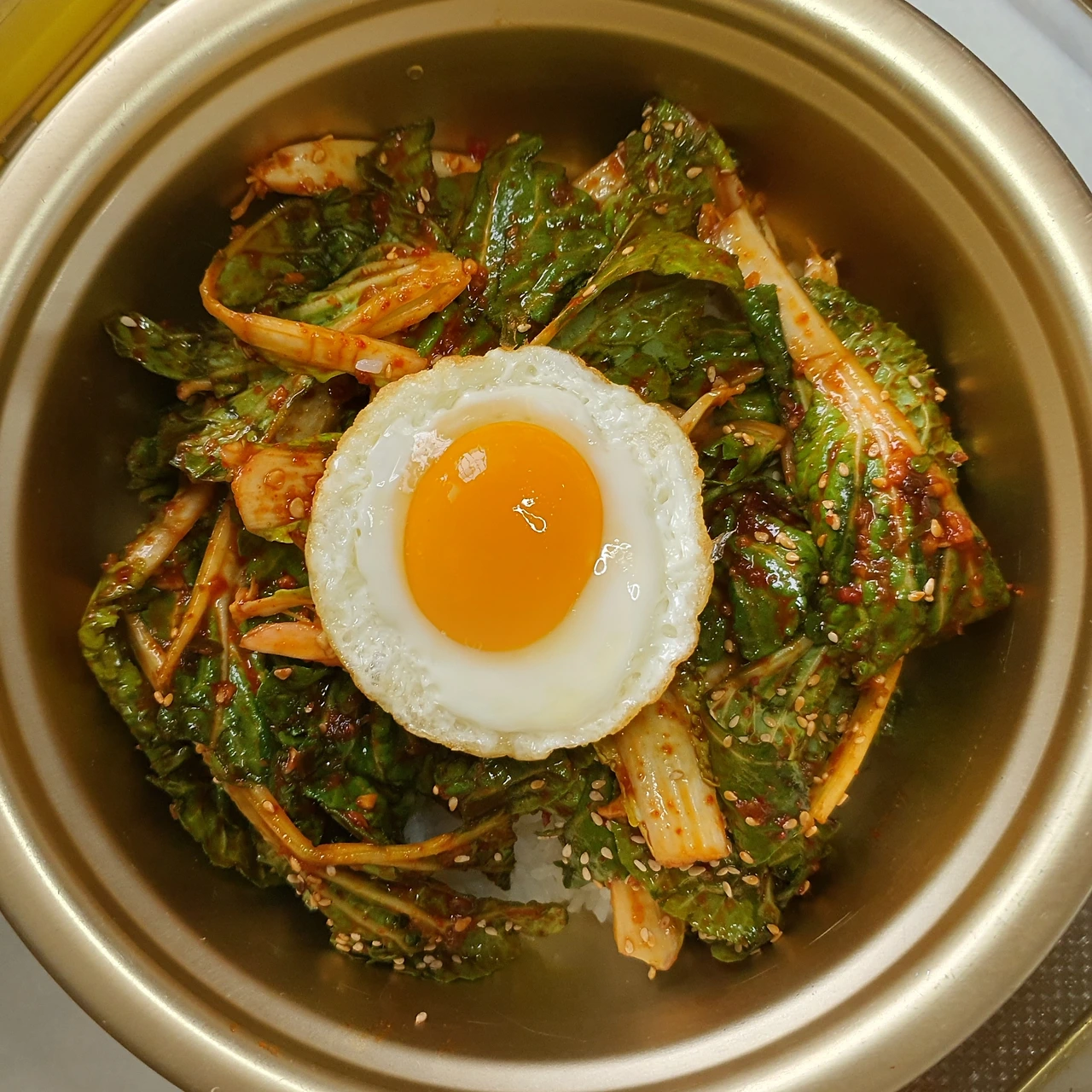 ■ 재료 : 봄동겉절이. 밥 1 공기. 달걀부침 1개