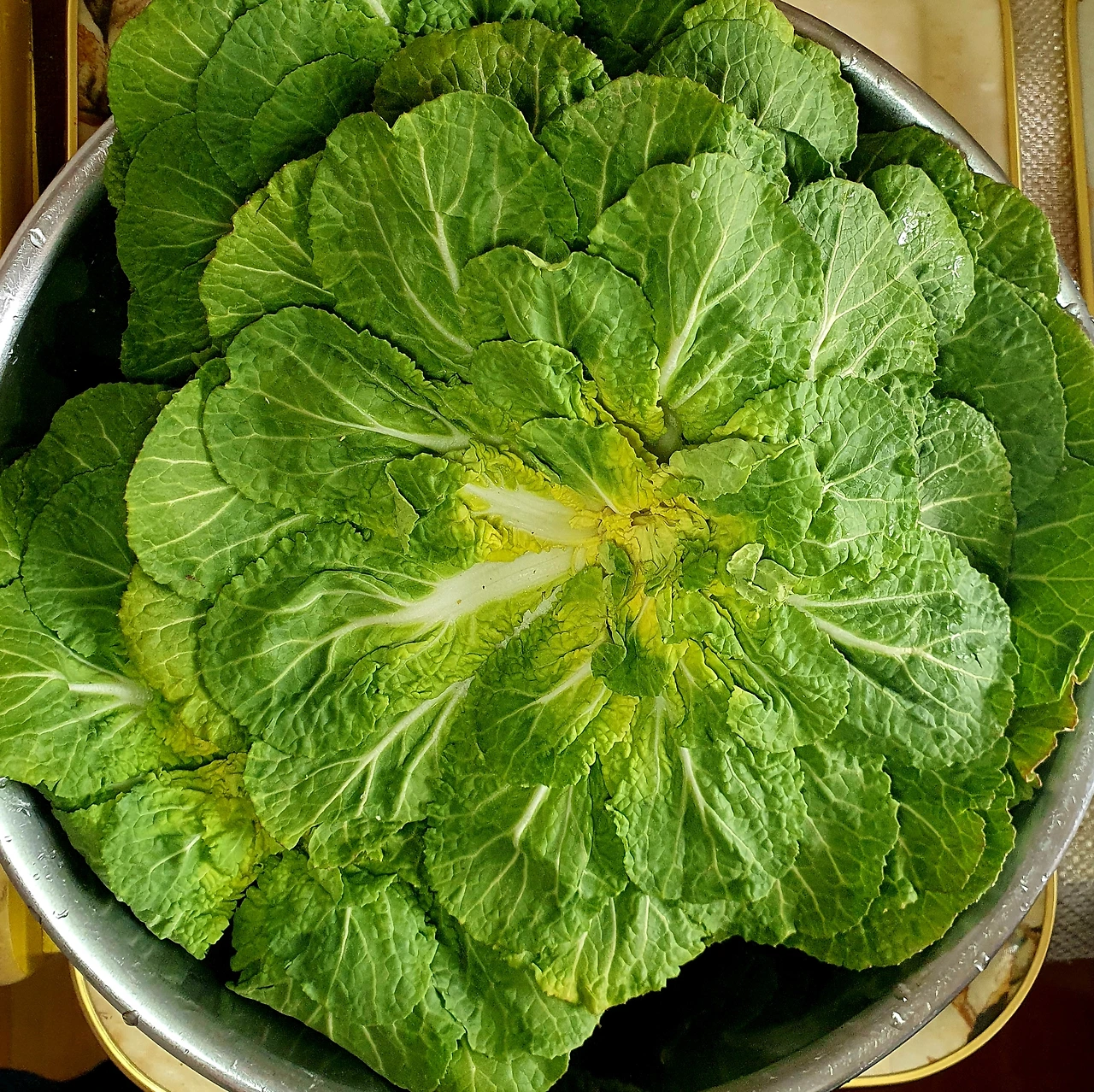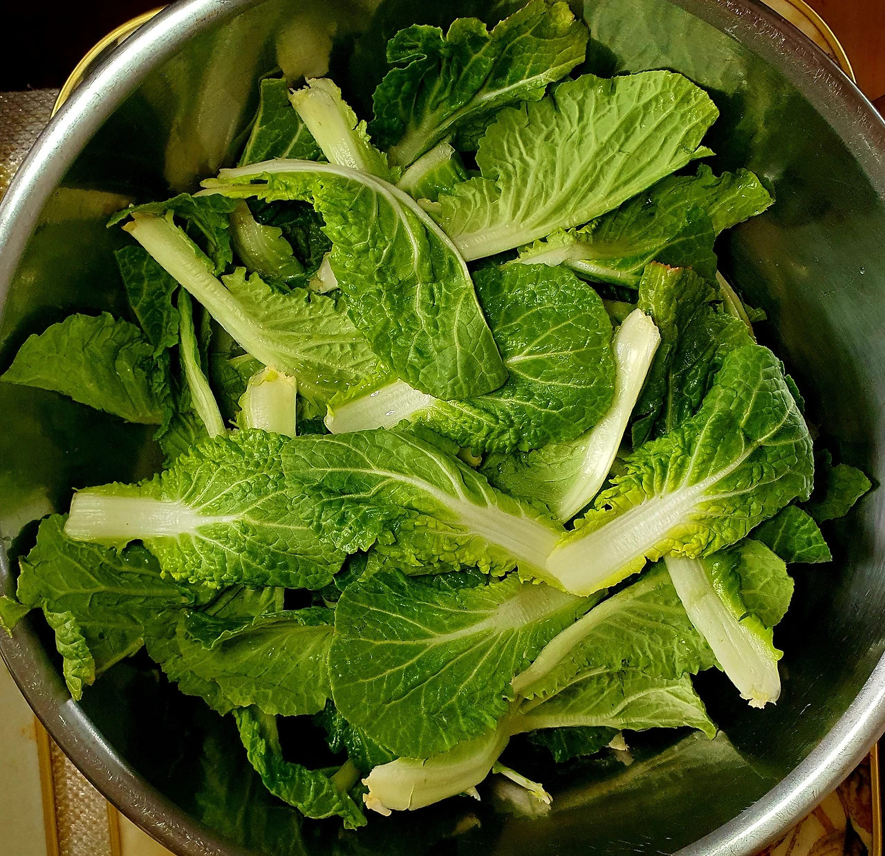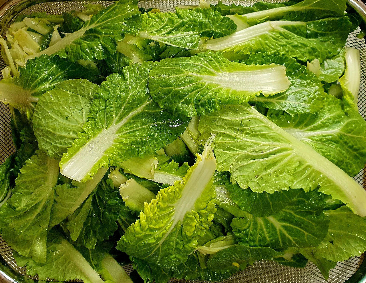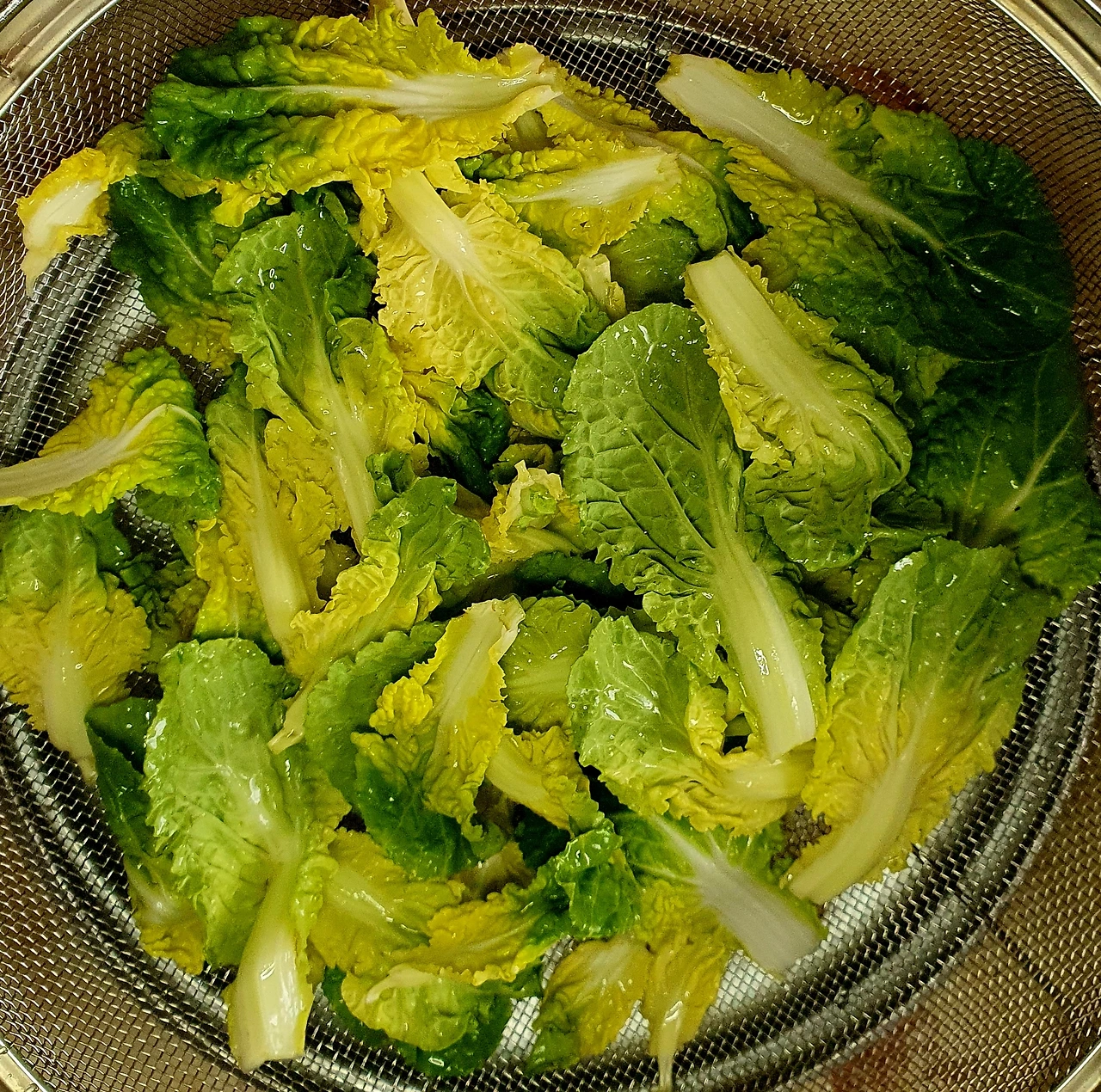 • 물기를 제거한 봄동은 작은 잎은 그대로 두고 큰 잎은 먹기 좋은 크기로 잘라준다. 어린 부분은 별도로 두었다가 샐러드를 만들어 먹을 거임.