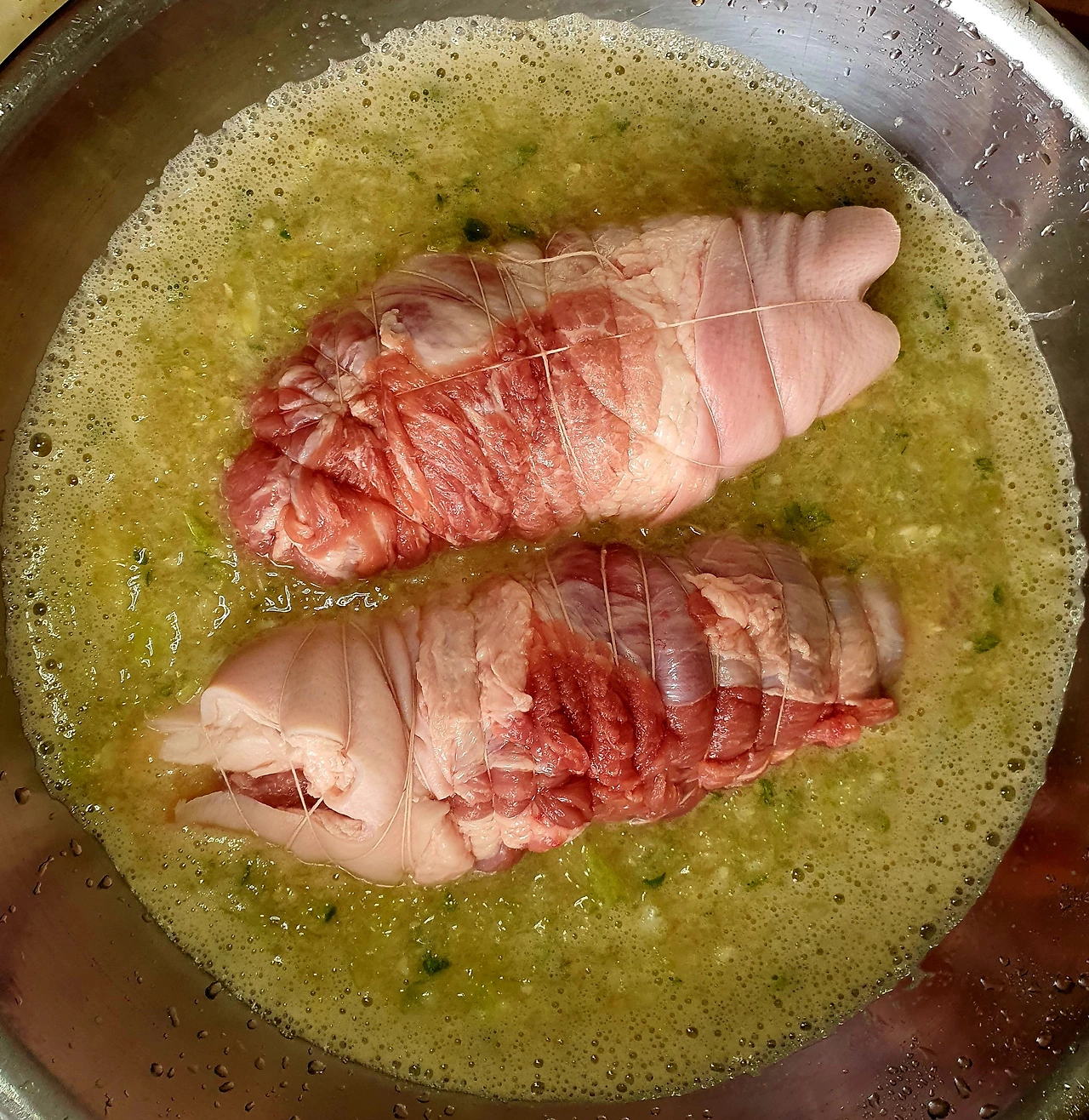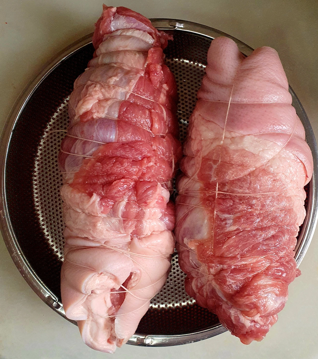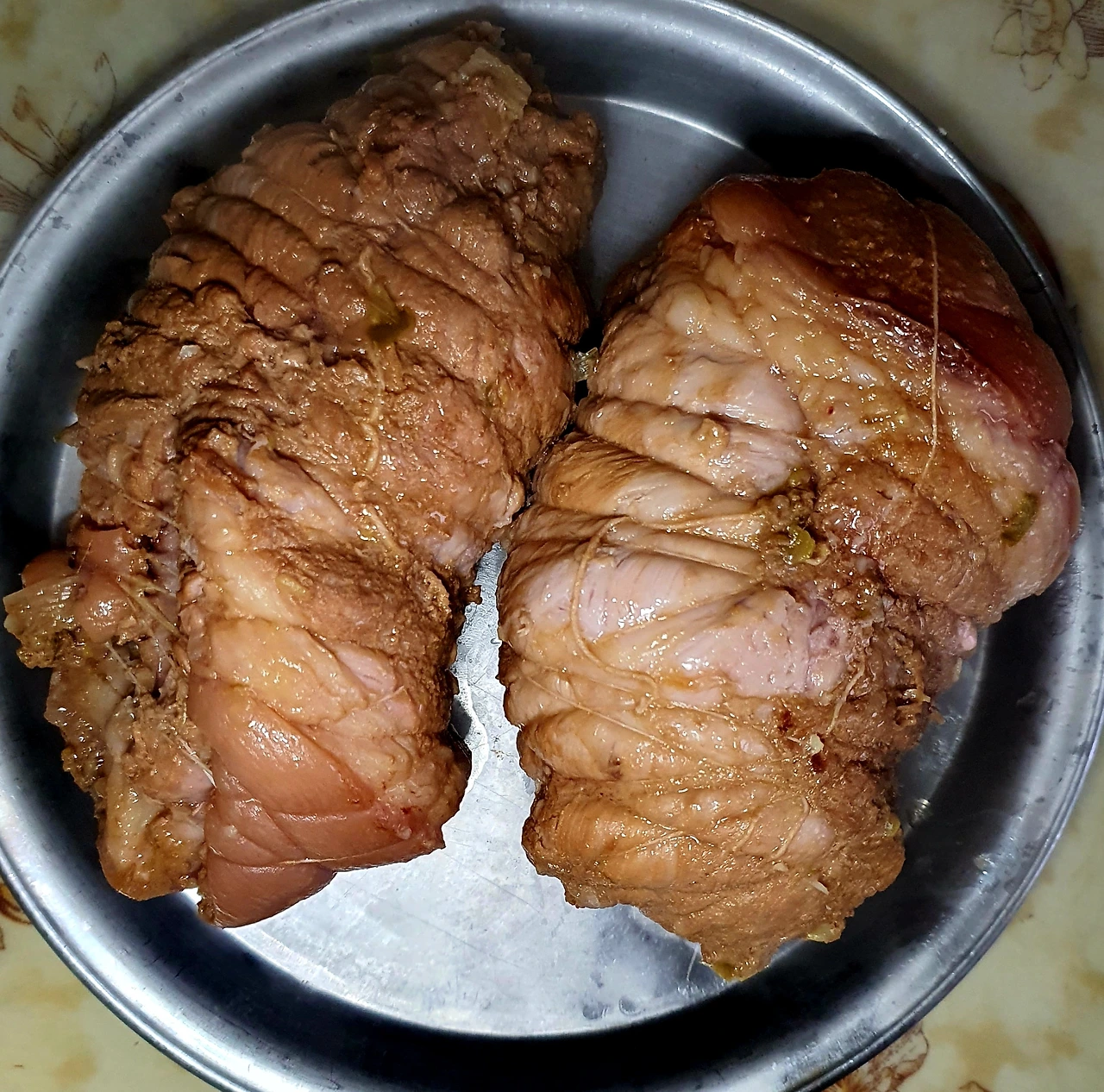 • 앞다리살을 통으로 준비해서 광목실로 꽁꽁 묶어서 모양을 잡아준다.
