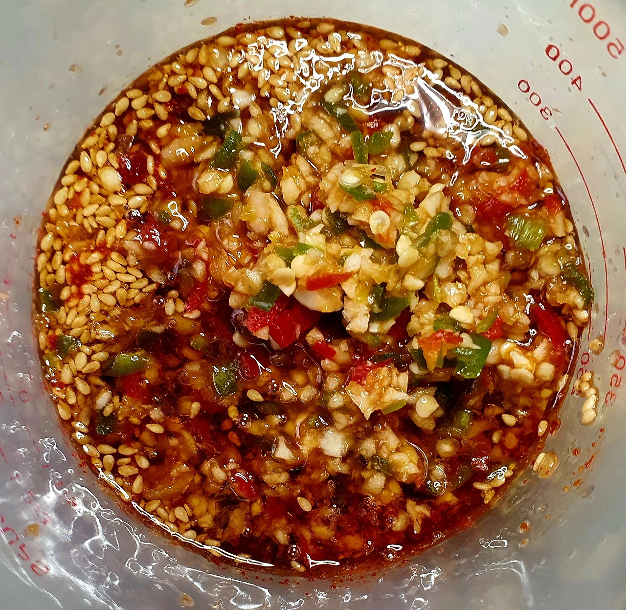 • 다진 청양고추와 마늘. 고춧가루. 참치액. 맛술. 까나리약젓. 매실청. 원당. 감식초. 참기름. 통깨를 섞어 양념장을 만들어 둔다.