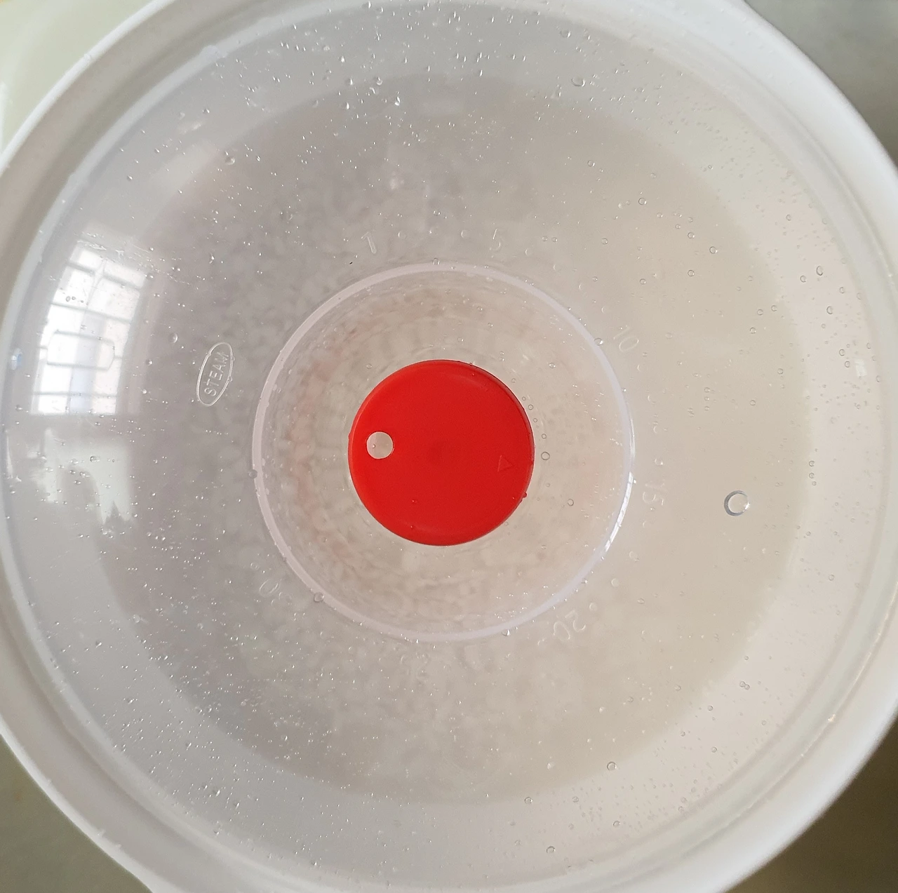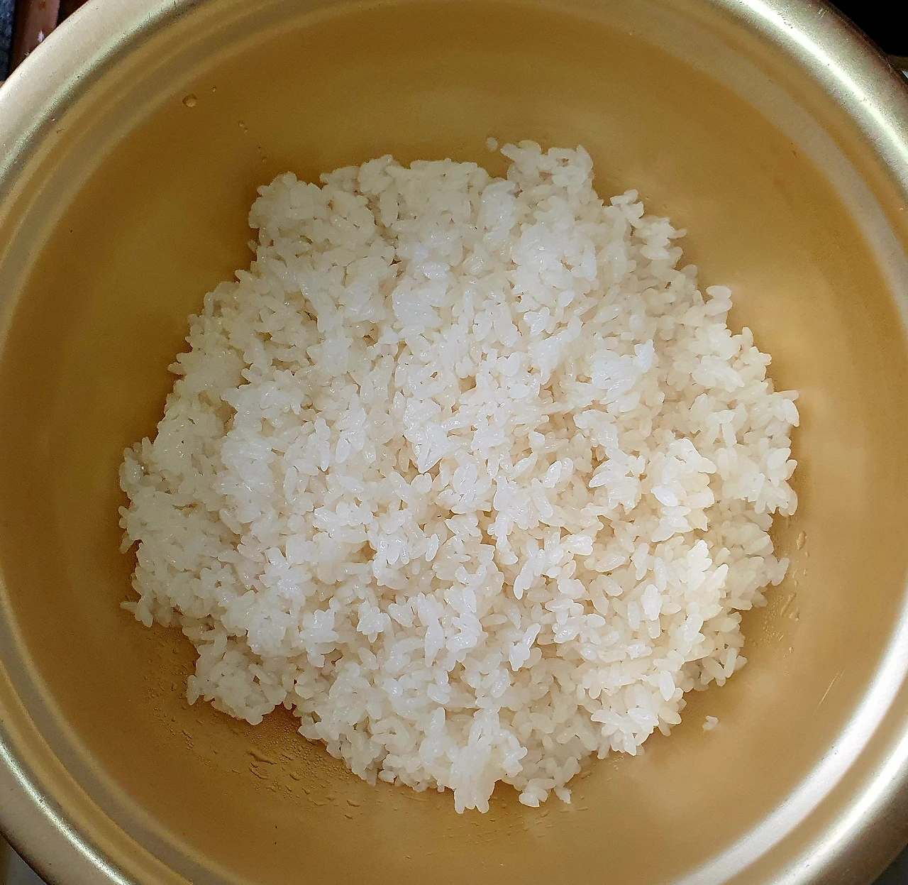 • 랜즈에서 용기를 꺼내 수저로 반쯤 된 밥을 휘저어 앞뒤로 다시 섞어준다.