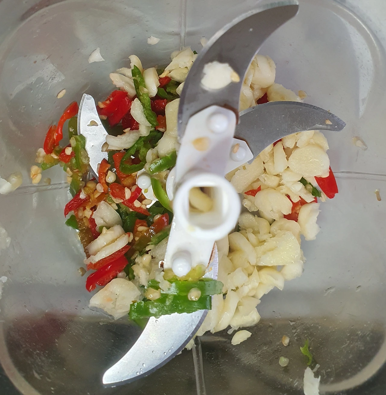 • 청양고추와 마늘은 커터기로 다져서 준비한다.