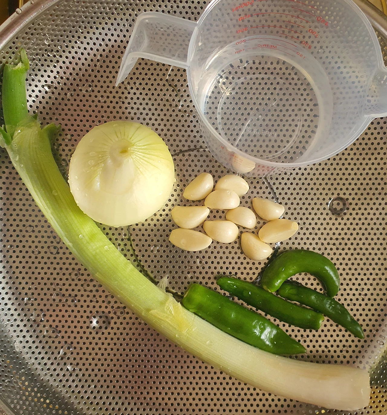• 대파. 마늘. 양파는 물과 함께 커터기에 곱게 갈아서 준비한다.