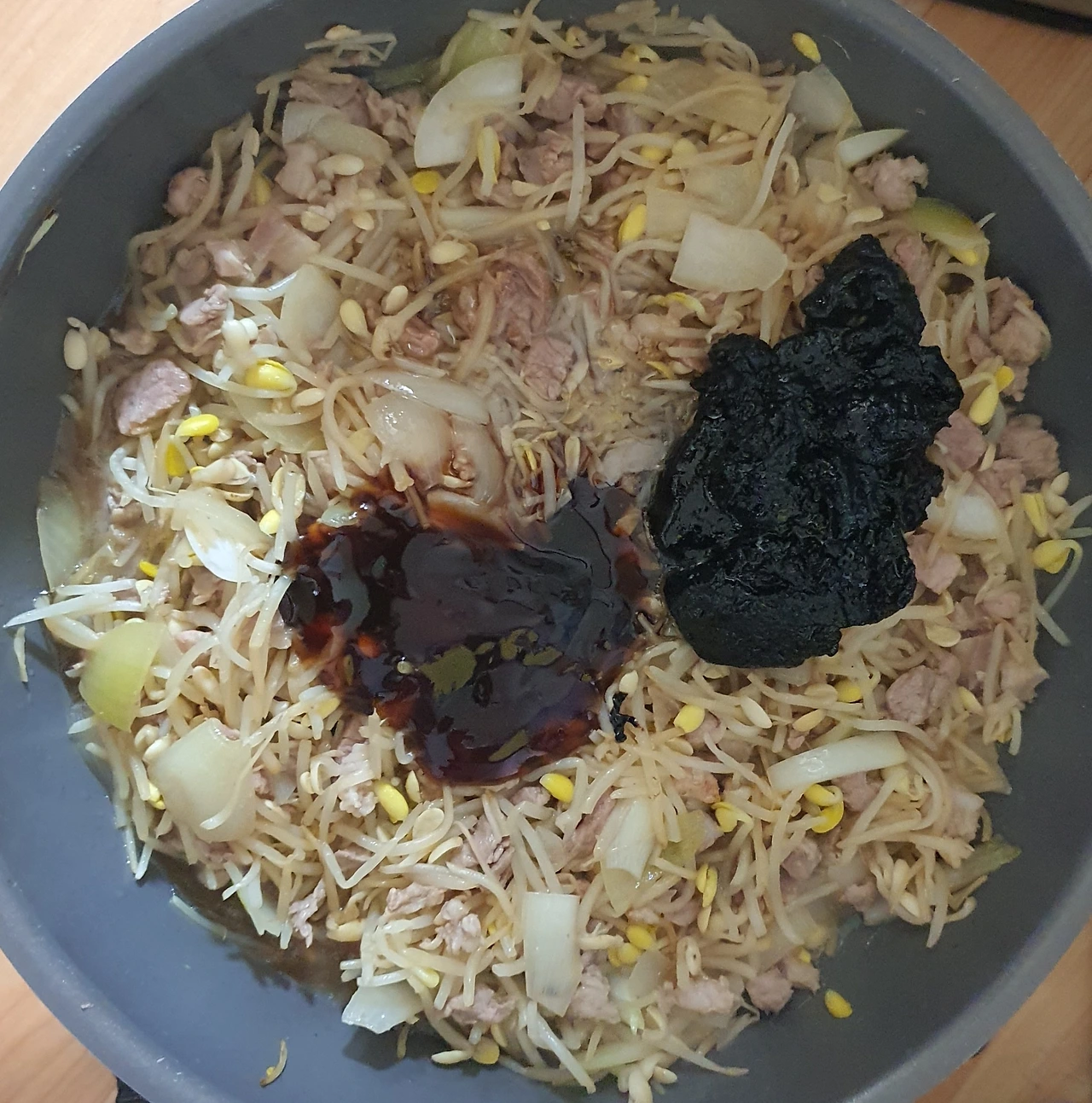 영양이 풍부해 중년 건강에 도움이되는 콩나물을 넣고 짜장을 만들어 먹었어요. 맛은 말할것도 없고요...