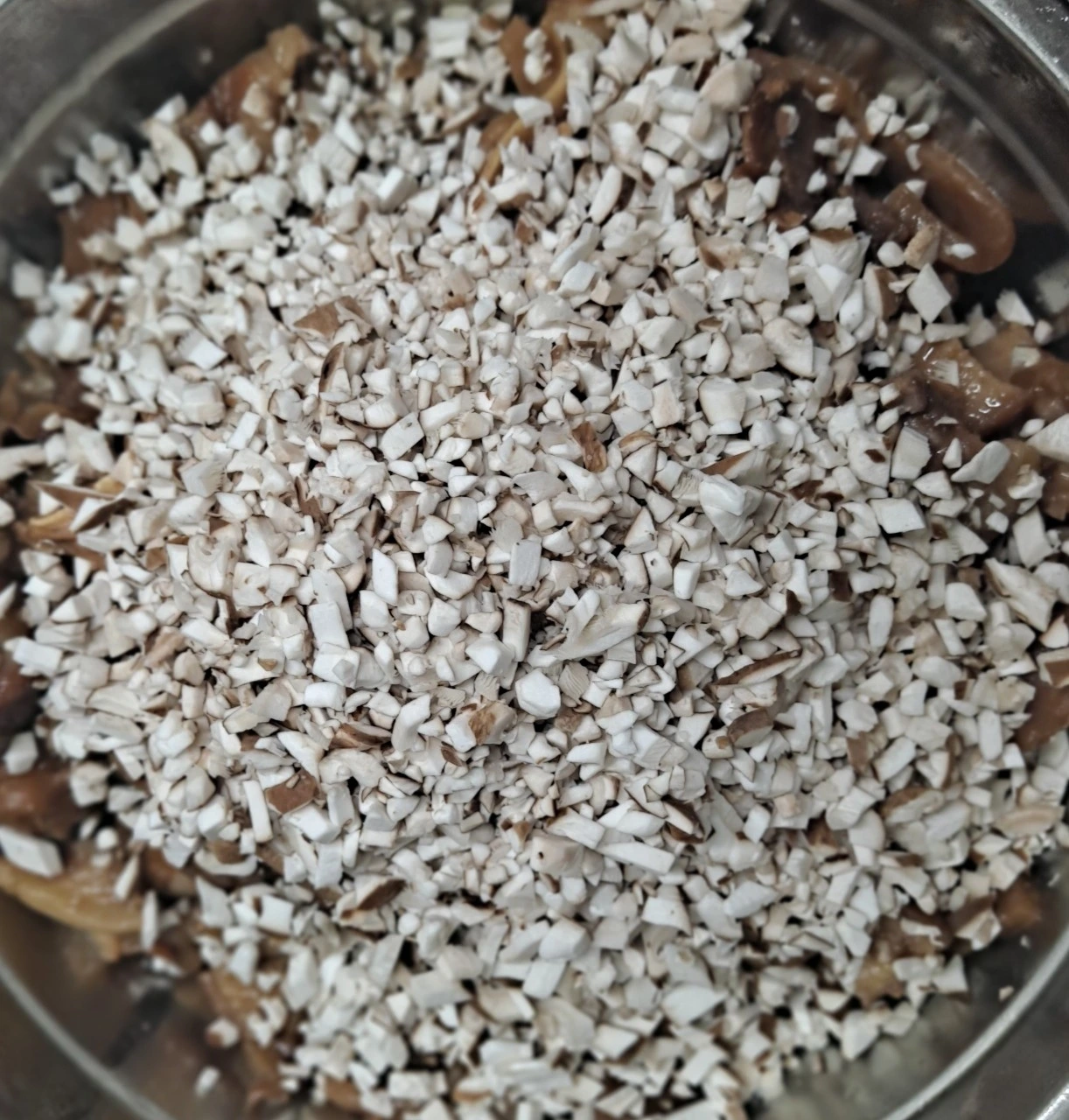 • 표고버섯은 잘게 다져서 준비하고, 마늘장아찌는 편 썰어 준비한다.