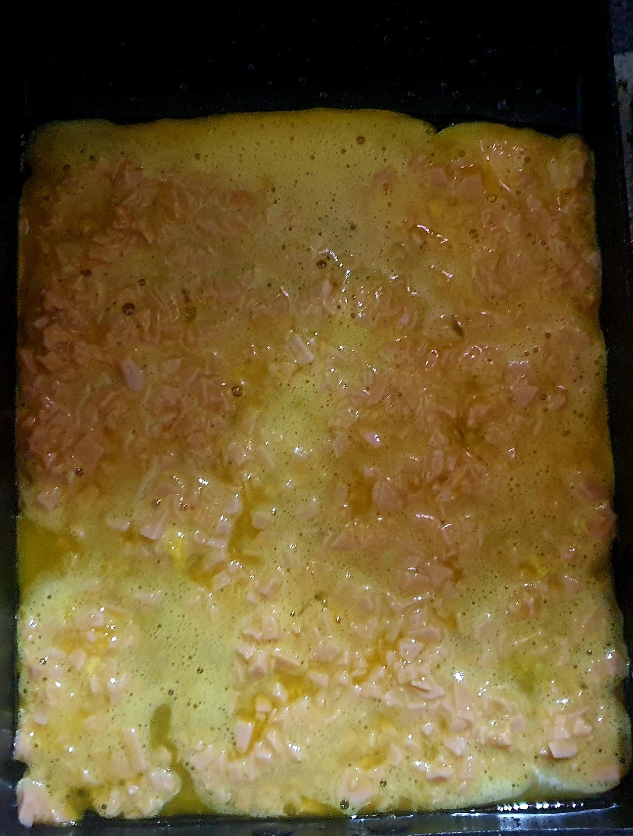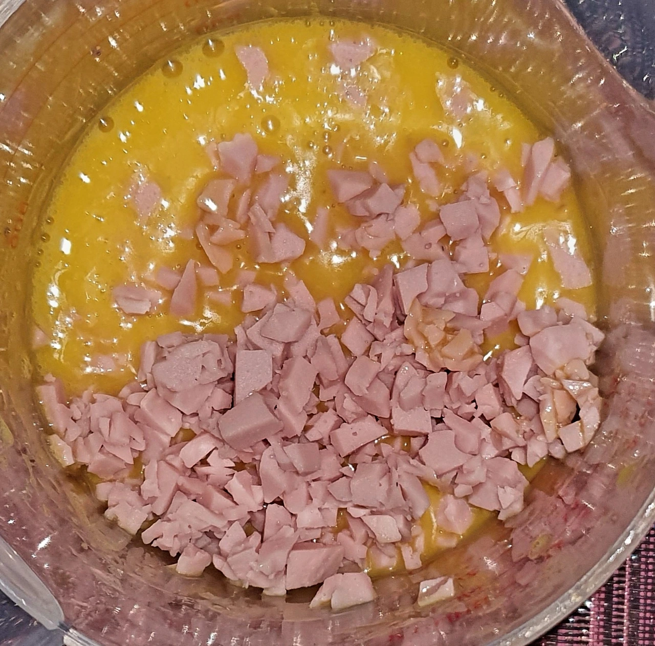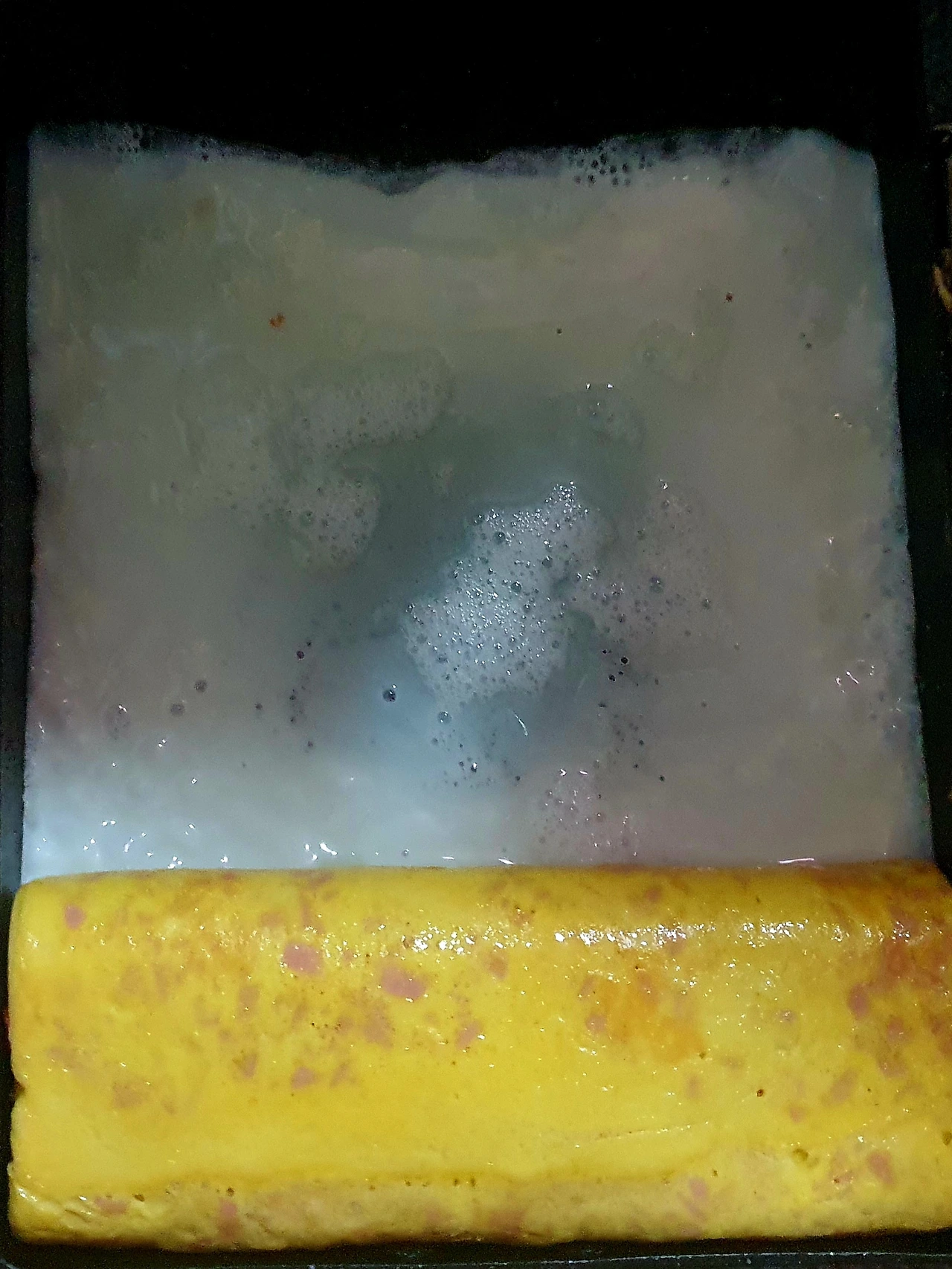 ▪︎소시지와 청양고추위에 풀어둔 흰자위를 부어준다.