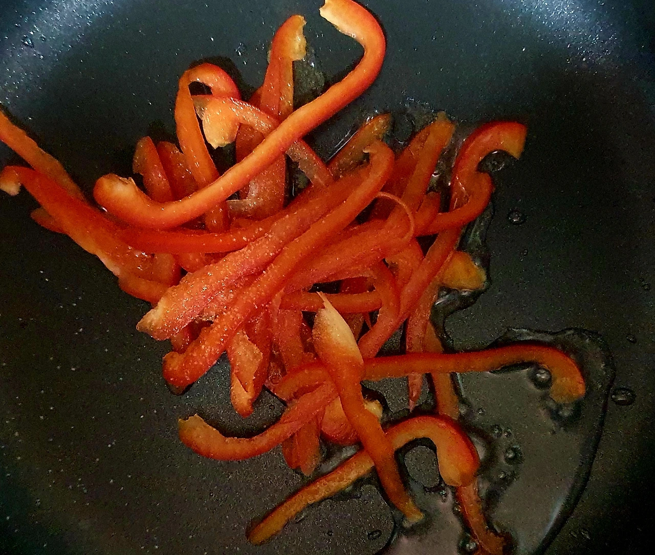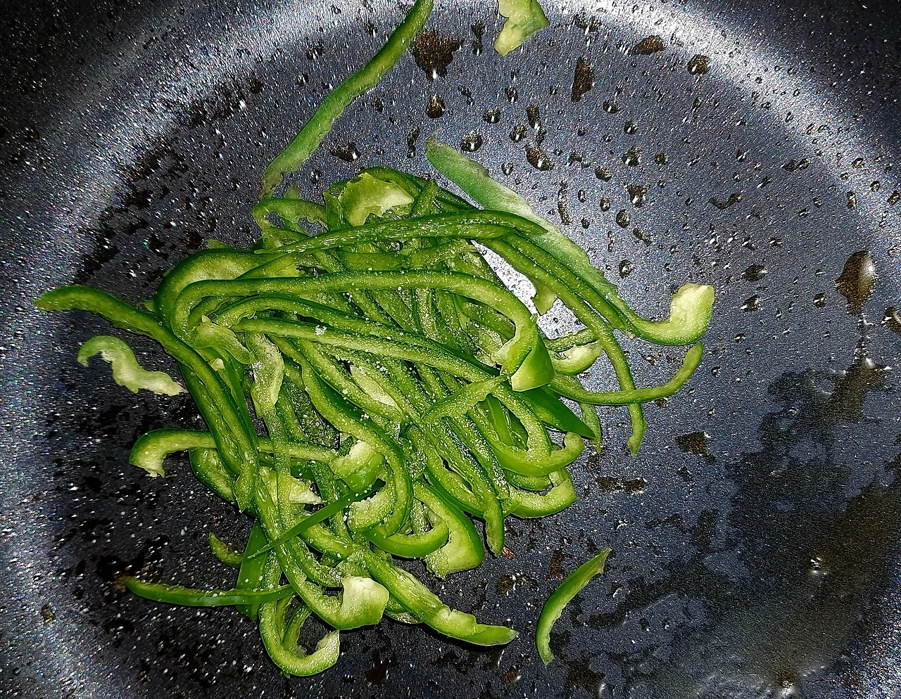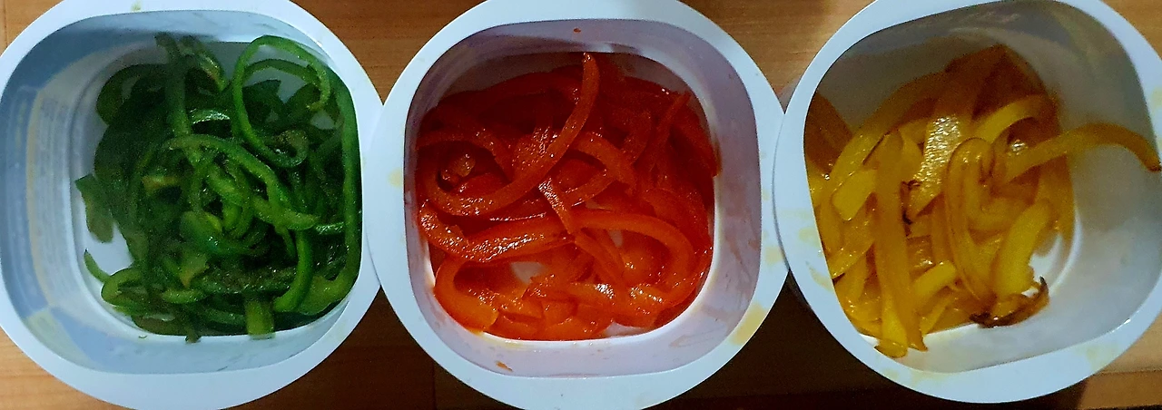 ▪︎파프리카와 피망은 얇게 채를 썰어서 소금 조금넣고 볶아서 둔다.
