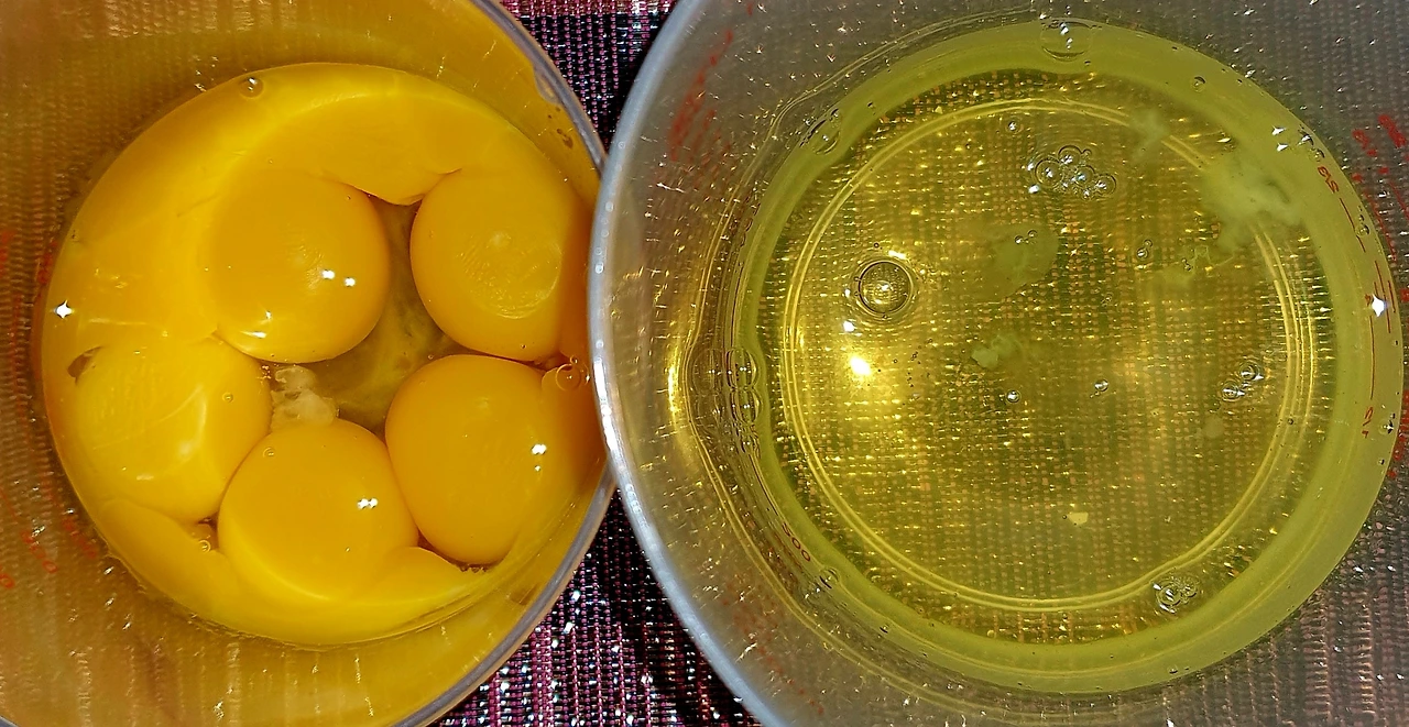▪︎달걀7개를 흰자와 노른자를 구분해서 담는다. 노른자만으로 양이 적어서 그중 1개는 노른자쪽에 흰자위를 넣어 섞어준다.