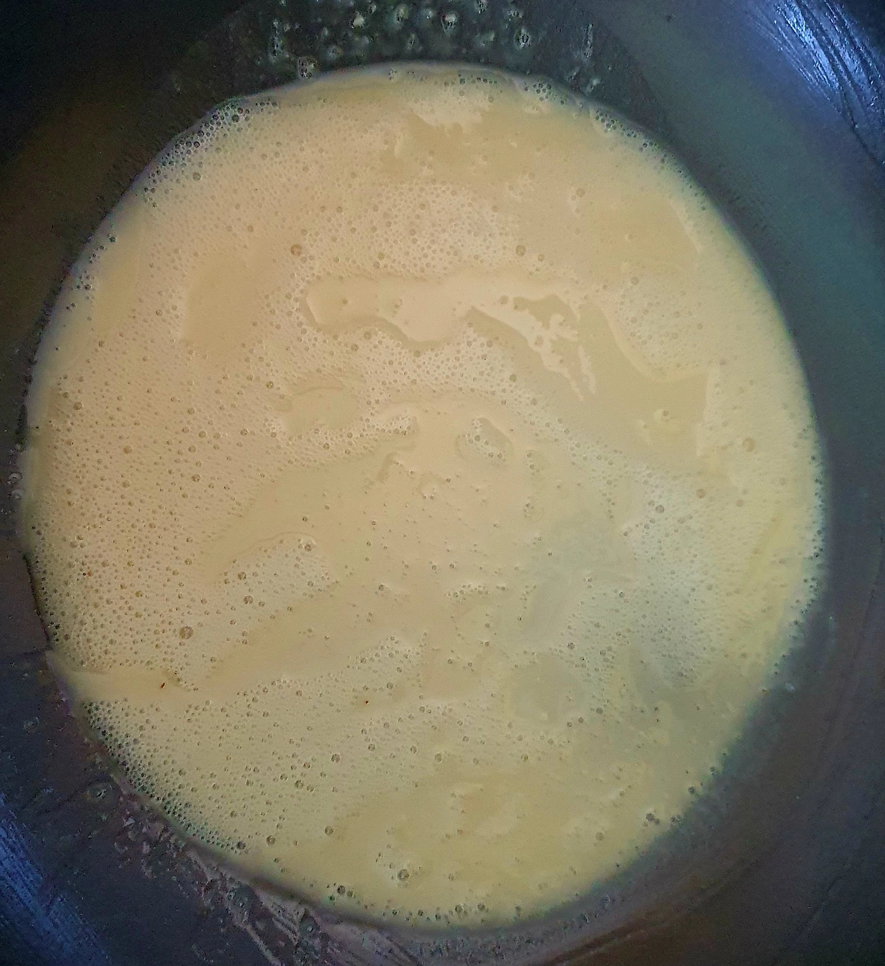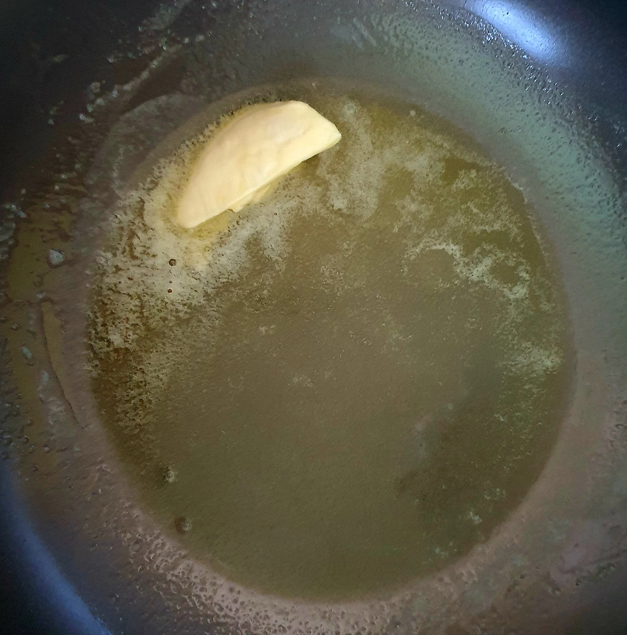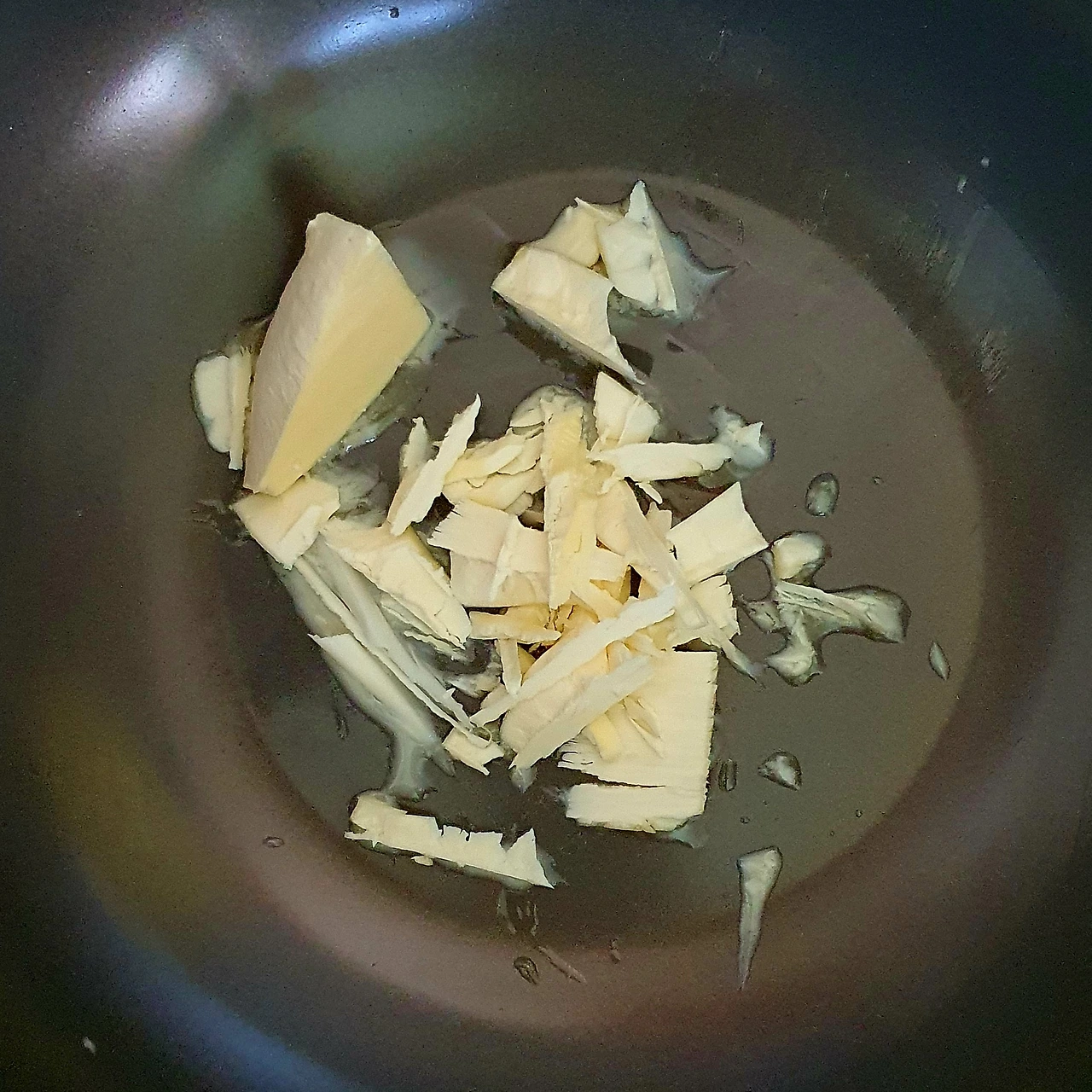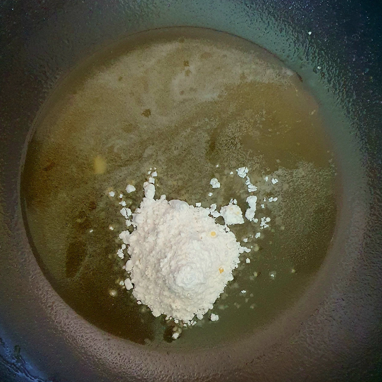 • 달군 팬에 버터를 녹여주고 녹은 버터에 동량의 밀가루를 넣어 루를 만들어준다.